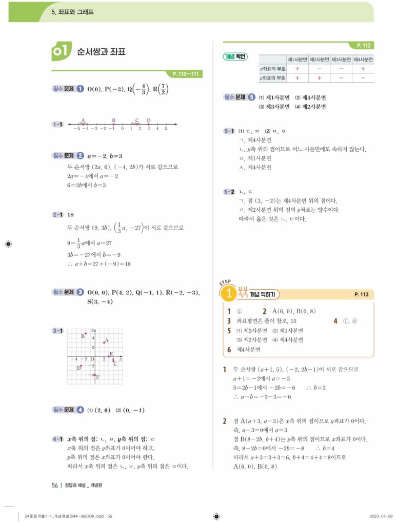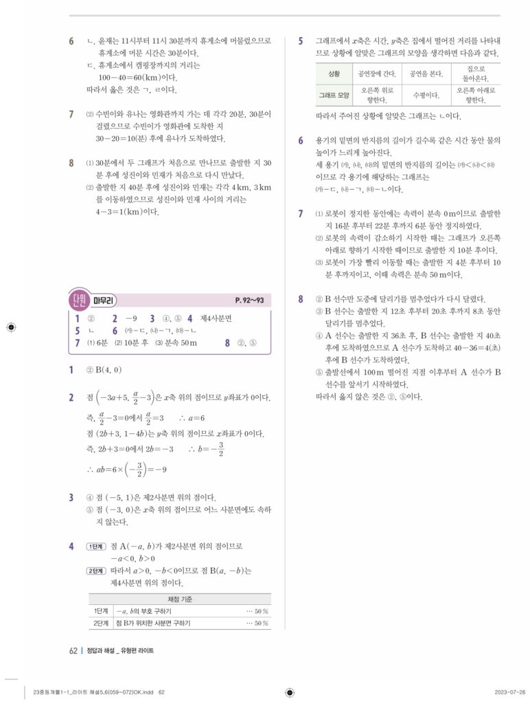개념플러스유형라이트중1-1답지 05 좌표와 그래프(p110-p124)