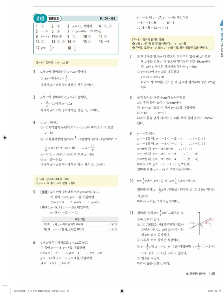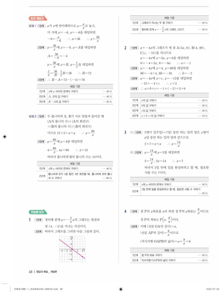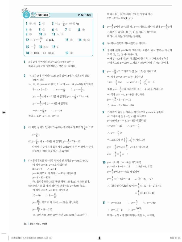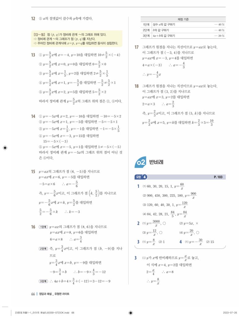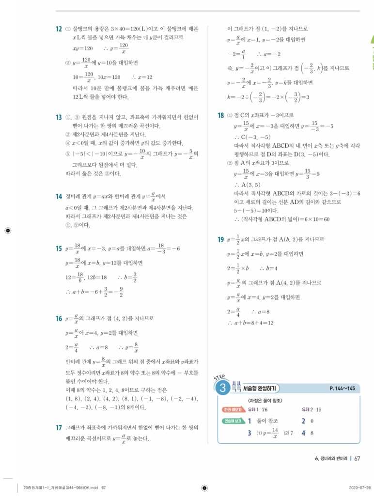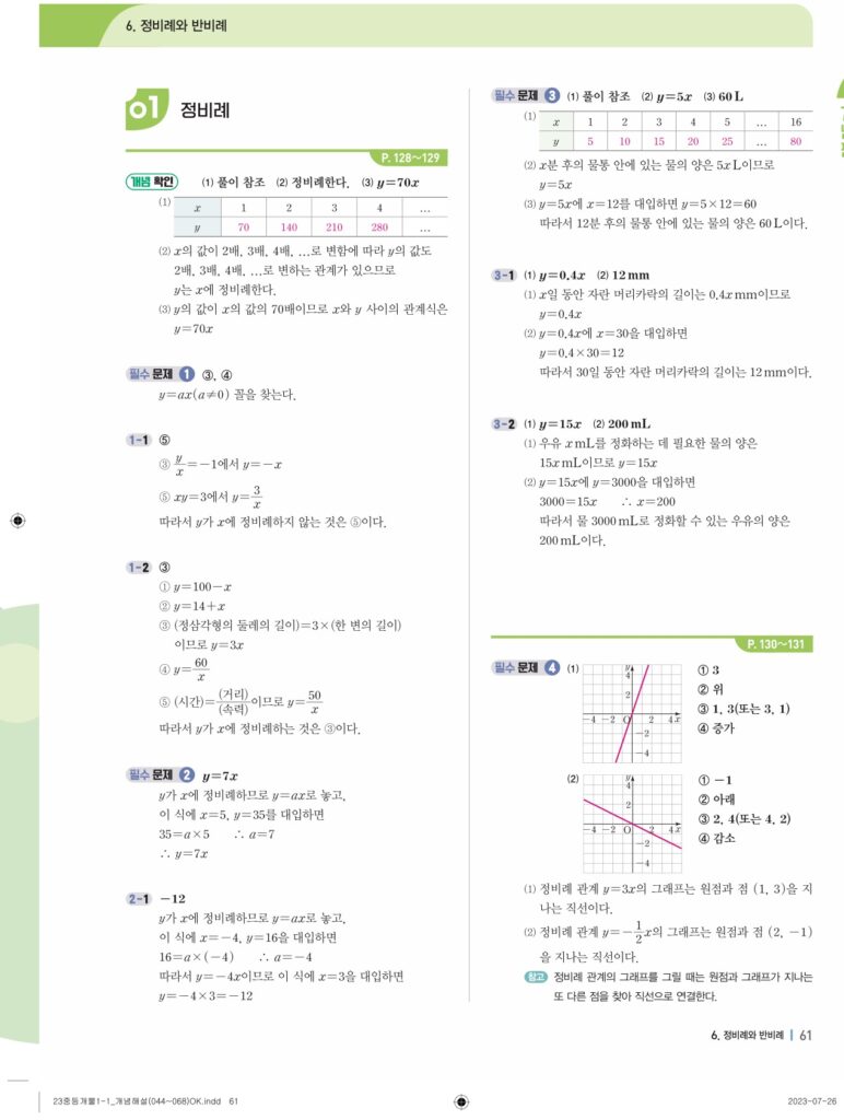 개념플러스유형라이트중1-1답지 06 정비례와 반비례(p128-p146)
