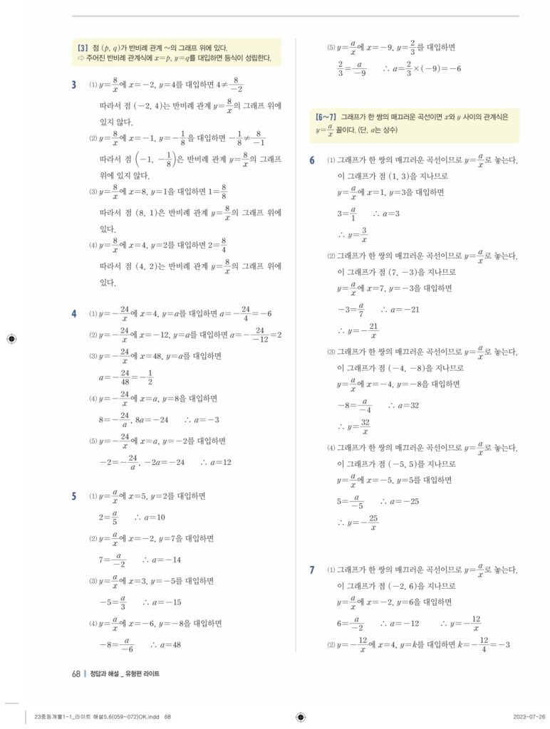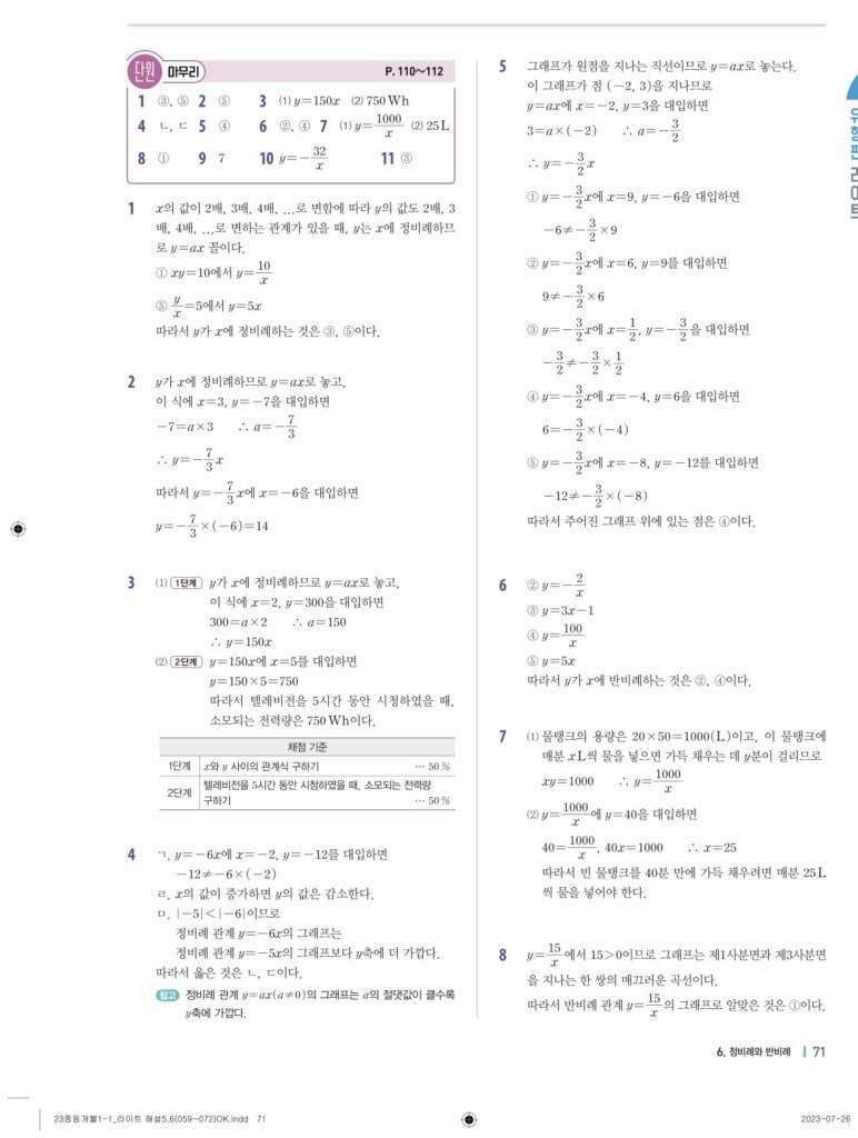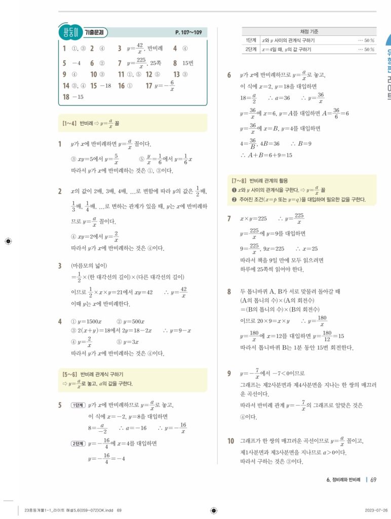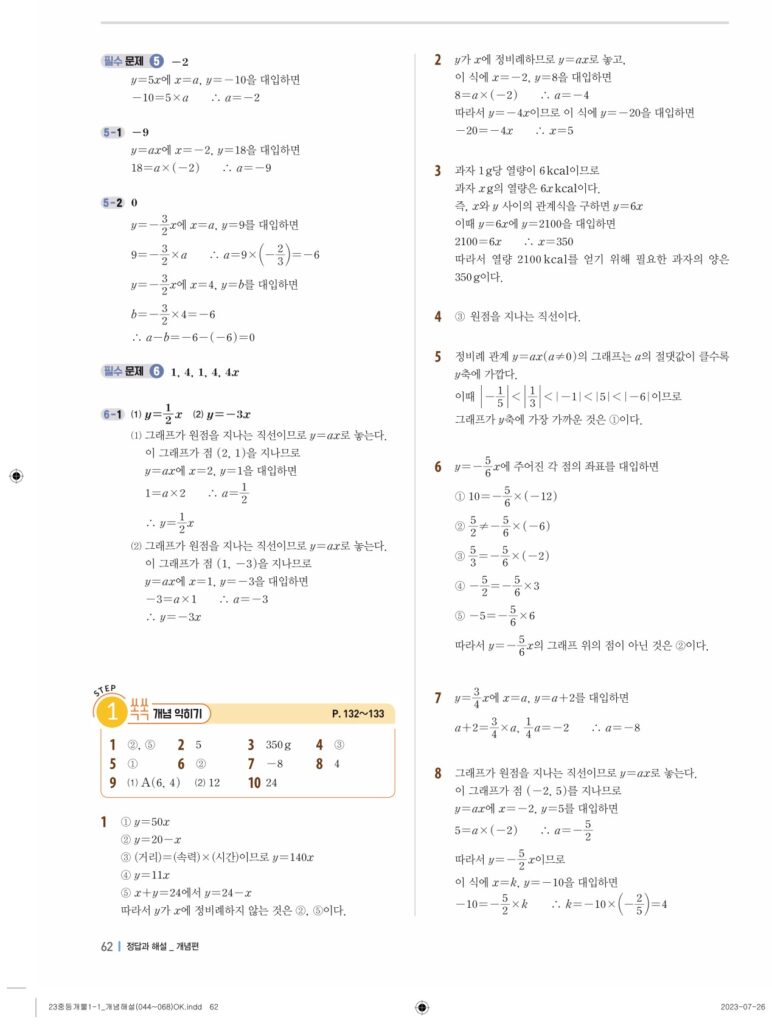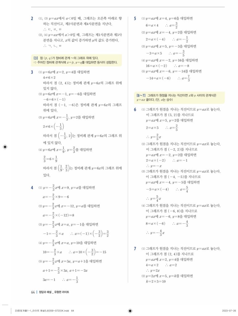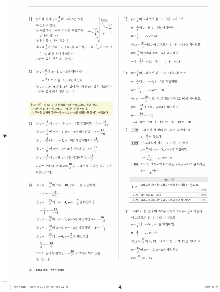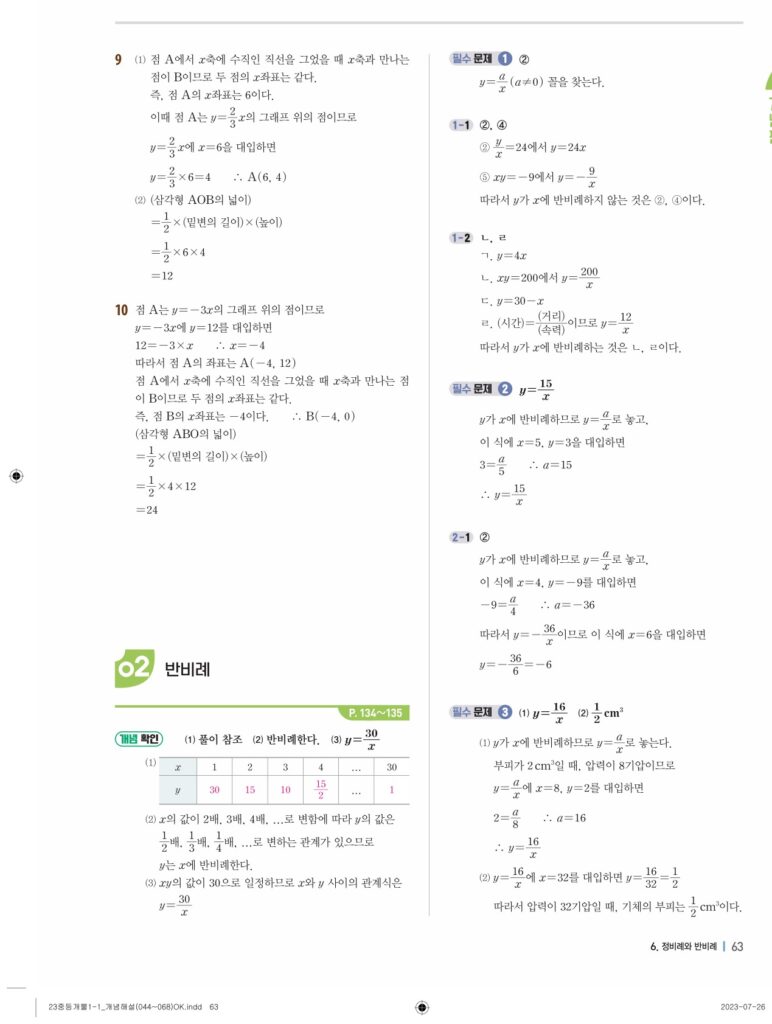 개념플러스유형라이트중1-1답지 06 정비례와 반비례(p128-p146)