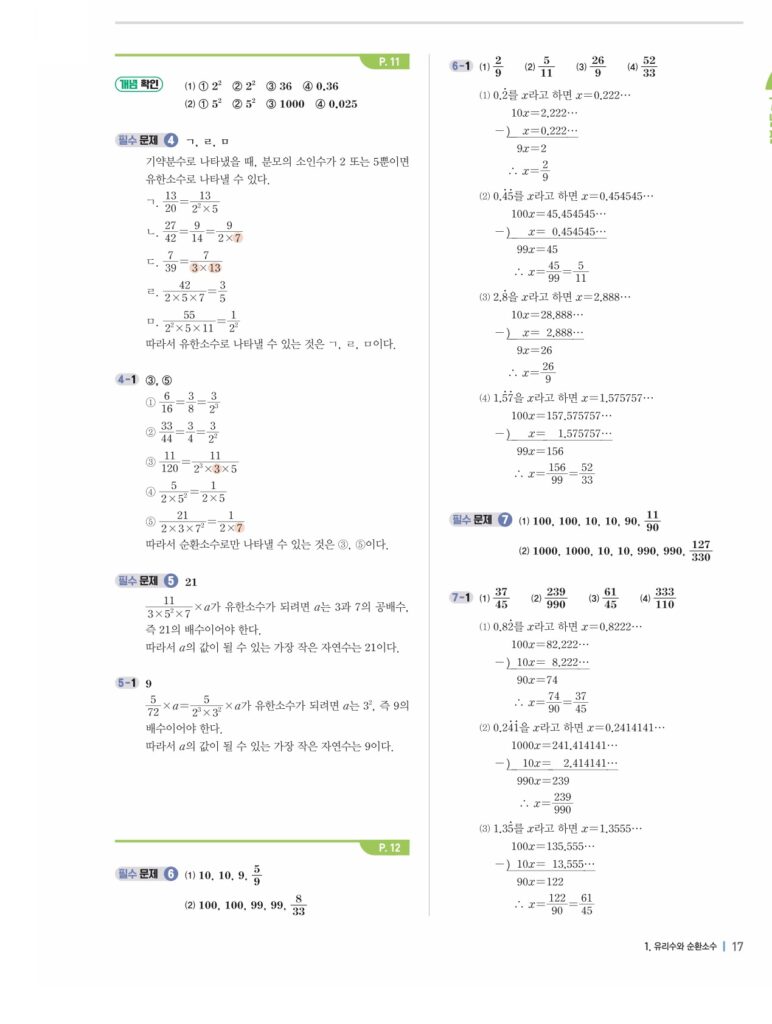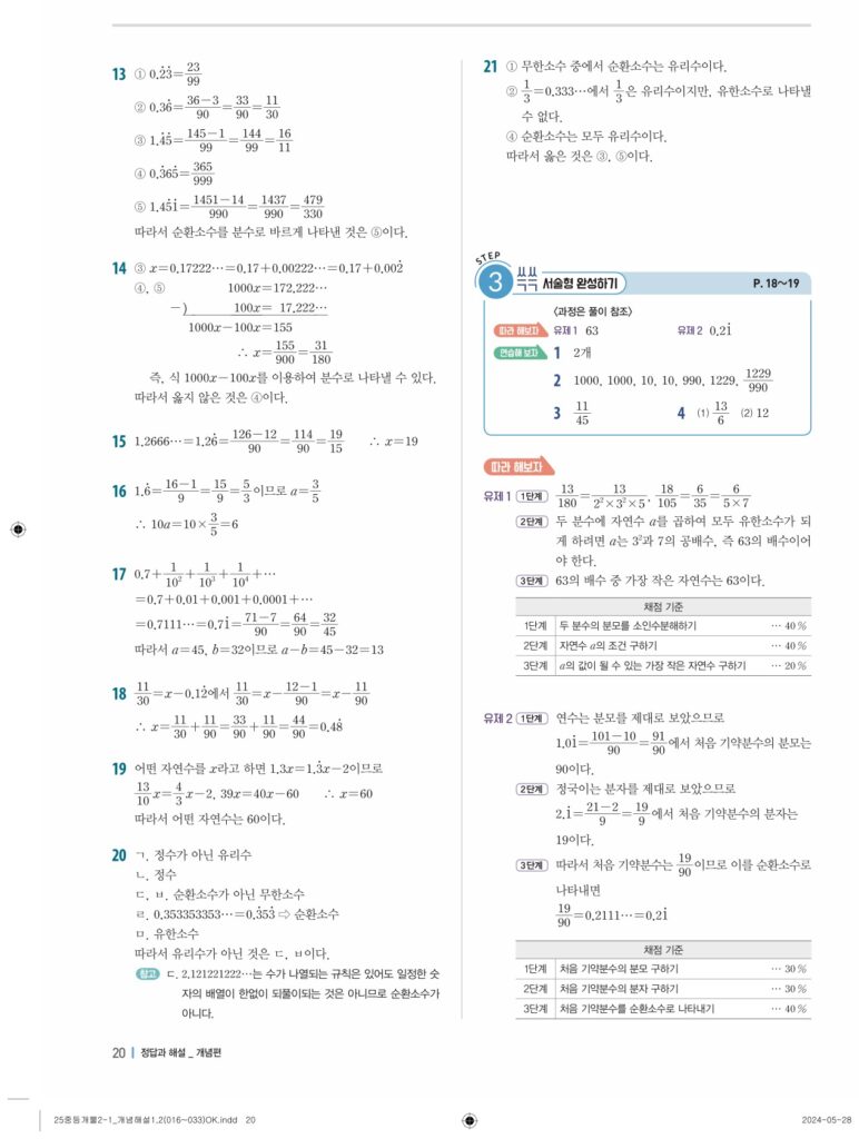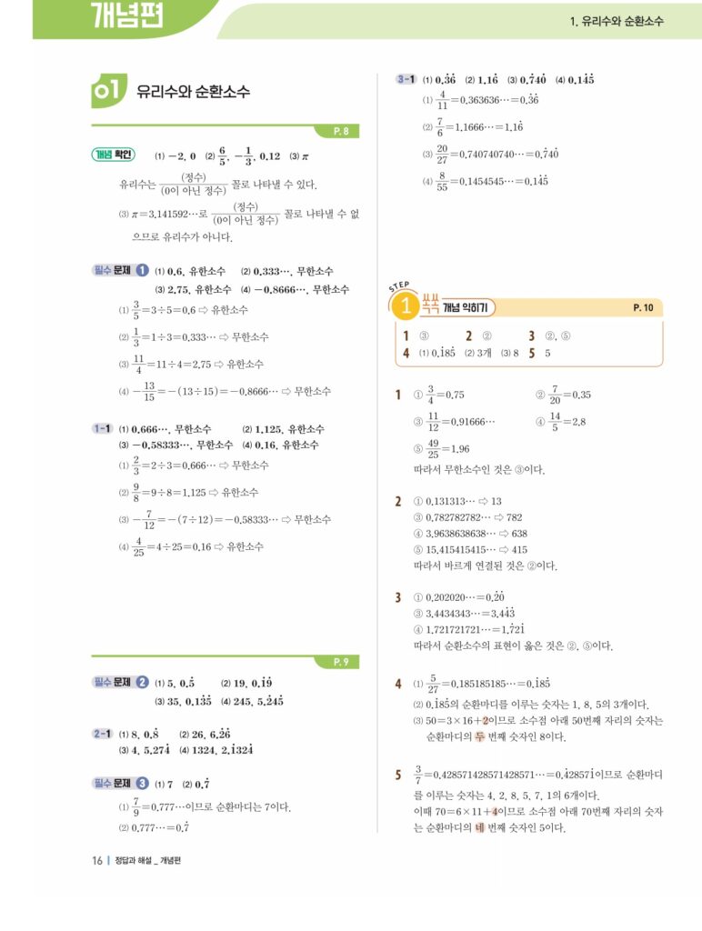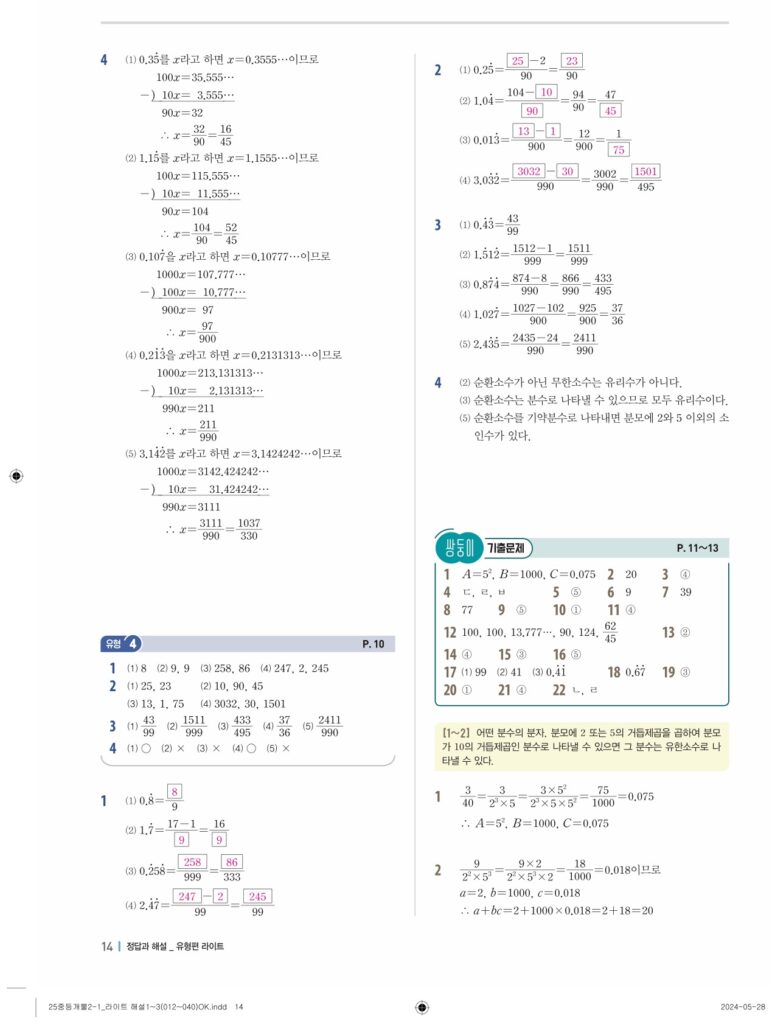 개념플러스유형라이트 중2-1답지 01 유리수와 순환소수