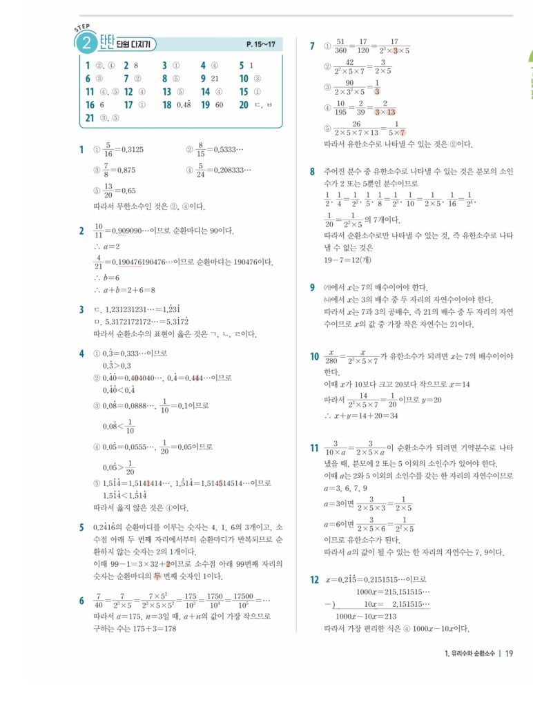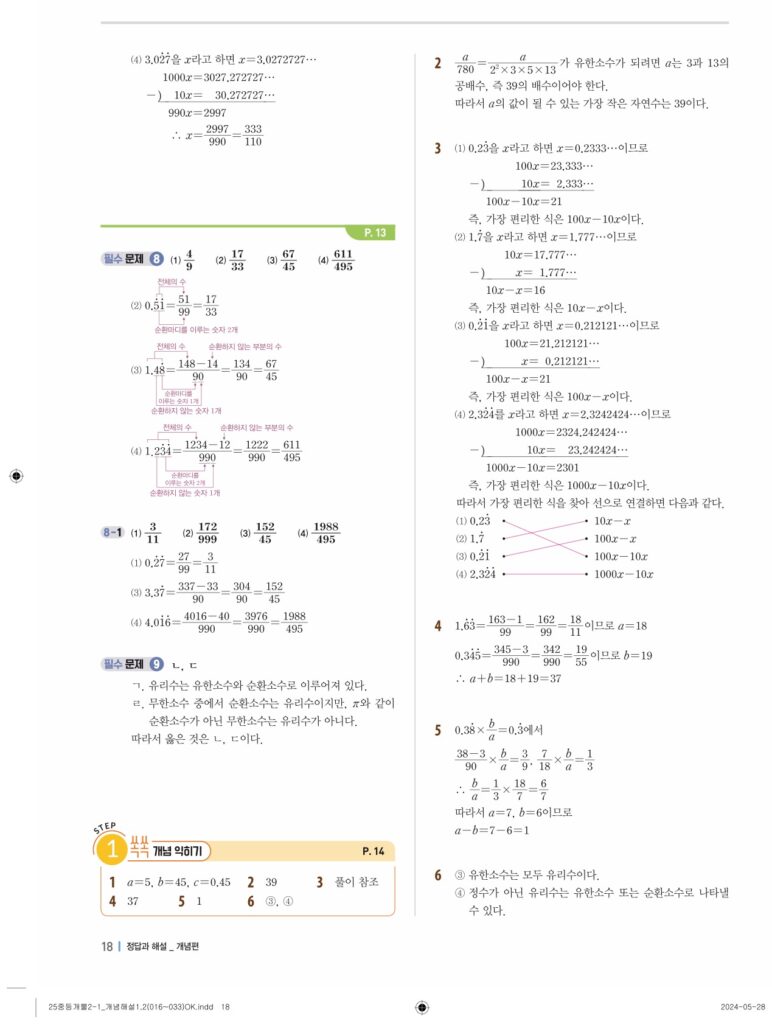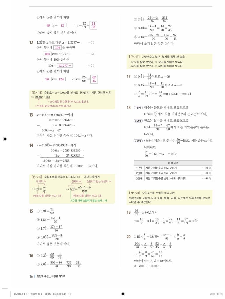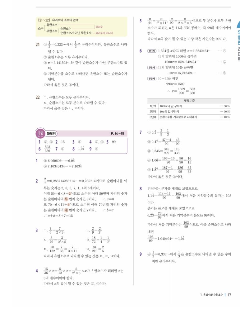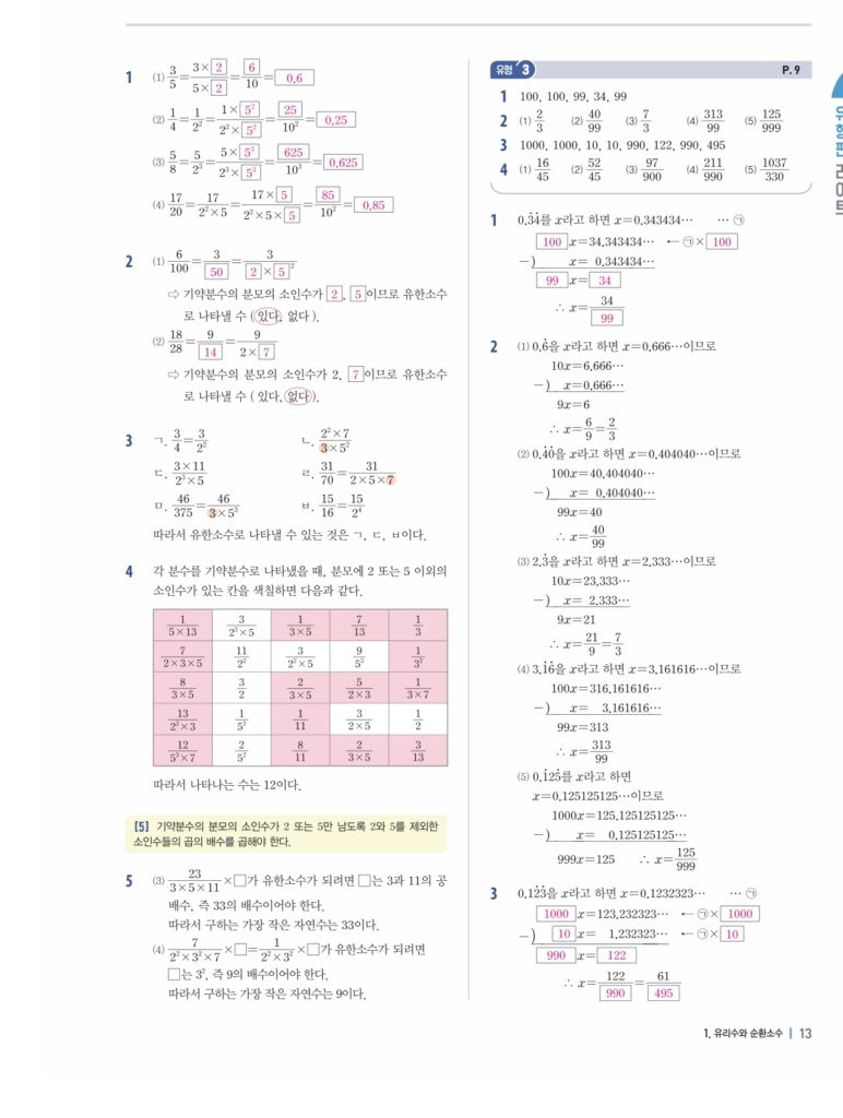개념플러스유형라이트 중2-1답지 01 유리수와 순환소수