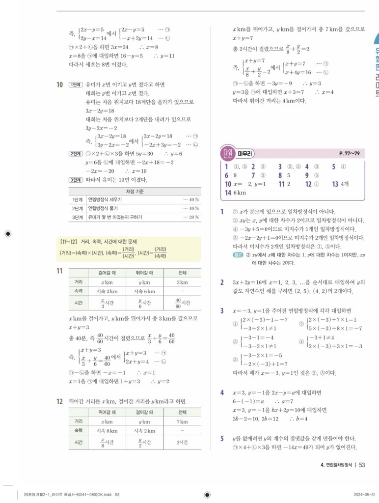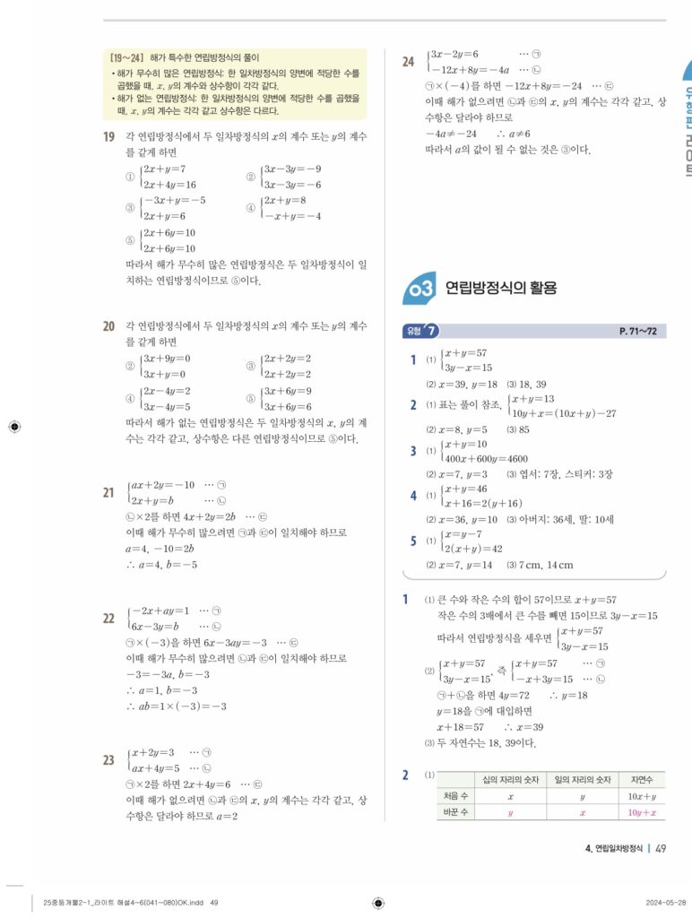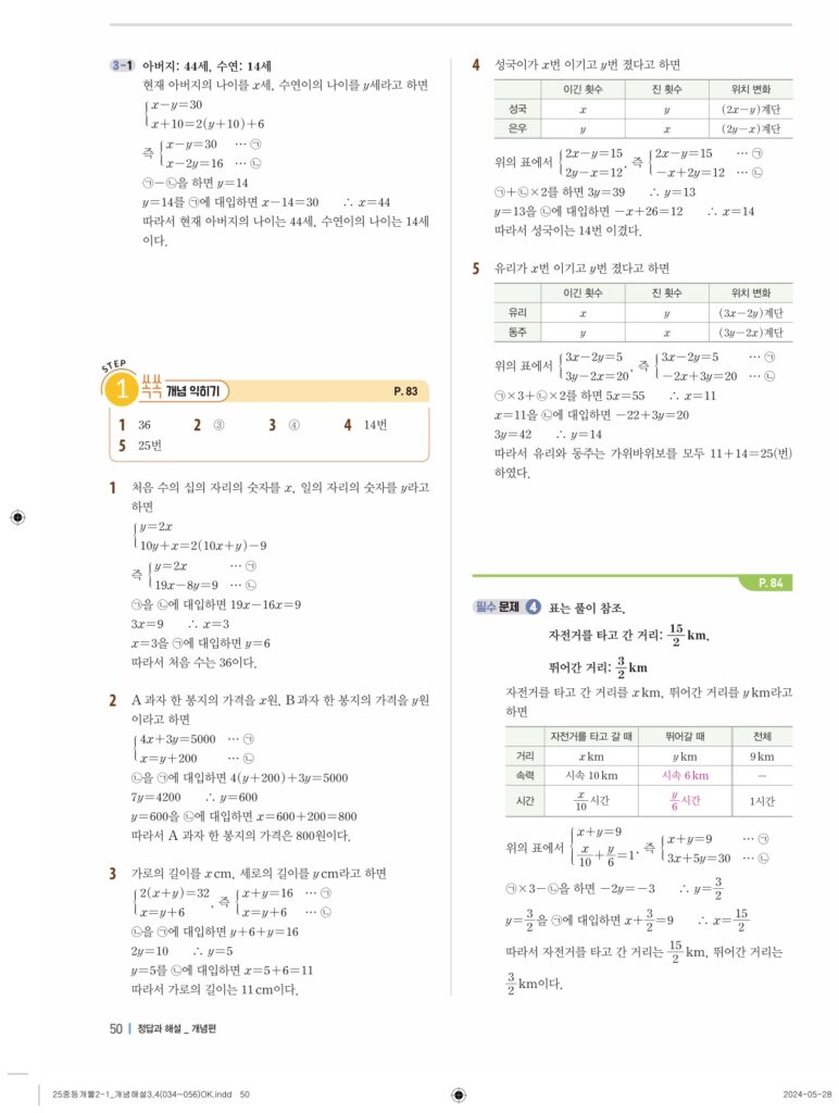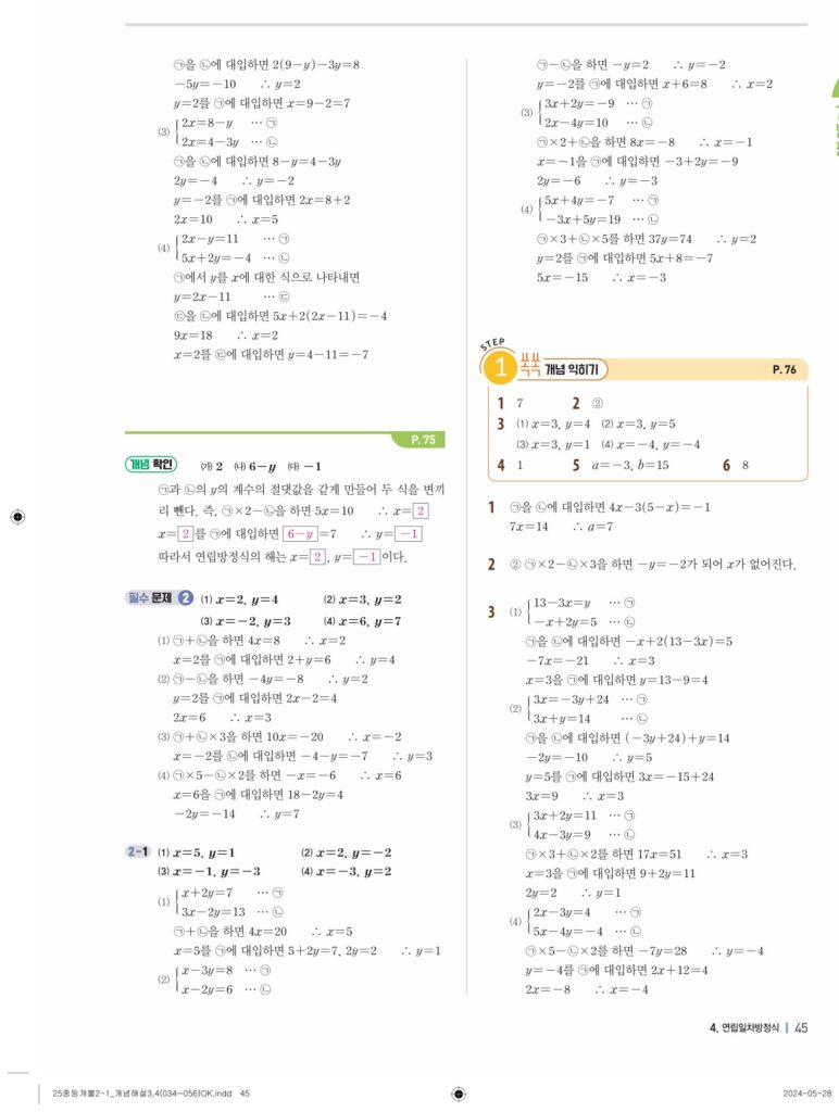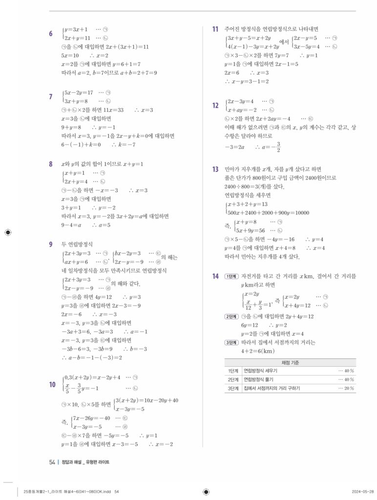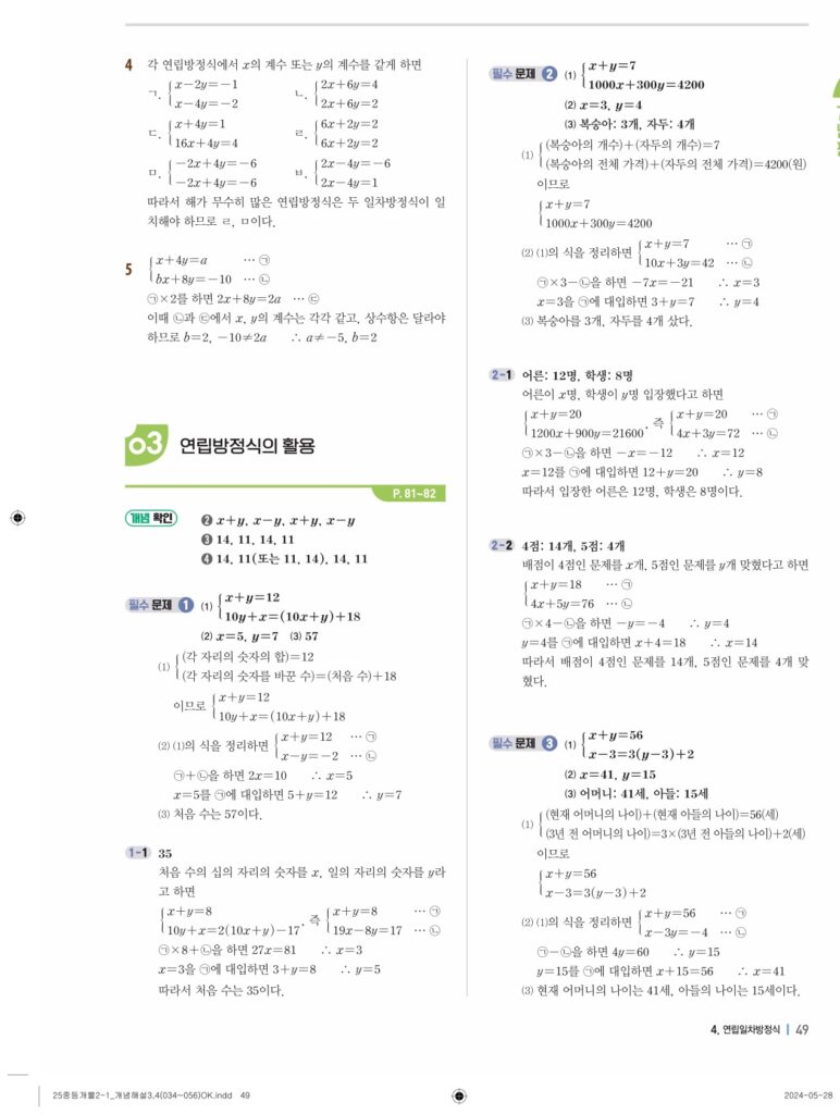 개념플러스유형라이트 중2-1답지 04 연립일차방정식