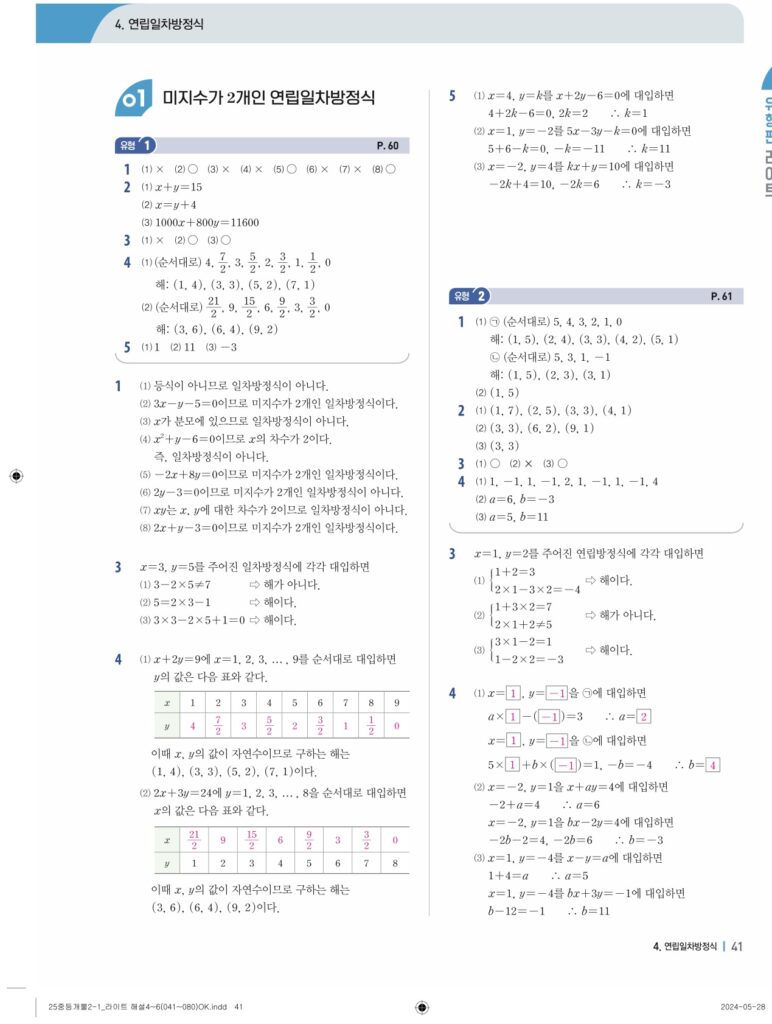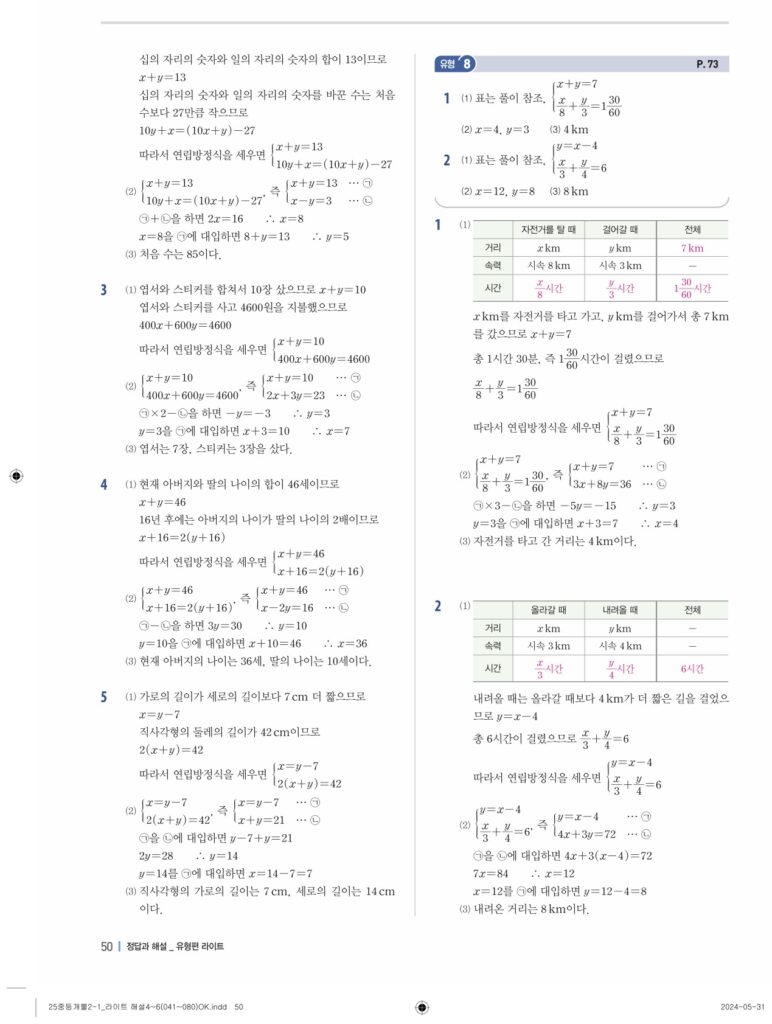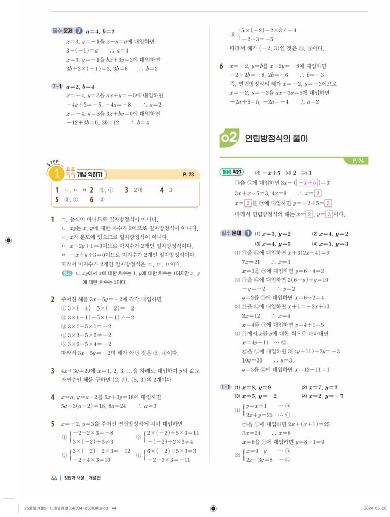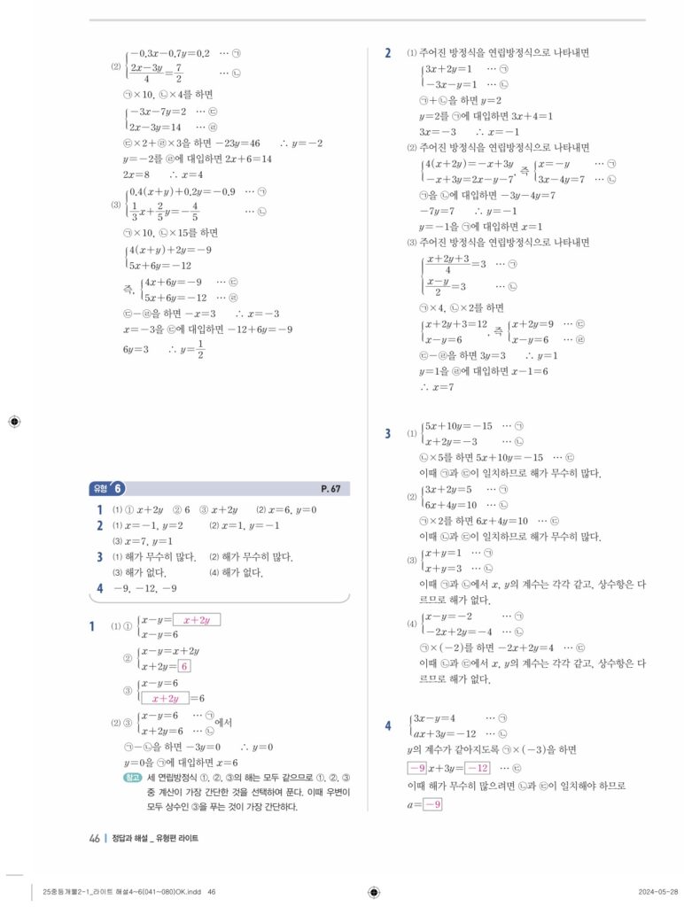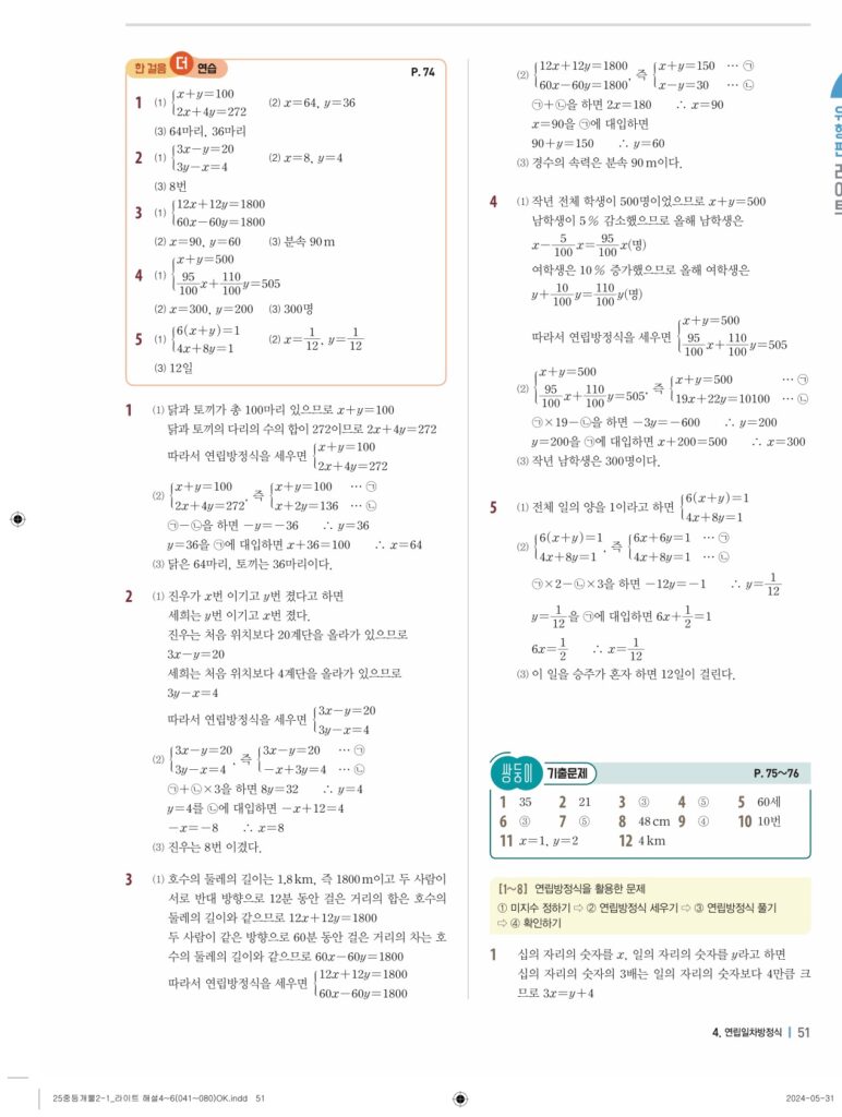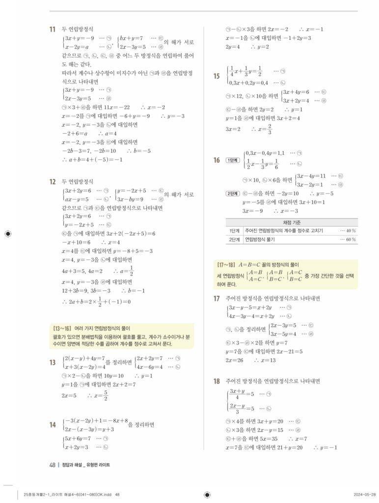 개념플러스유형라이트 중2-1답지 04 연립일차방정식