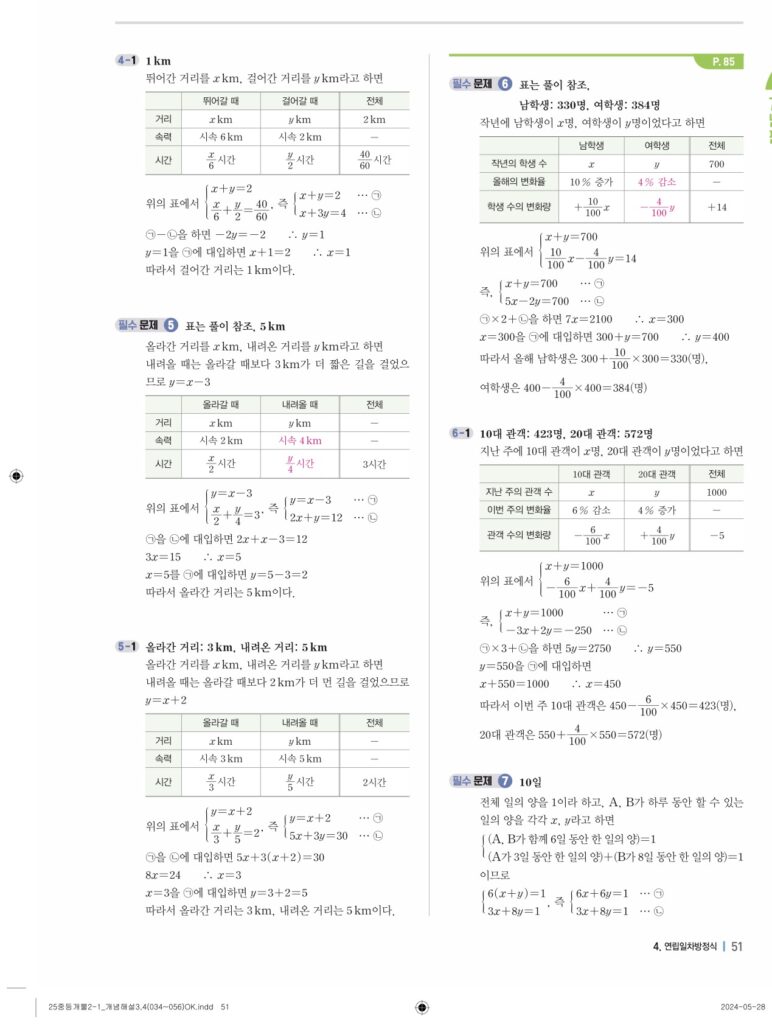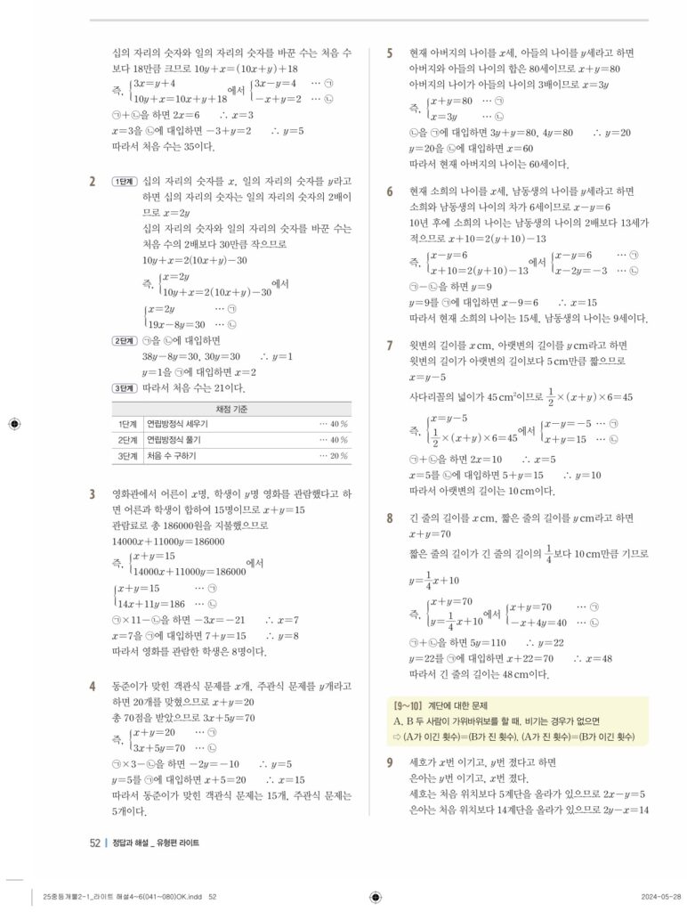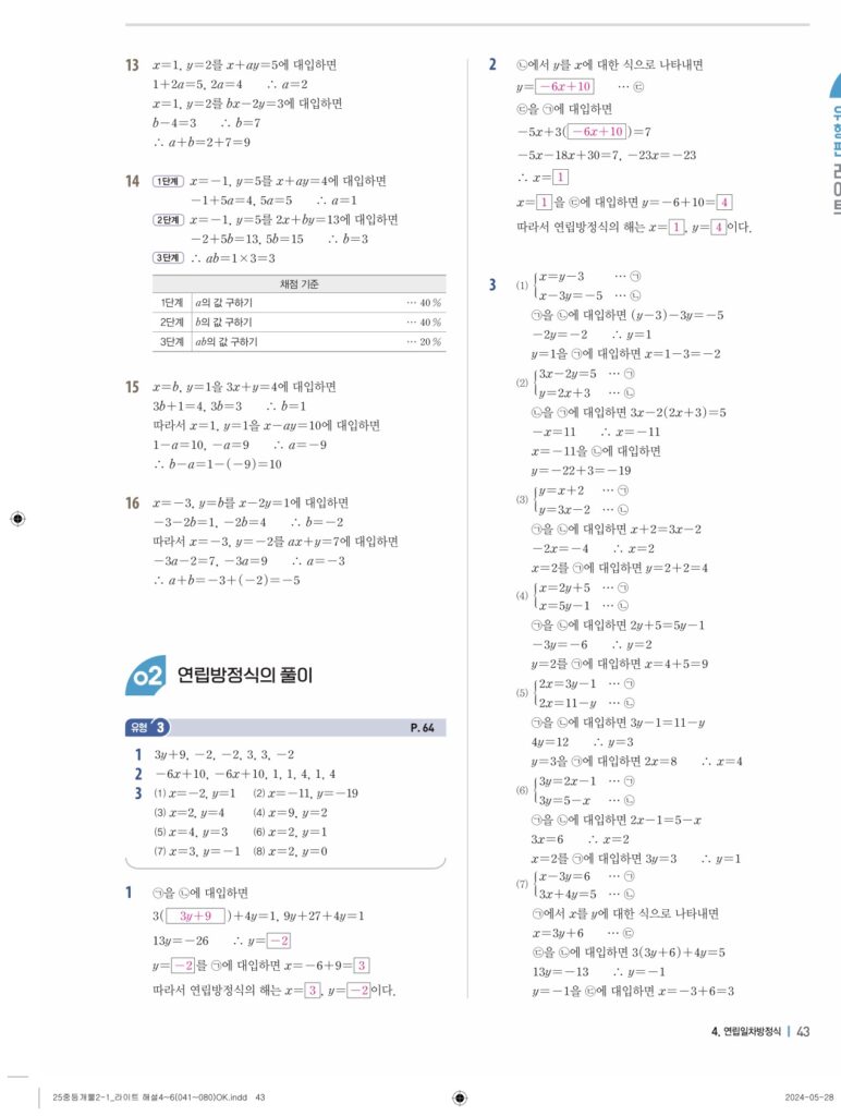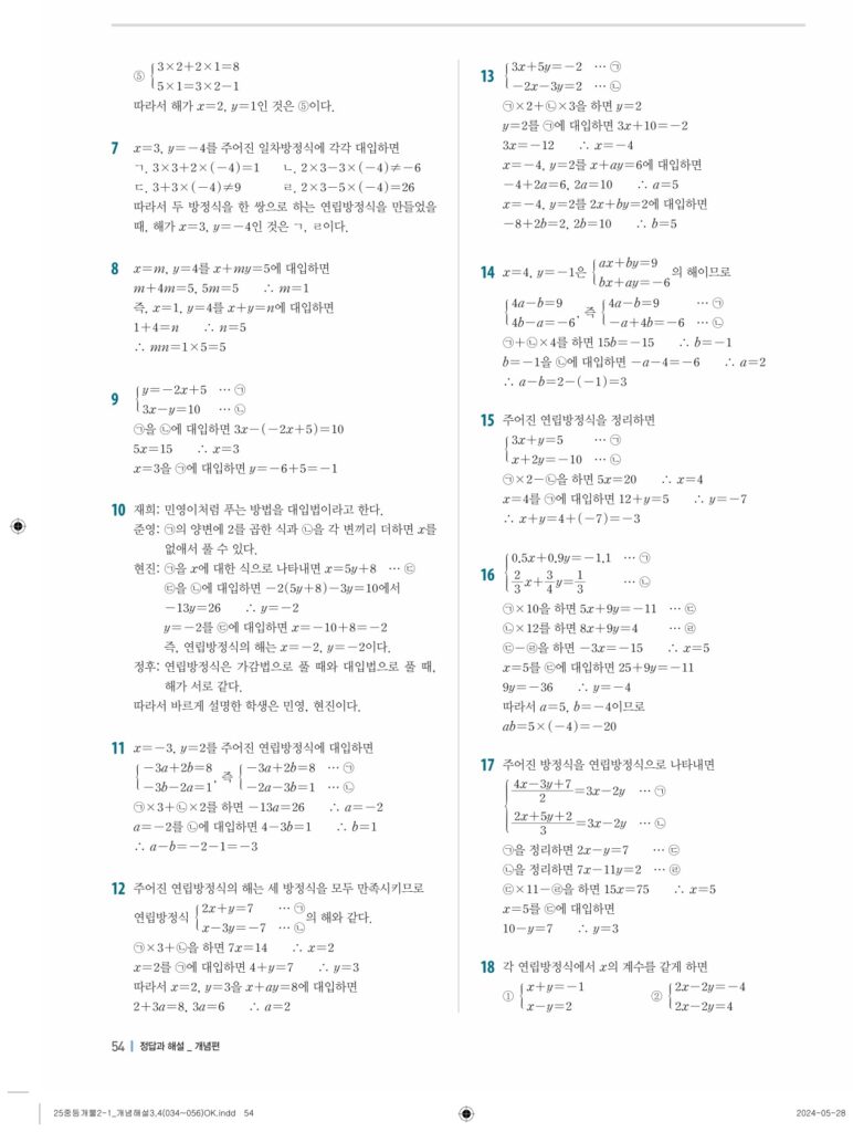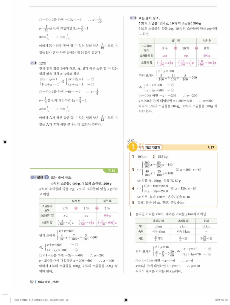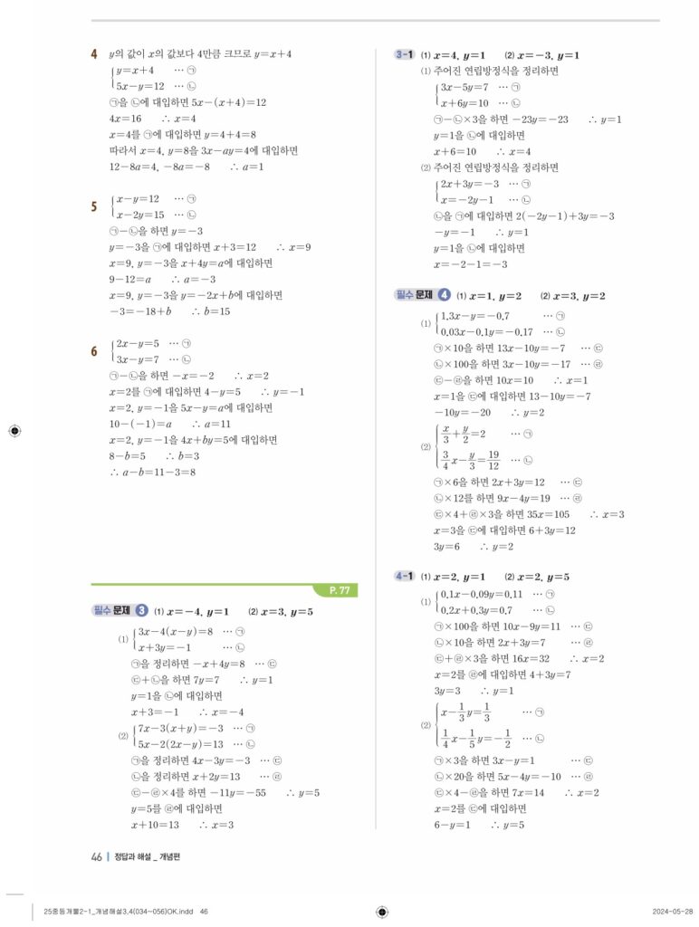 개념플러스유형라이트 중2-1답지 04 연립일차방정식