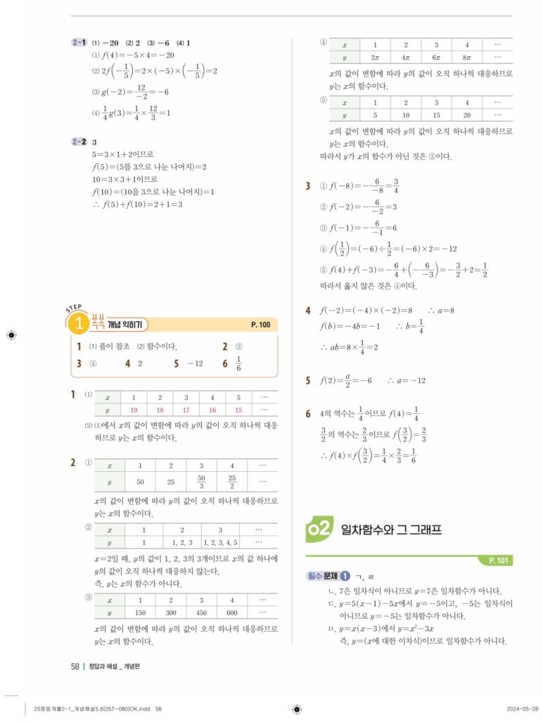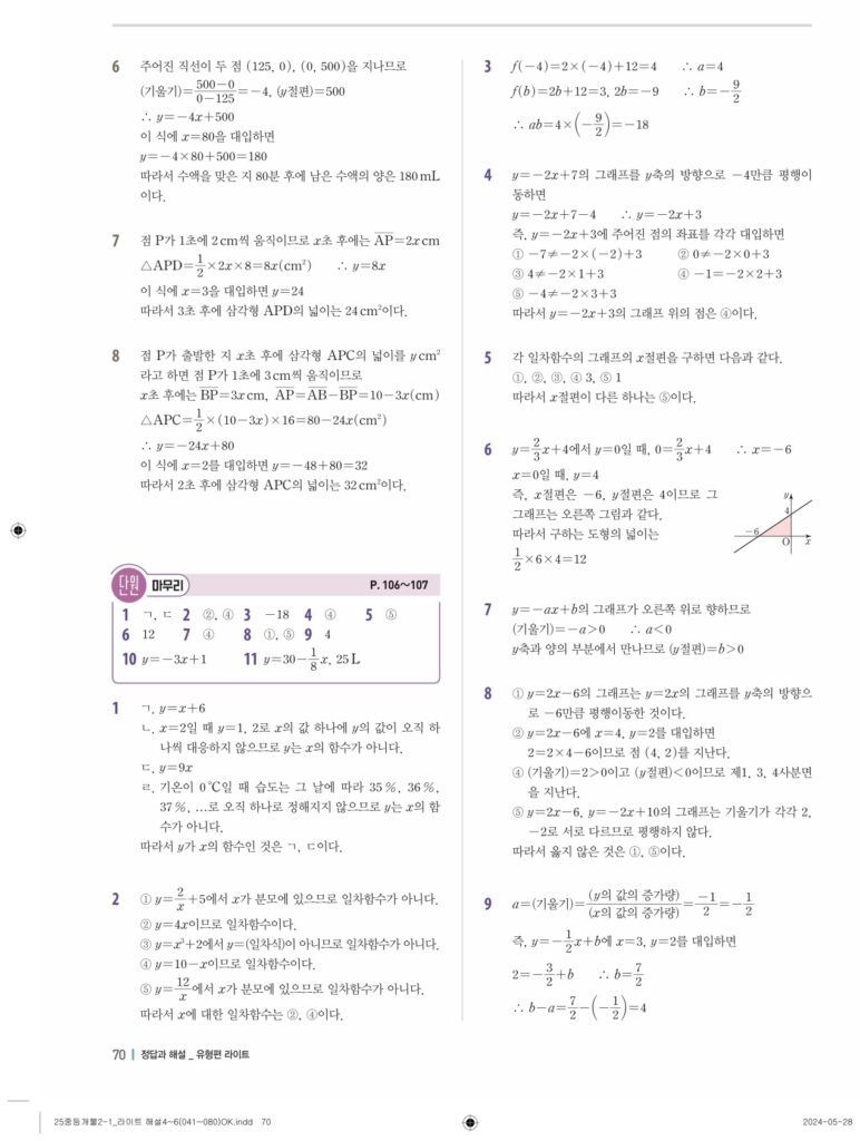 개념플러스유형라이트 중2-1답지 05 일차함수와 그 그래프