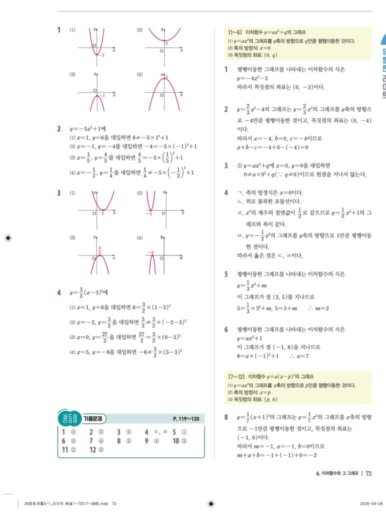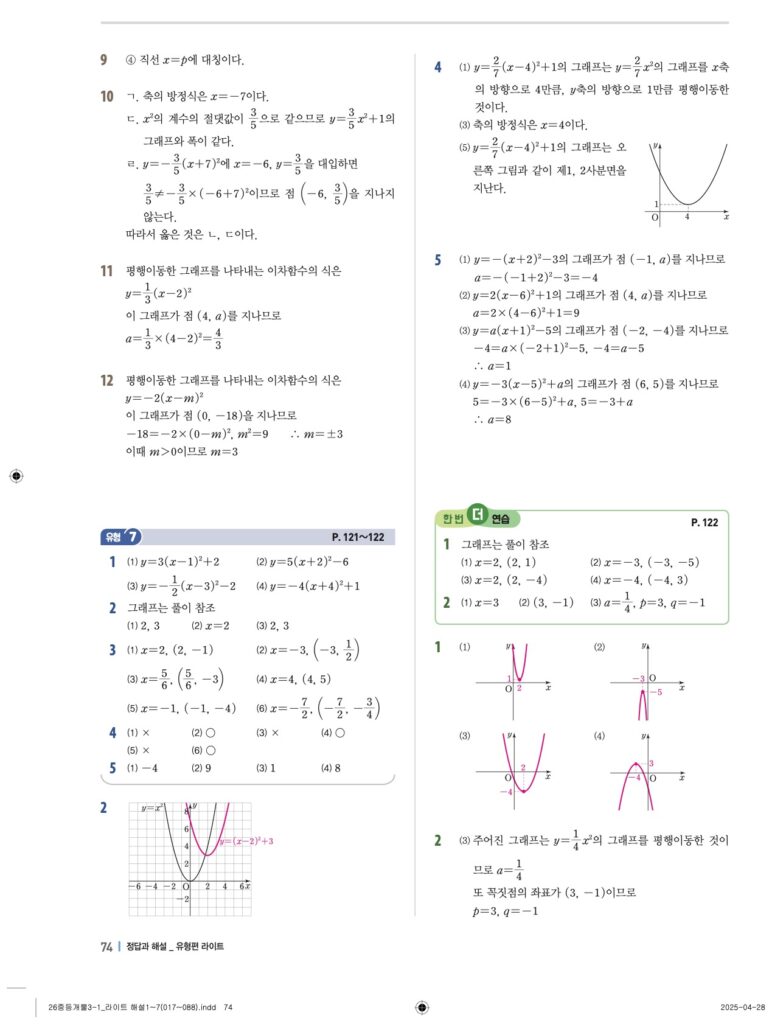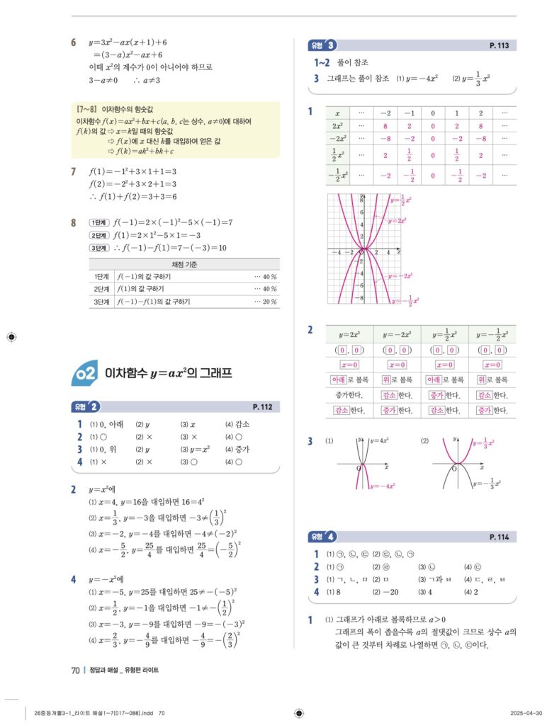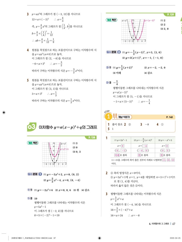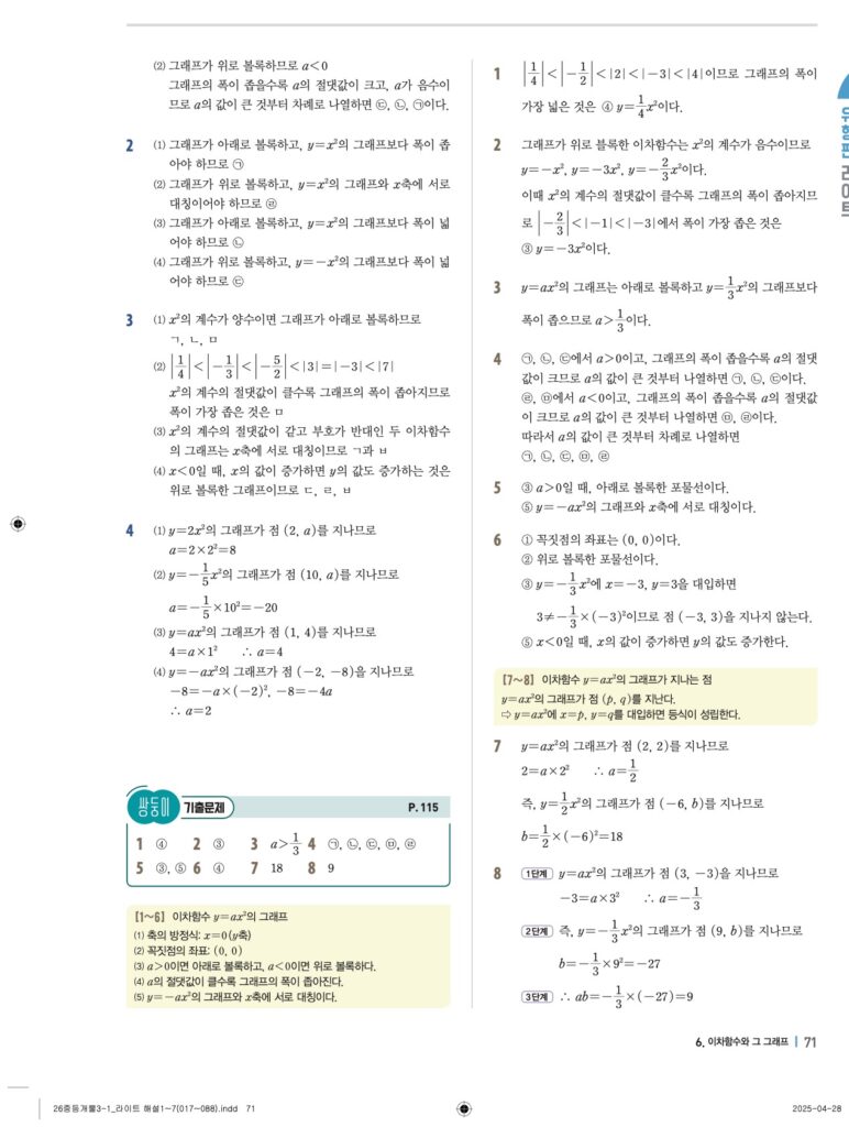 개념플러스유형라이트 중3-1답지 06 이차함수와 그 그래프