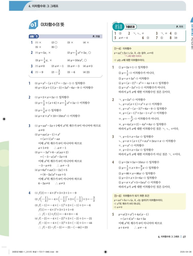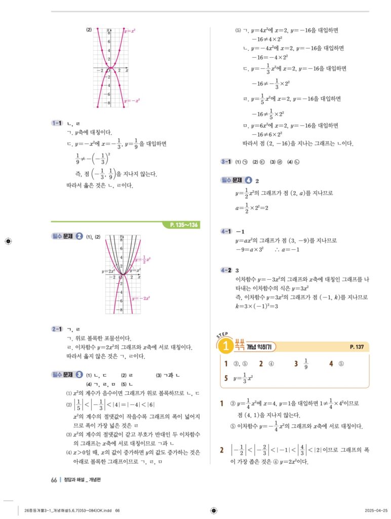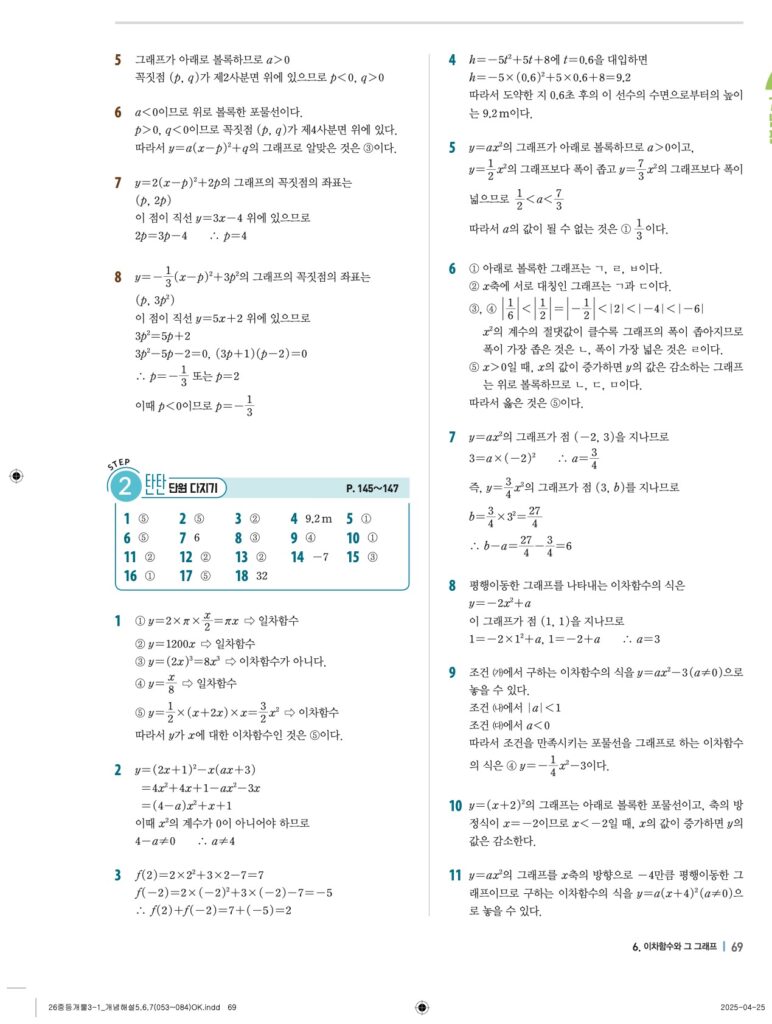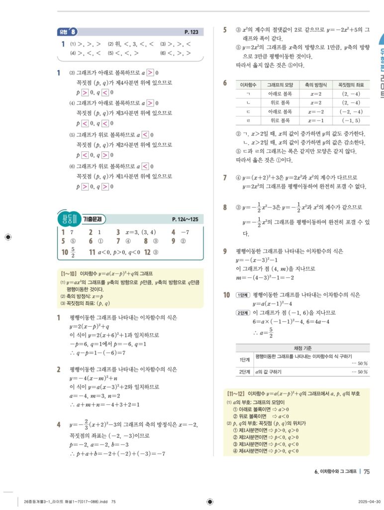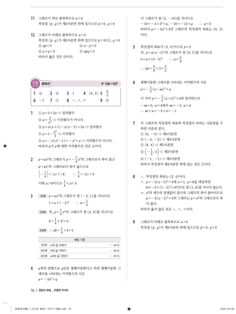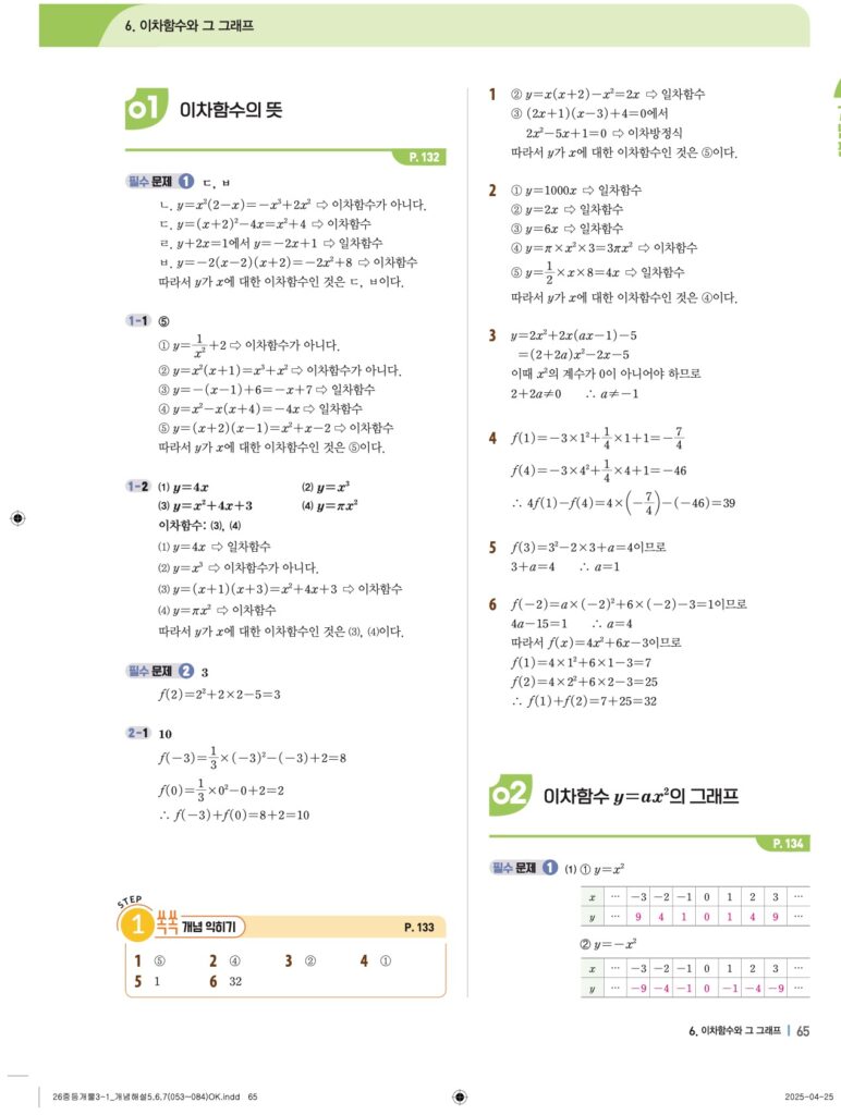 개념플러스유형라이트 중3-1답지 06 이차함수와 그 그래프