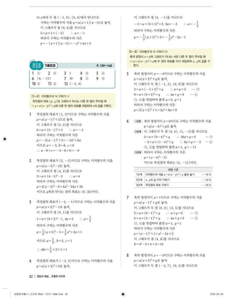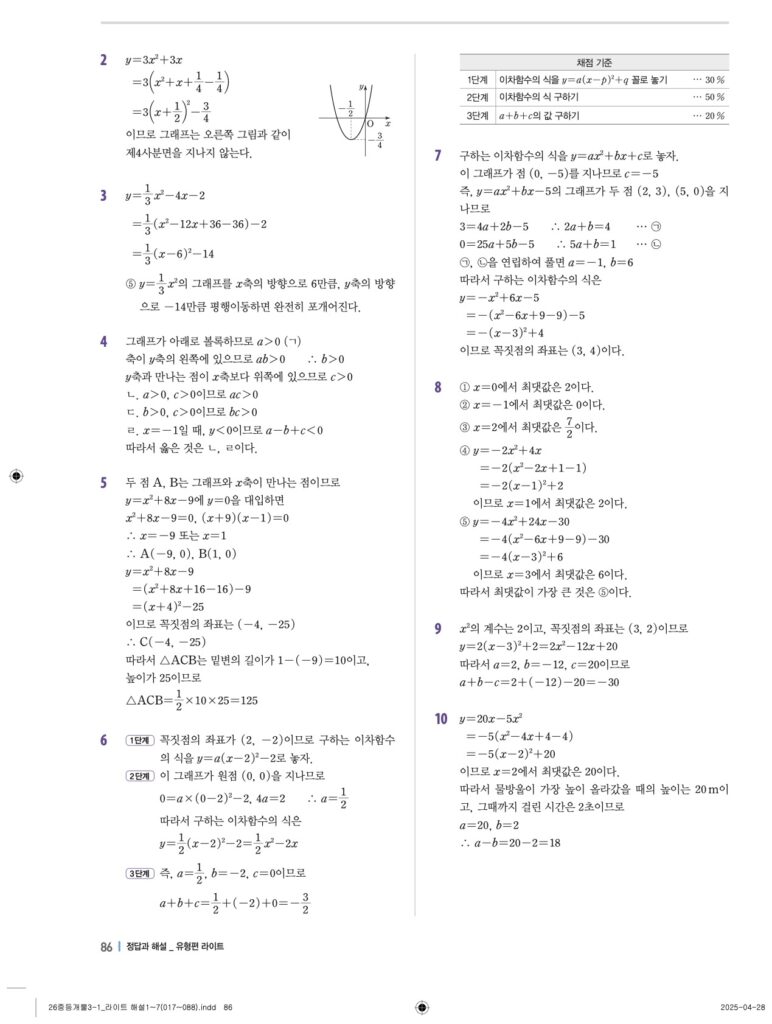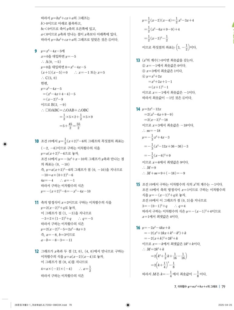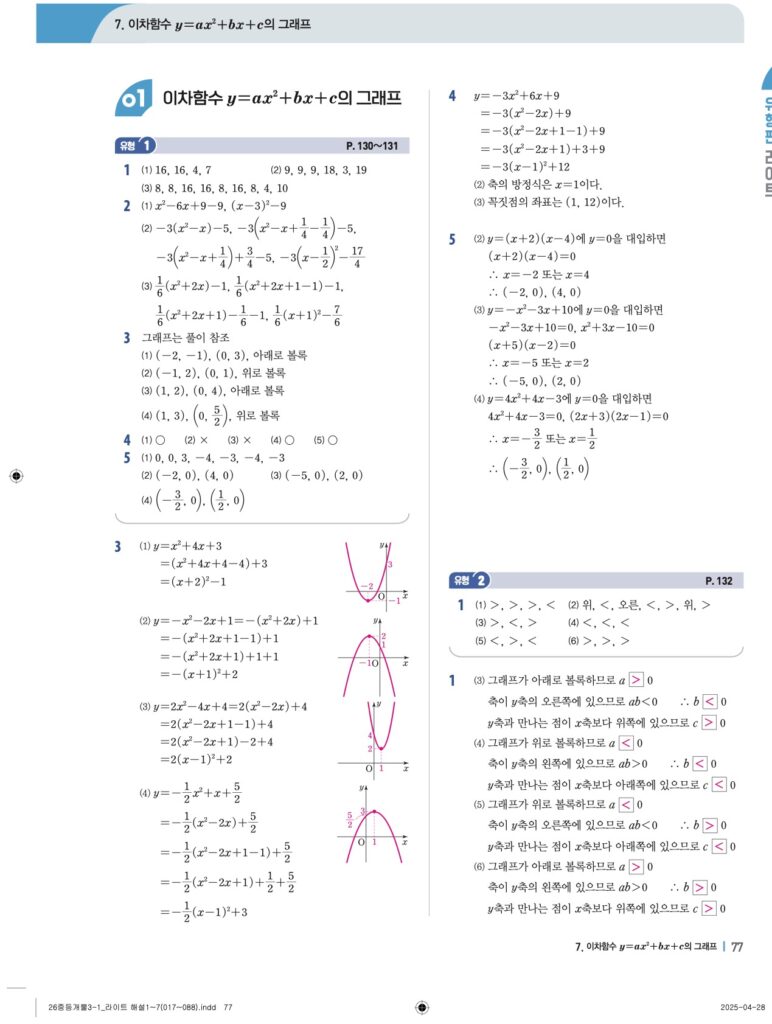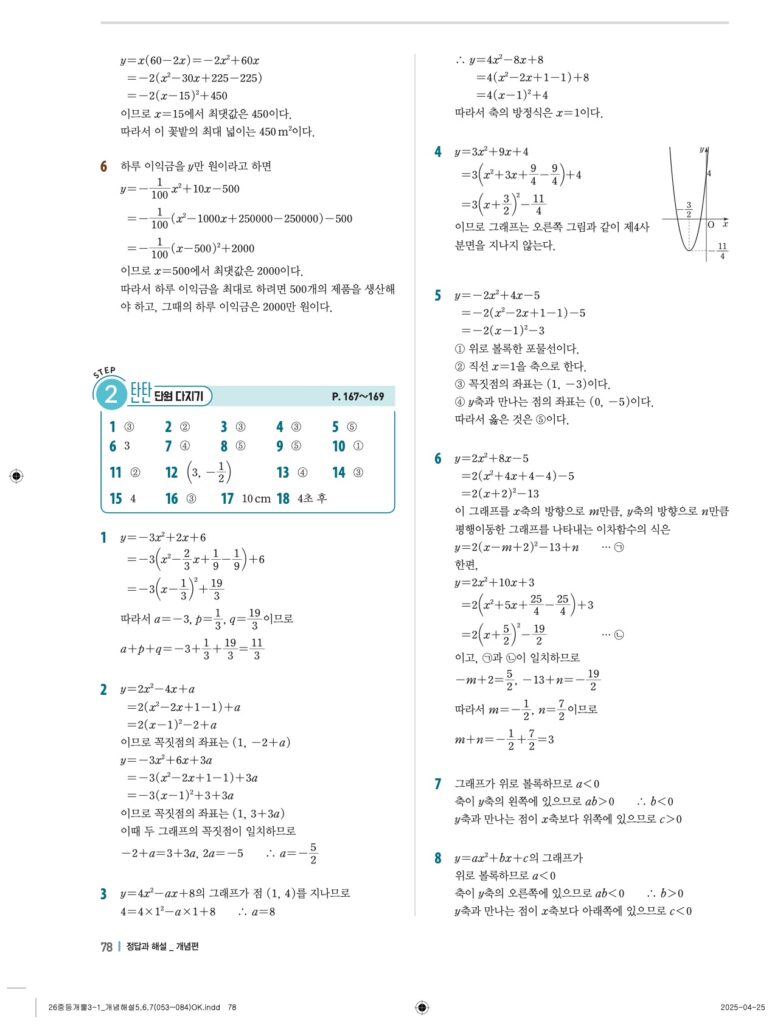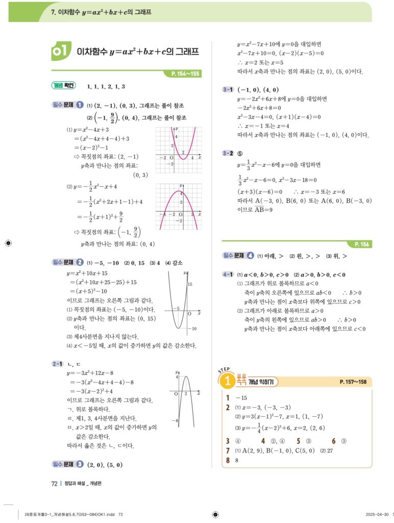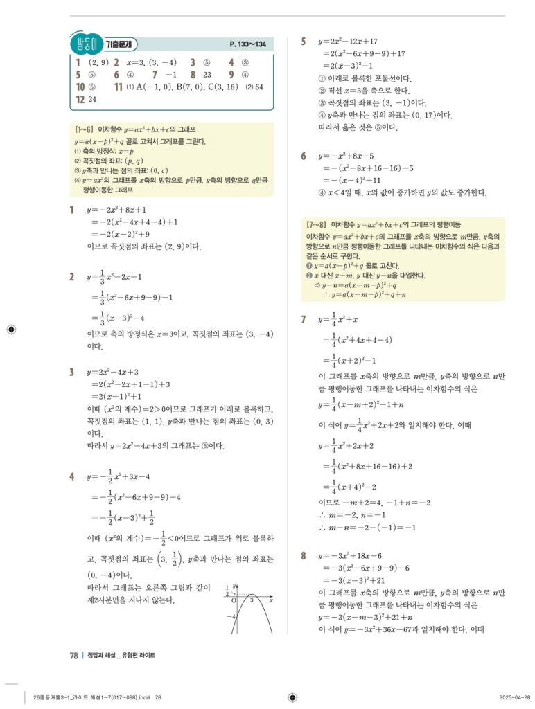 개념플러스유형라이트 중3-1답지 07 이차함수의 일반형 그래프