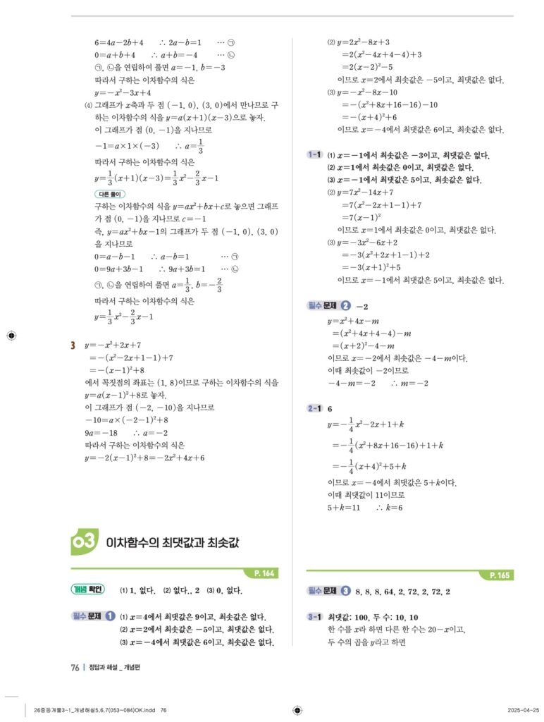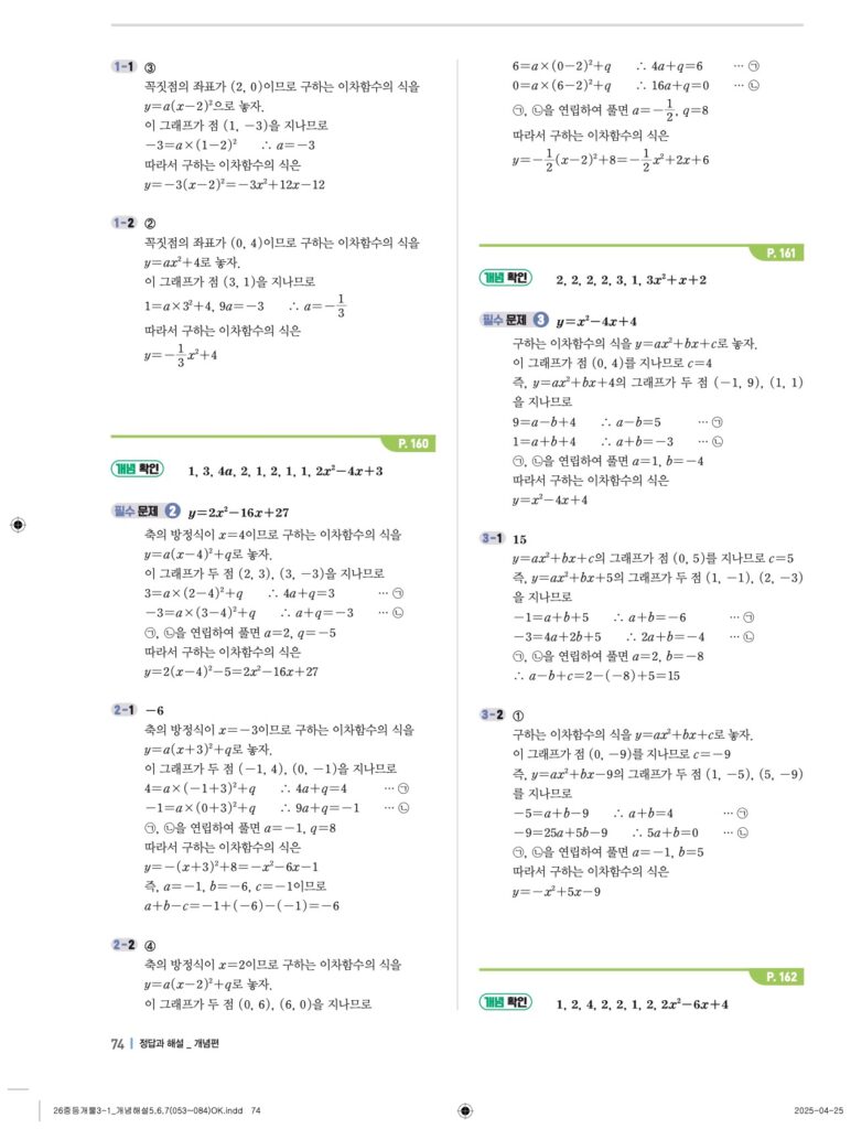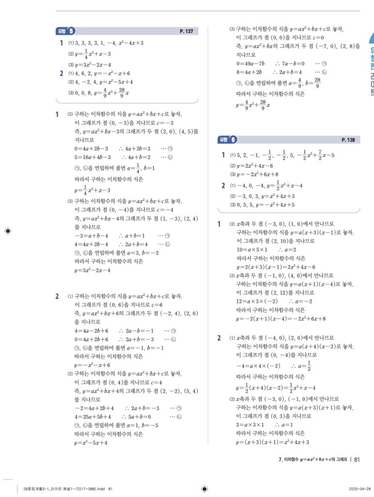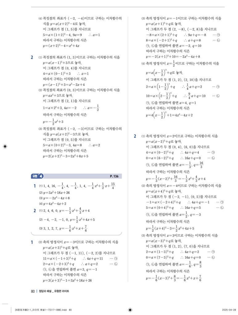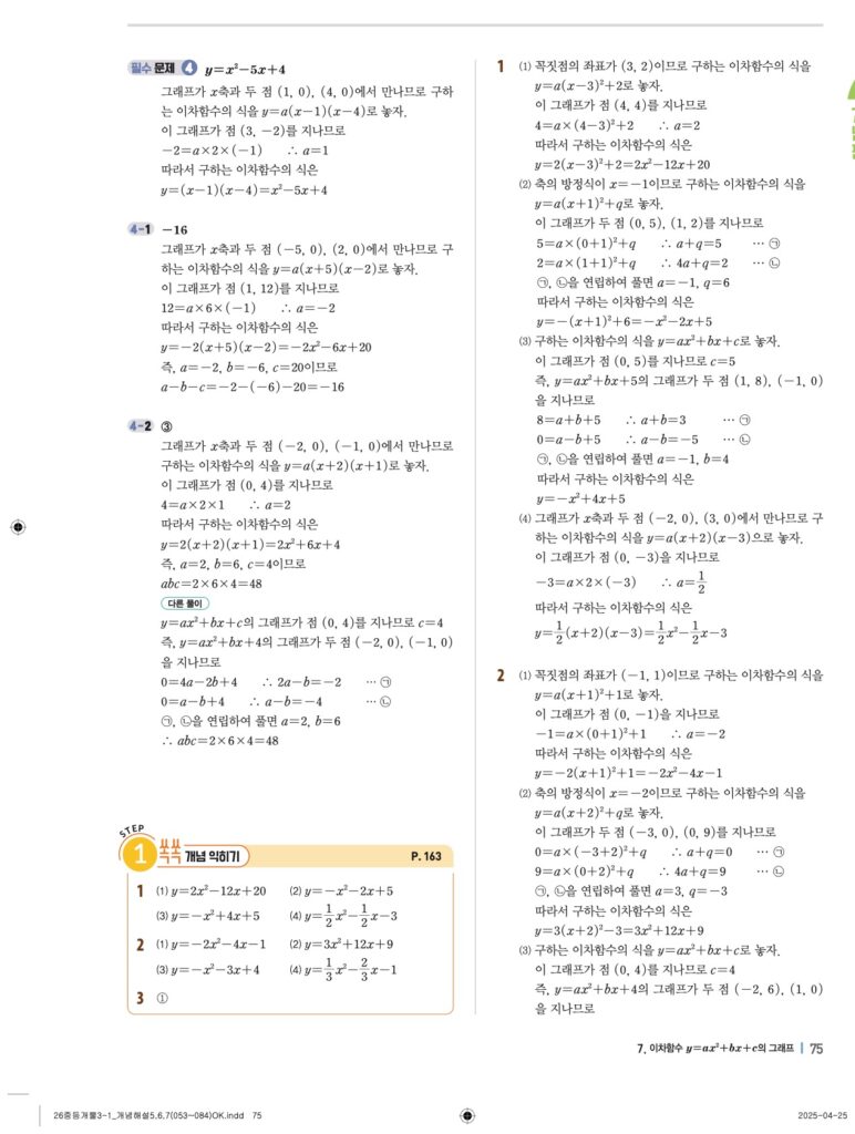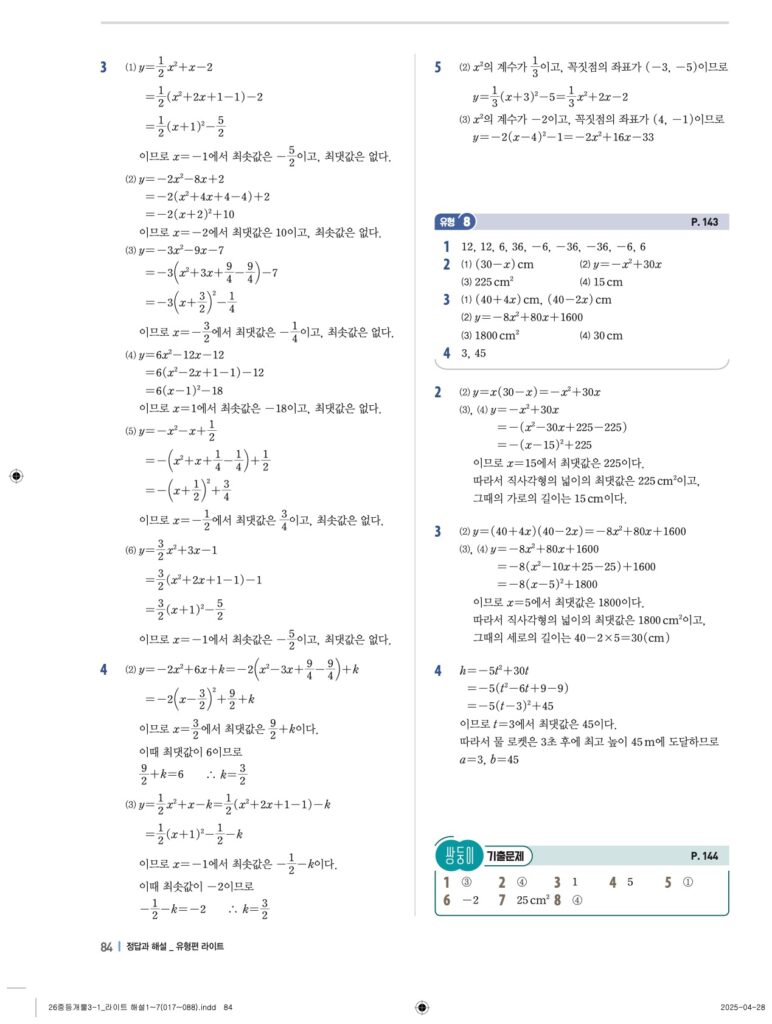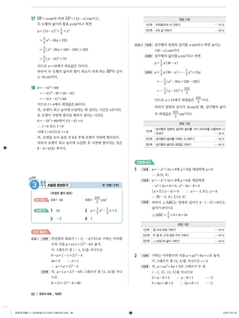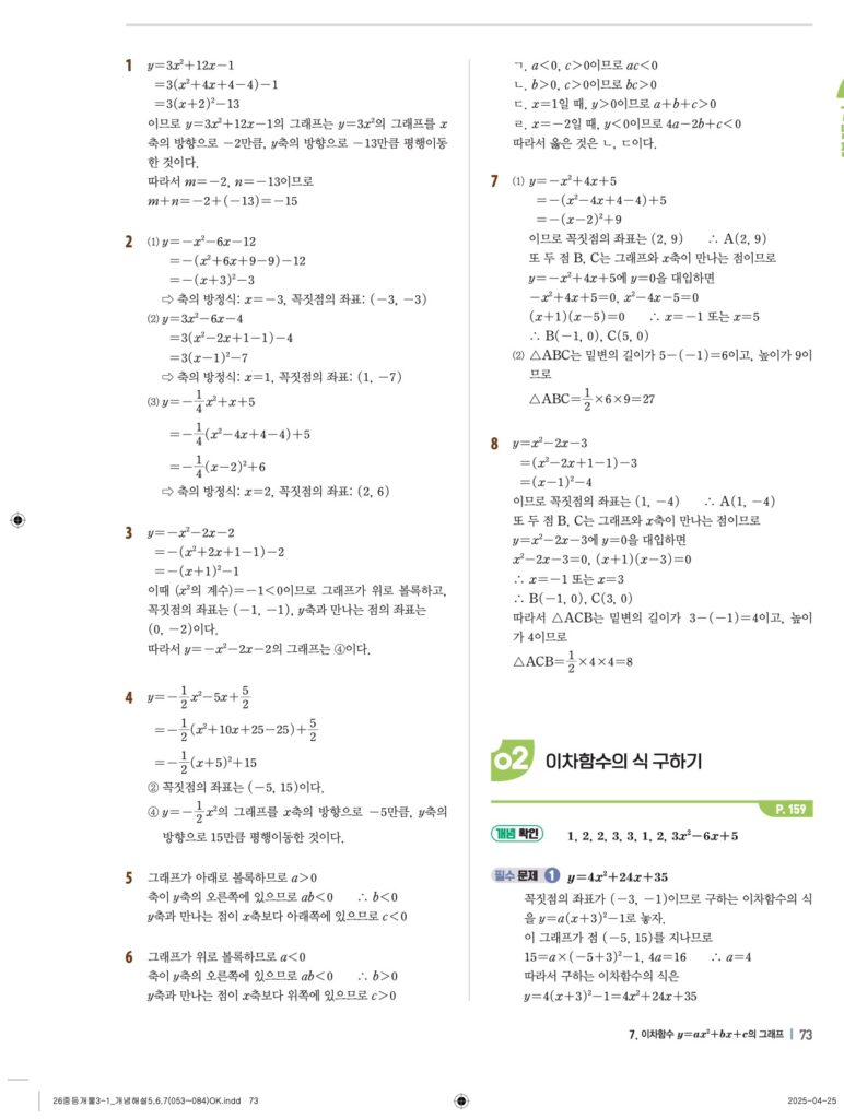 개념플러스유형라이트 중3-1답지 07 이차함수의 일반형 그래프
