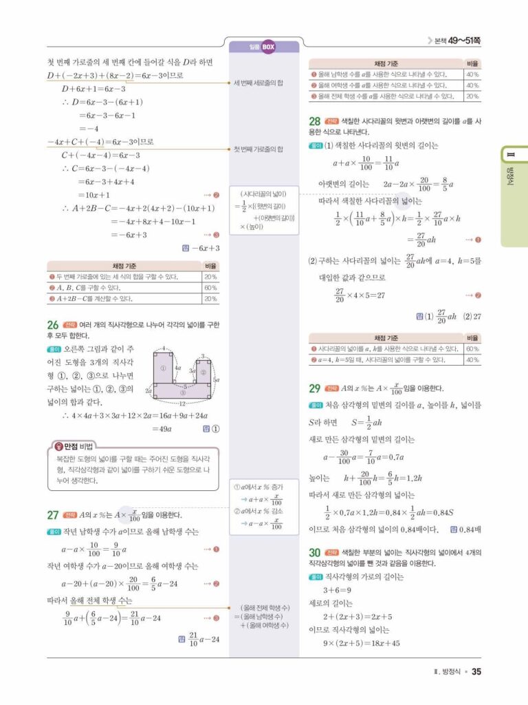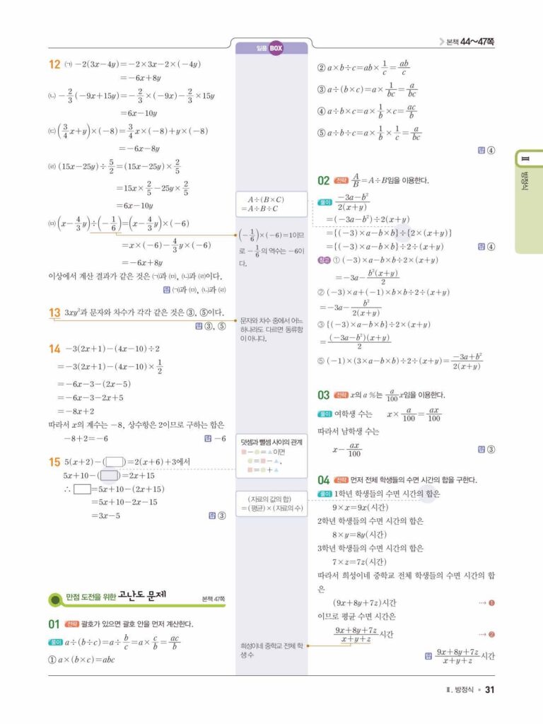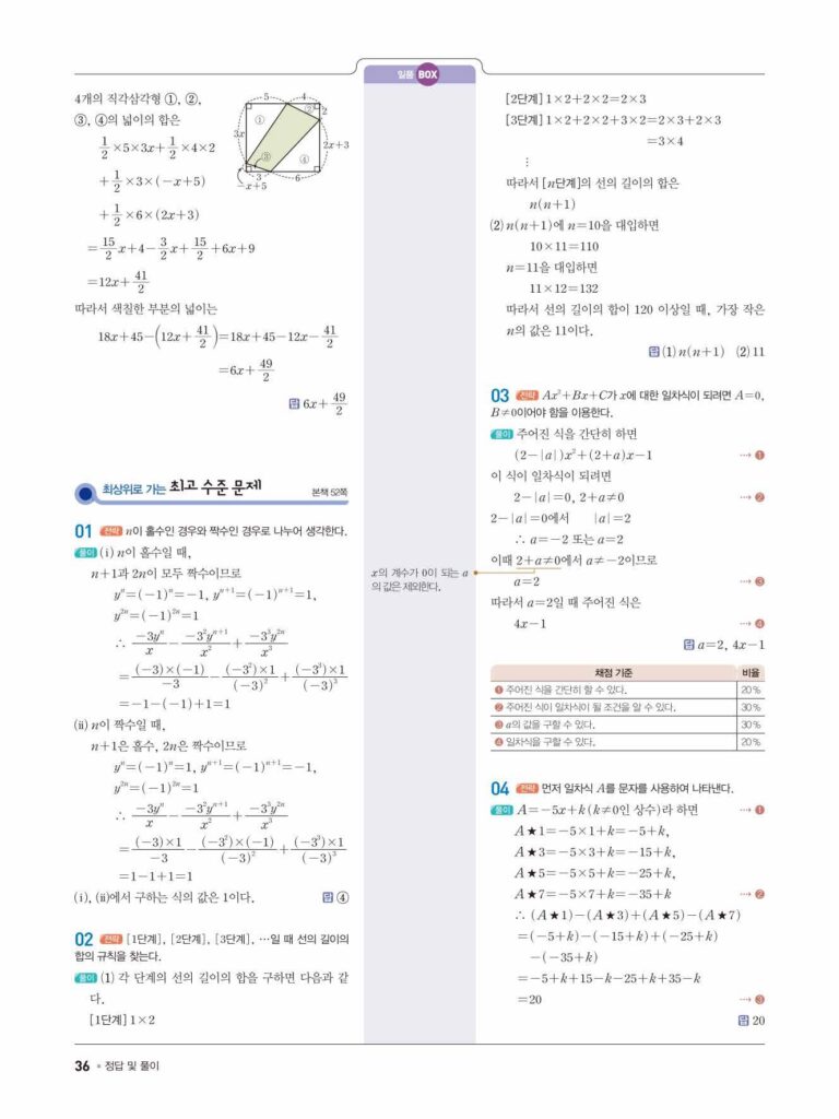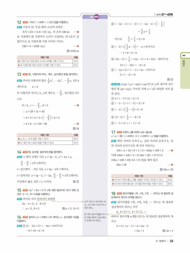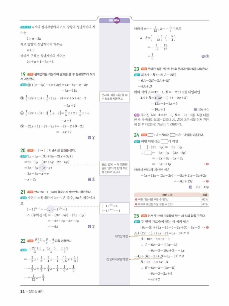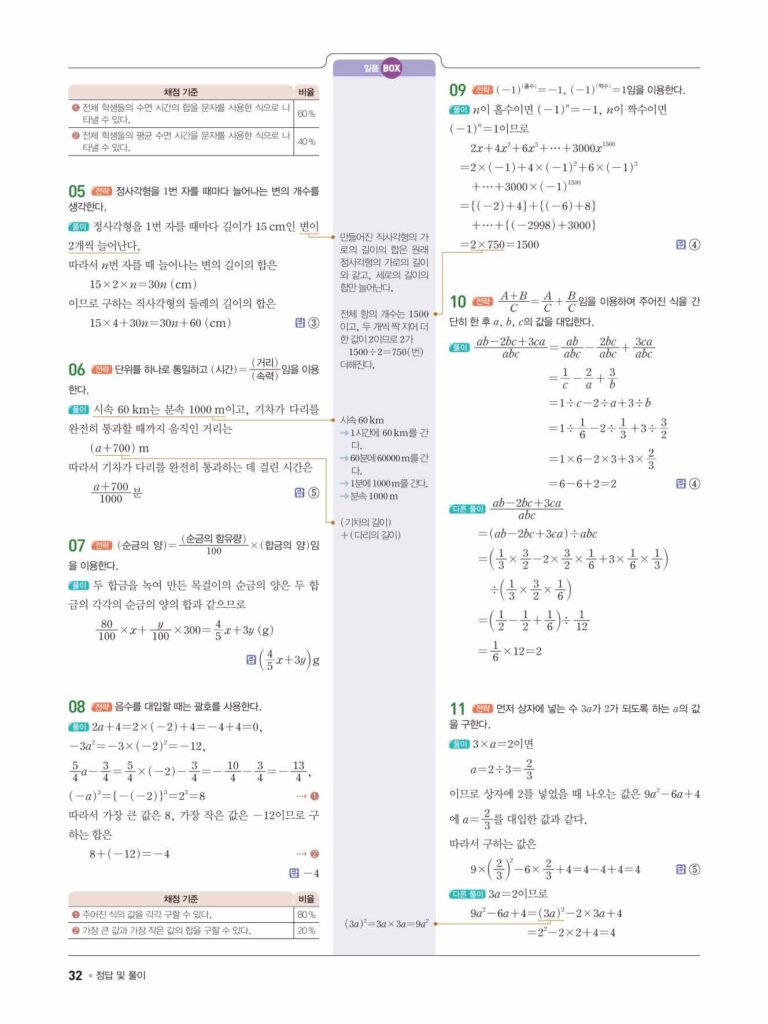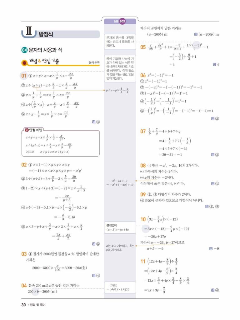 일품 중1-1 답지 04 문자의 사용과 식