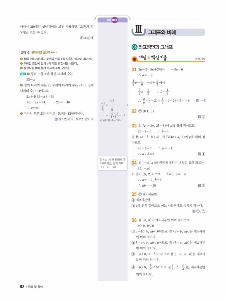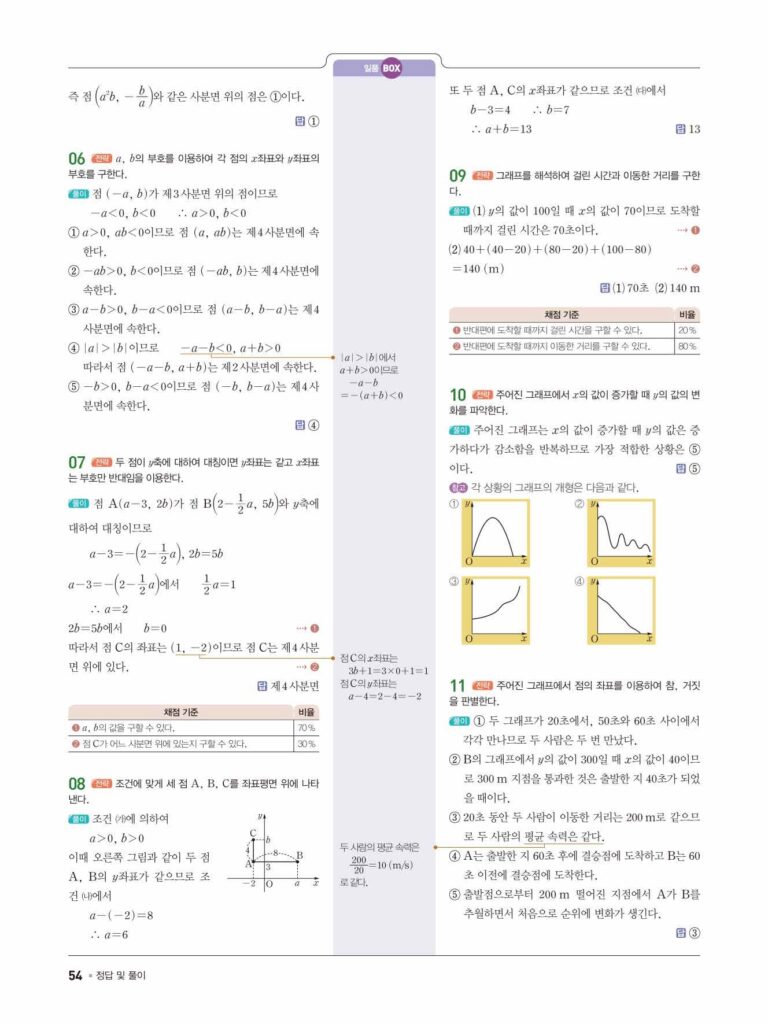 일품 중1-1 답지 06 좌표평면과 그래프