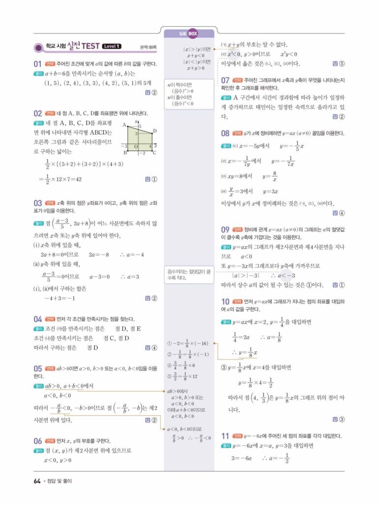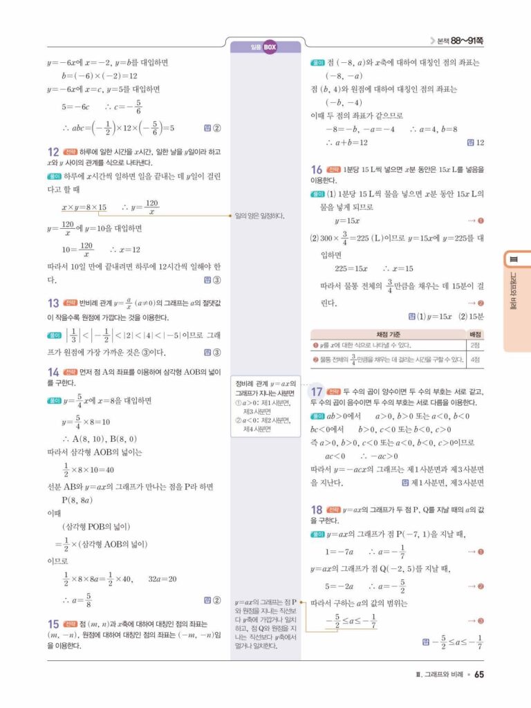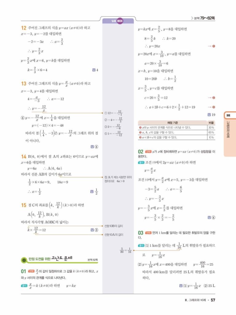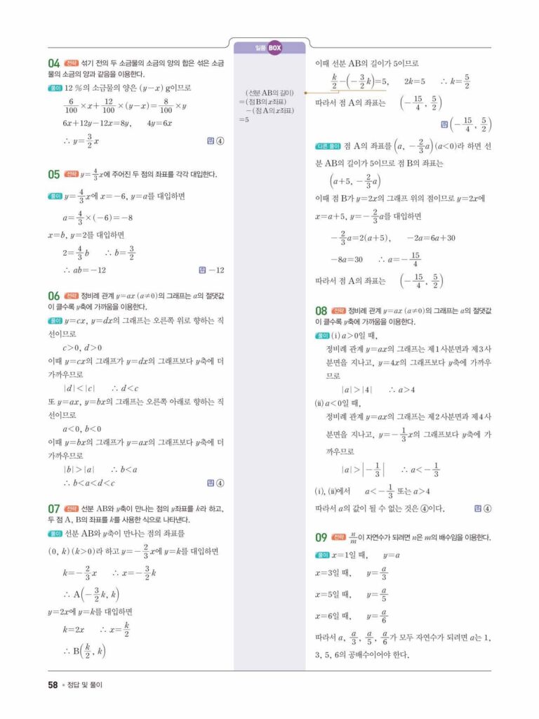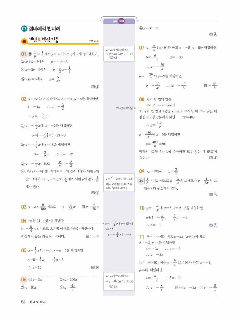 일품 중1-1 답지 07 정비례와 반비례