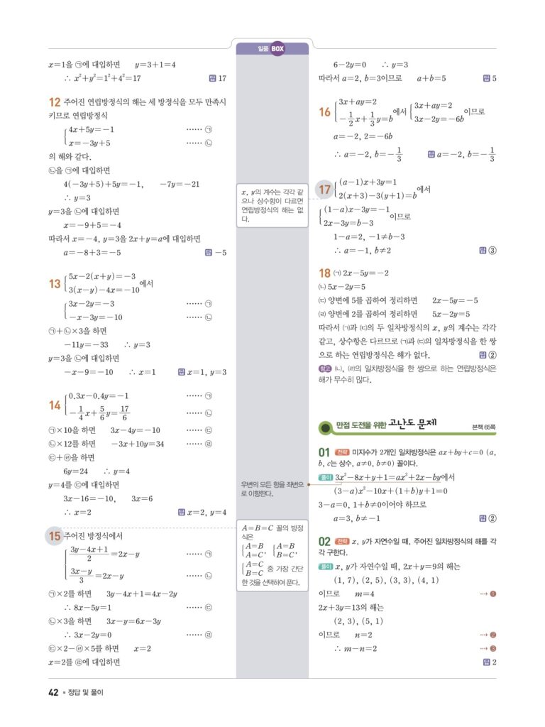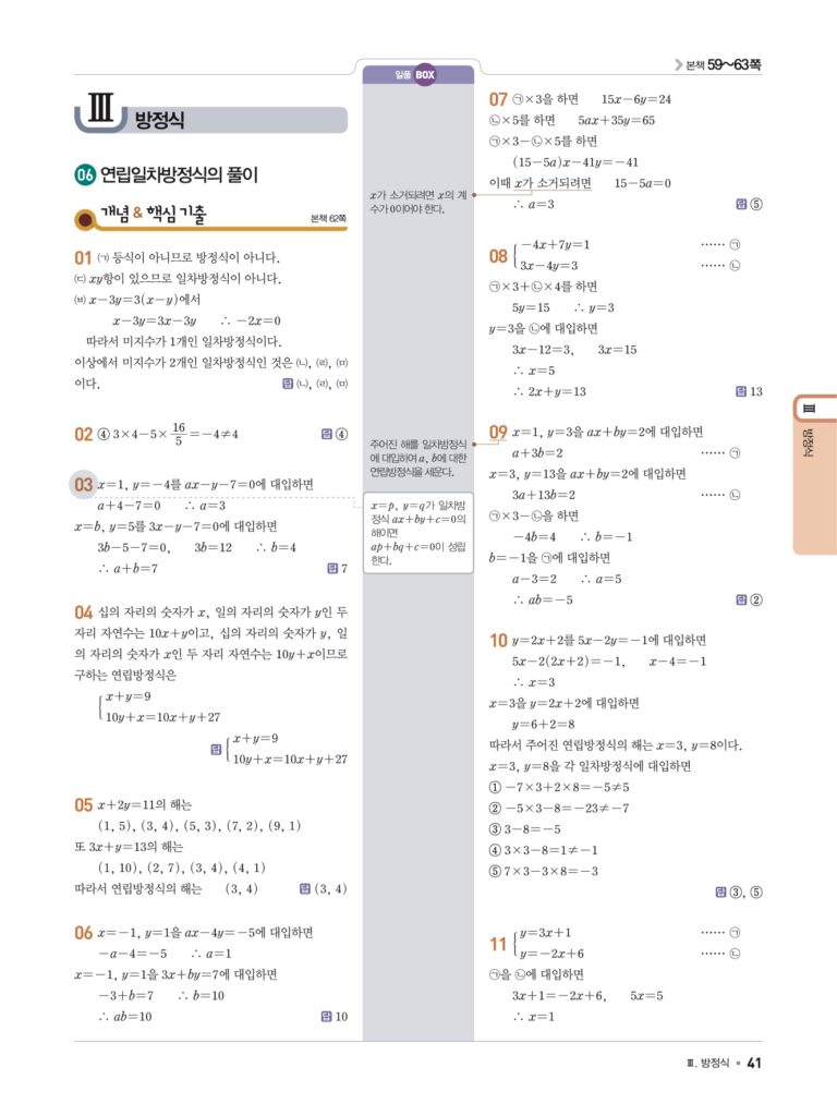 일품 중2-1 답지 06 연립일차방정식의 풀이