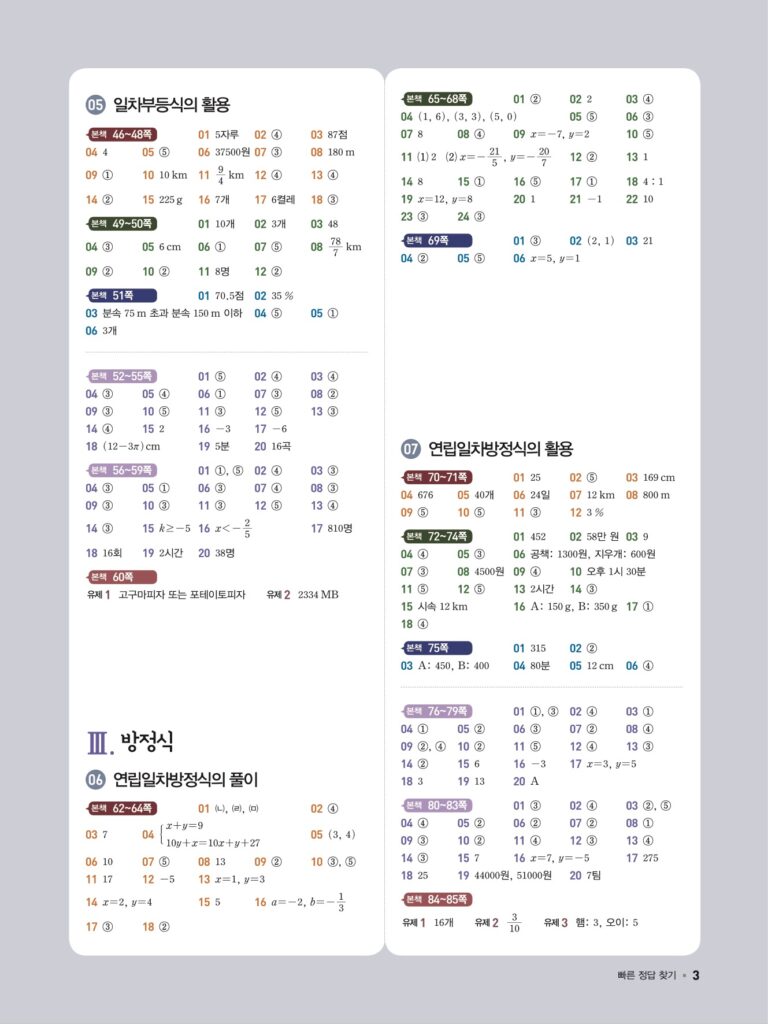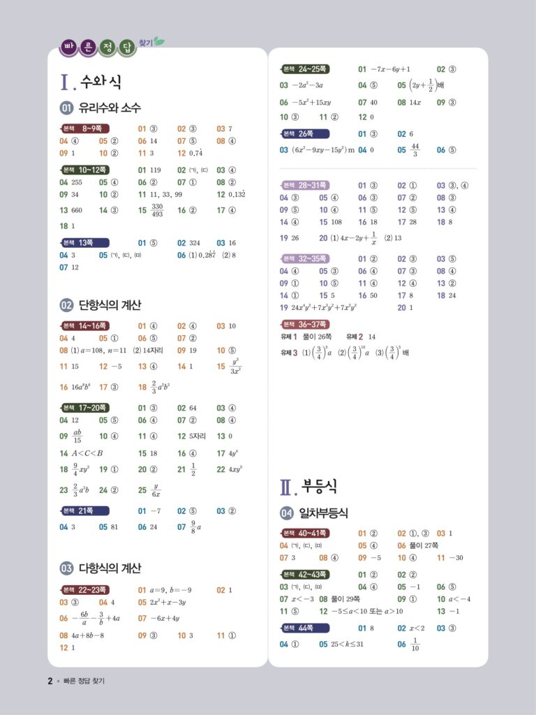 일품 중2-1 답지