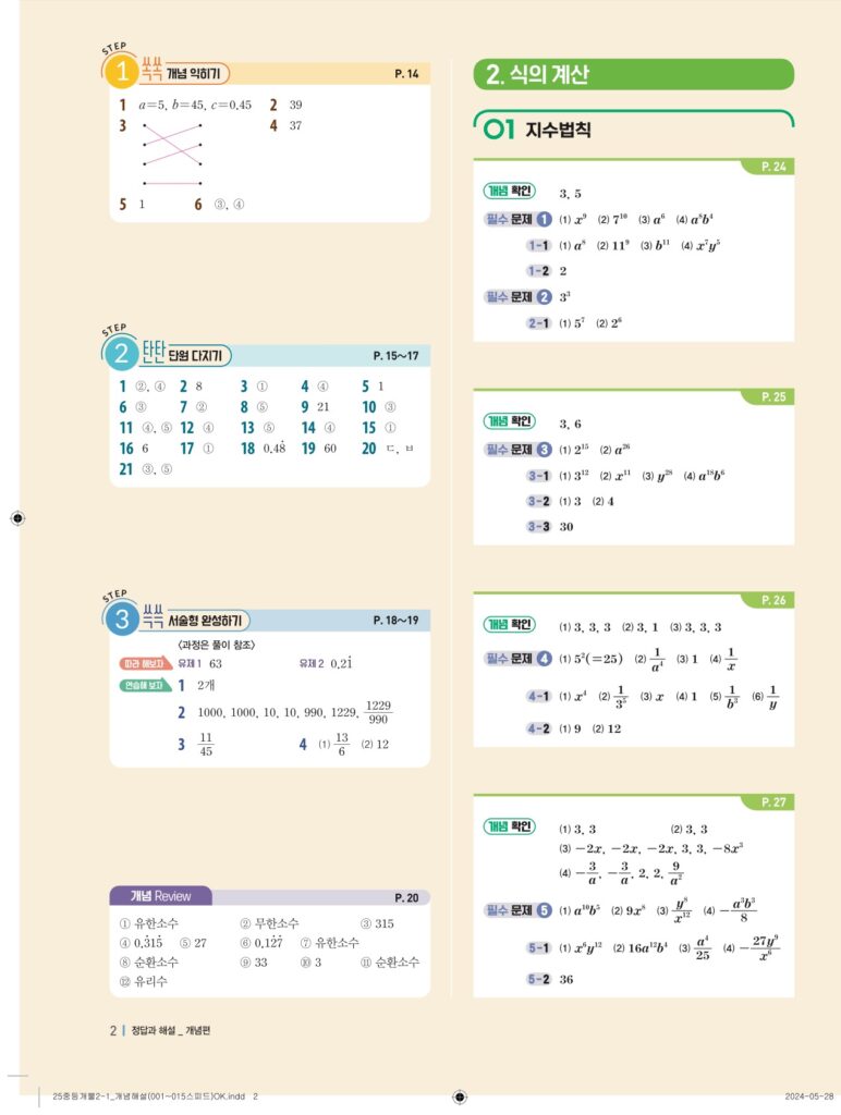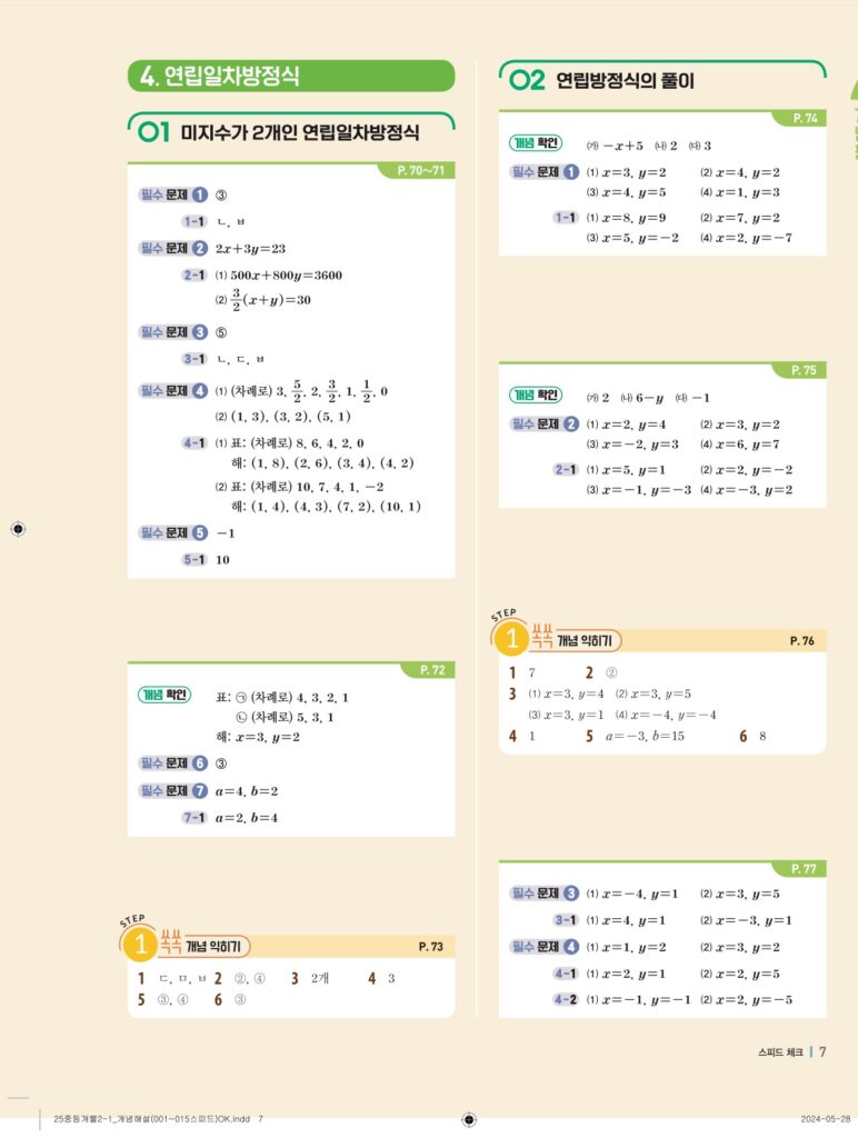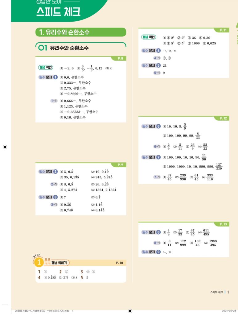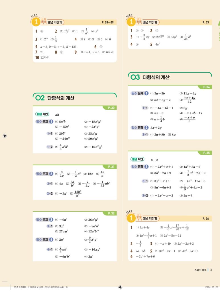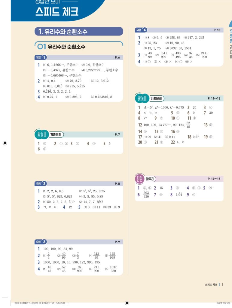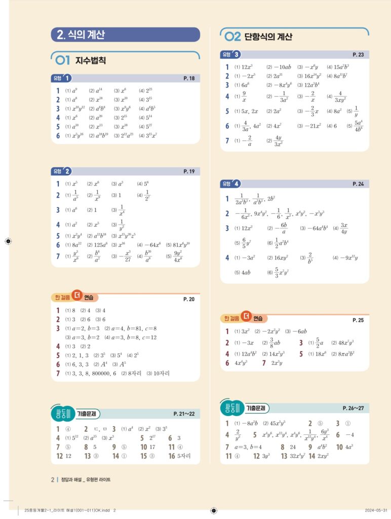 개념플러스유형라이트 중2-1답지 개념편 유형편 해설지 빠른답지