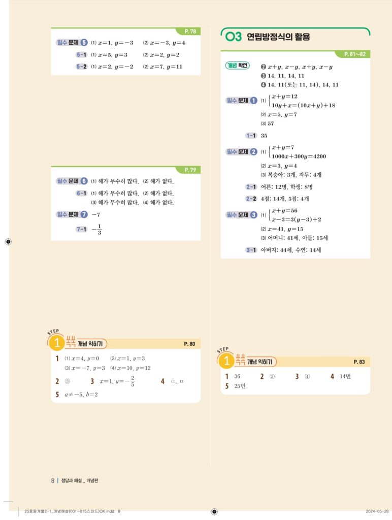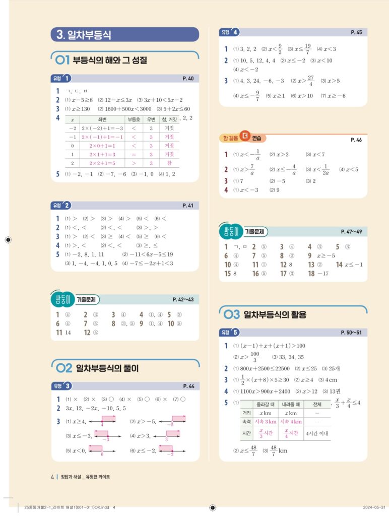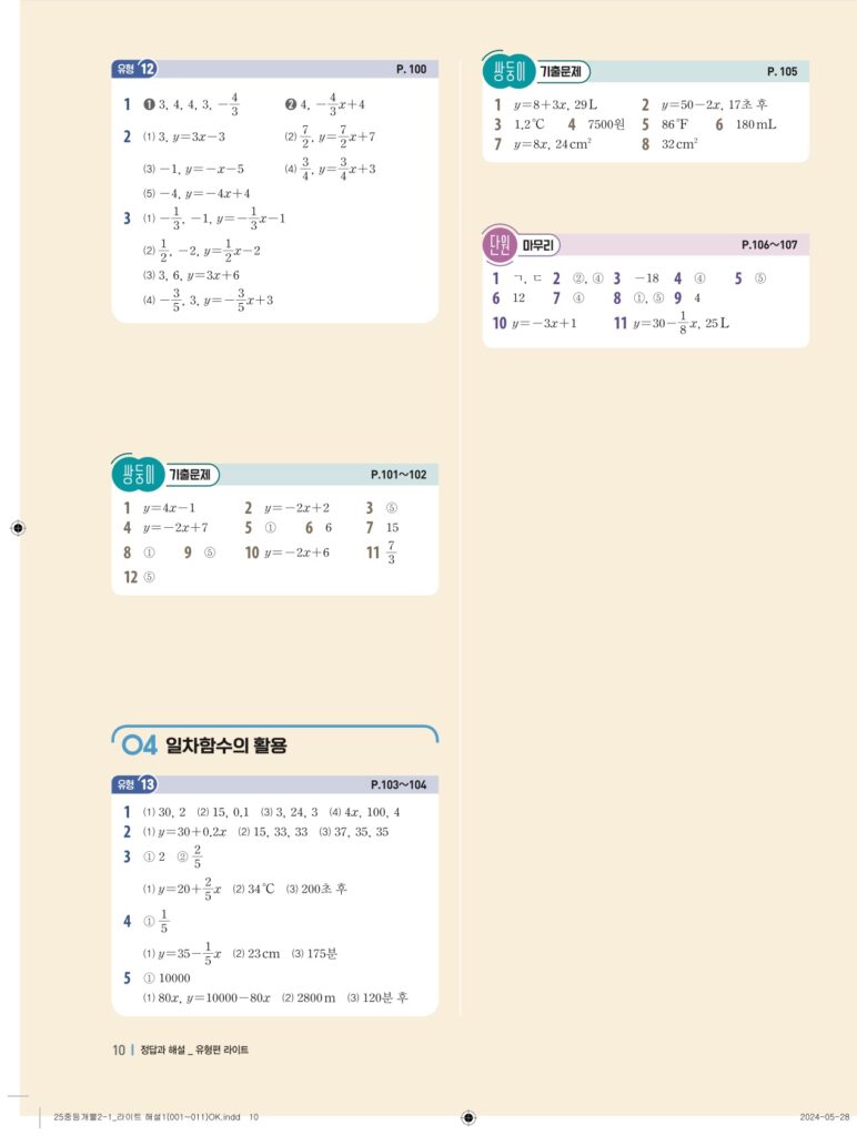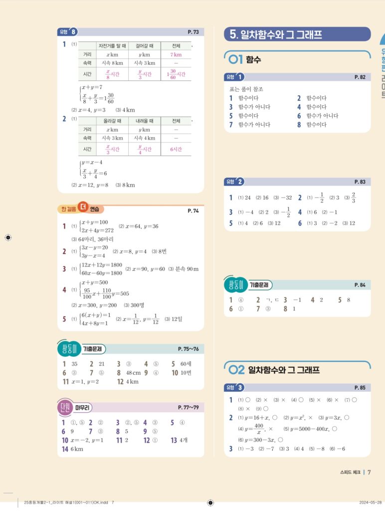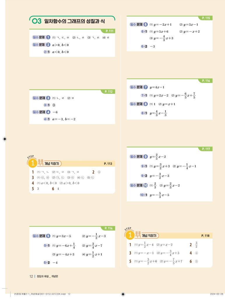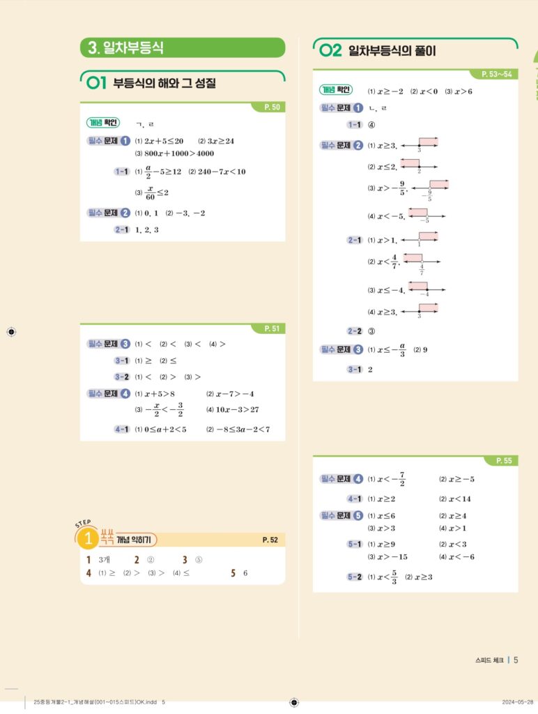 개념플러스유형라이트 중2-1답지 개념편 유형편 해설지 빠른답지