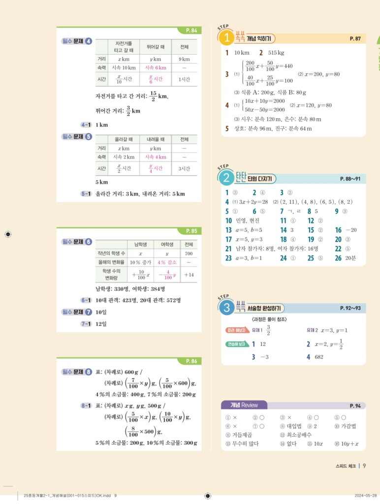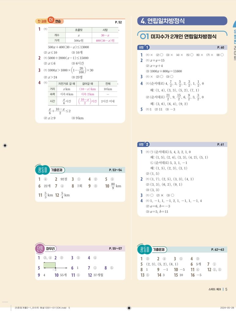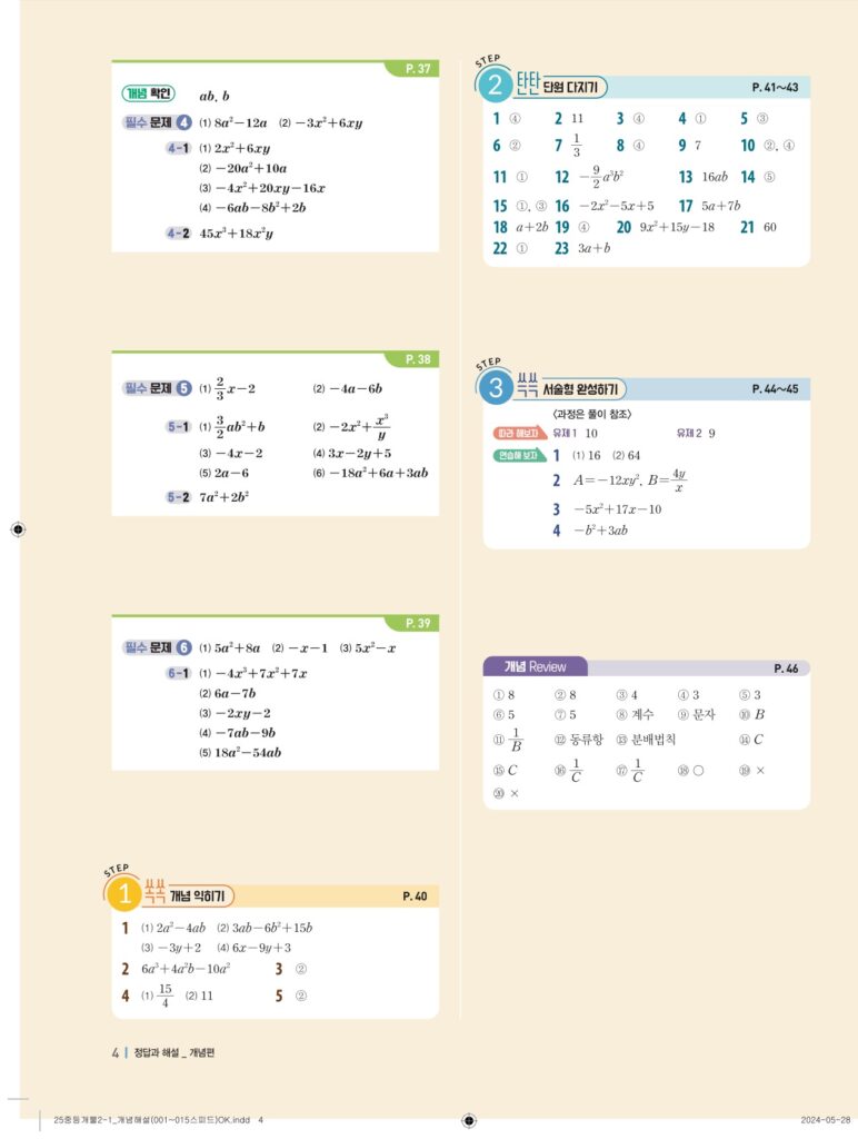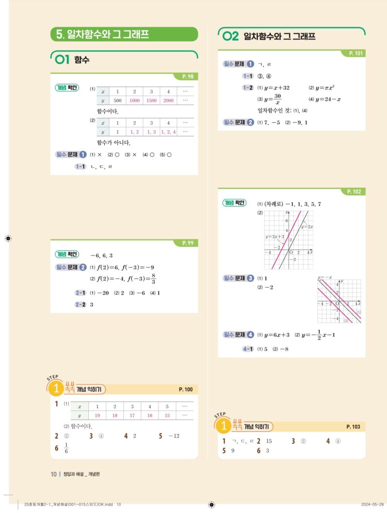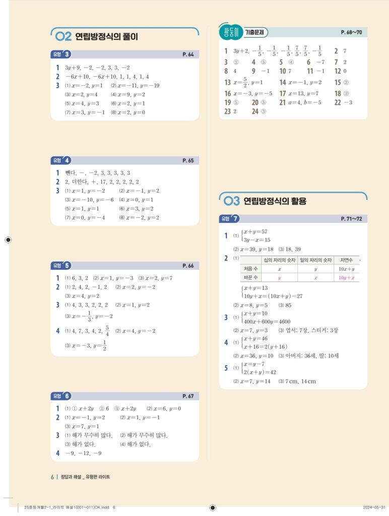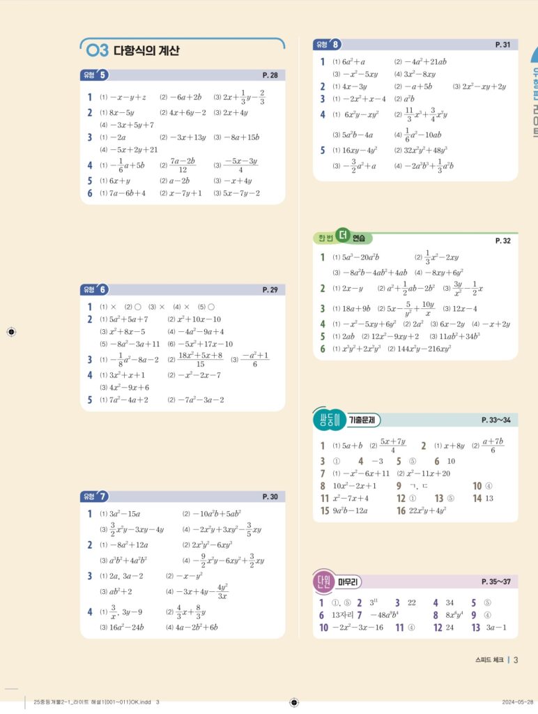 개념플러스유형라이트 중2-1답지 개념편 유형편 해설지 빠른답지