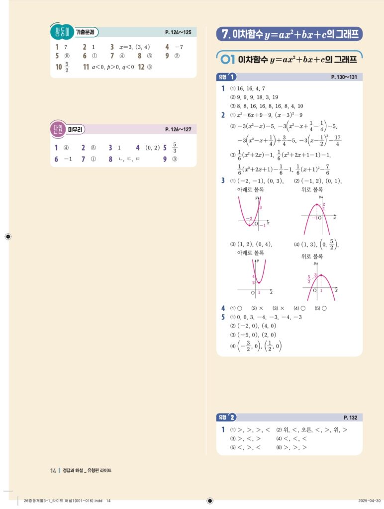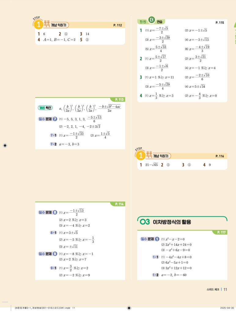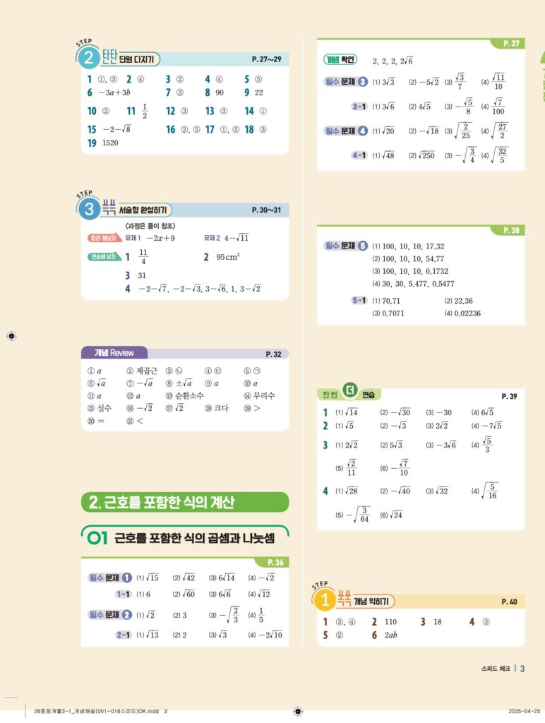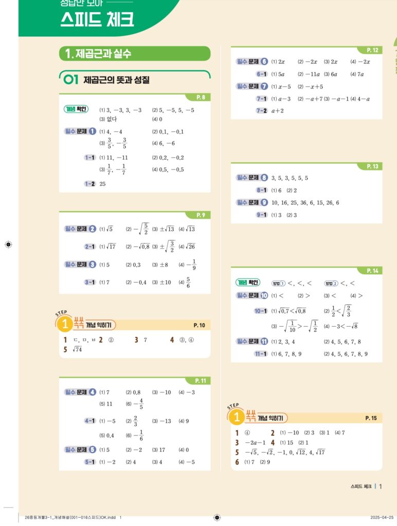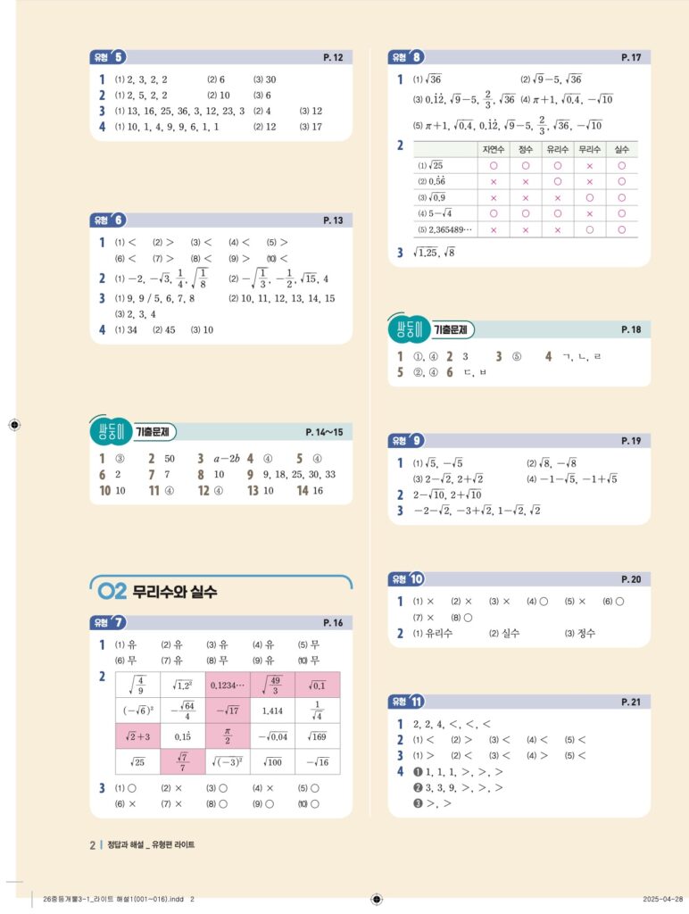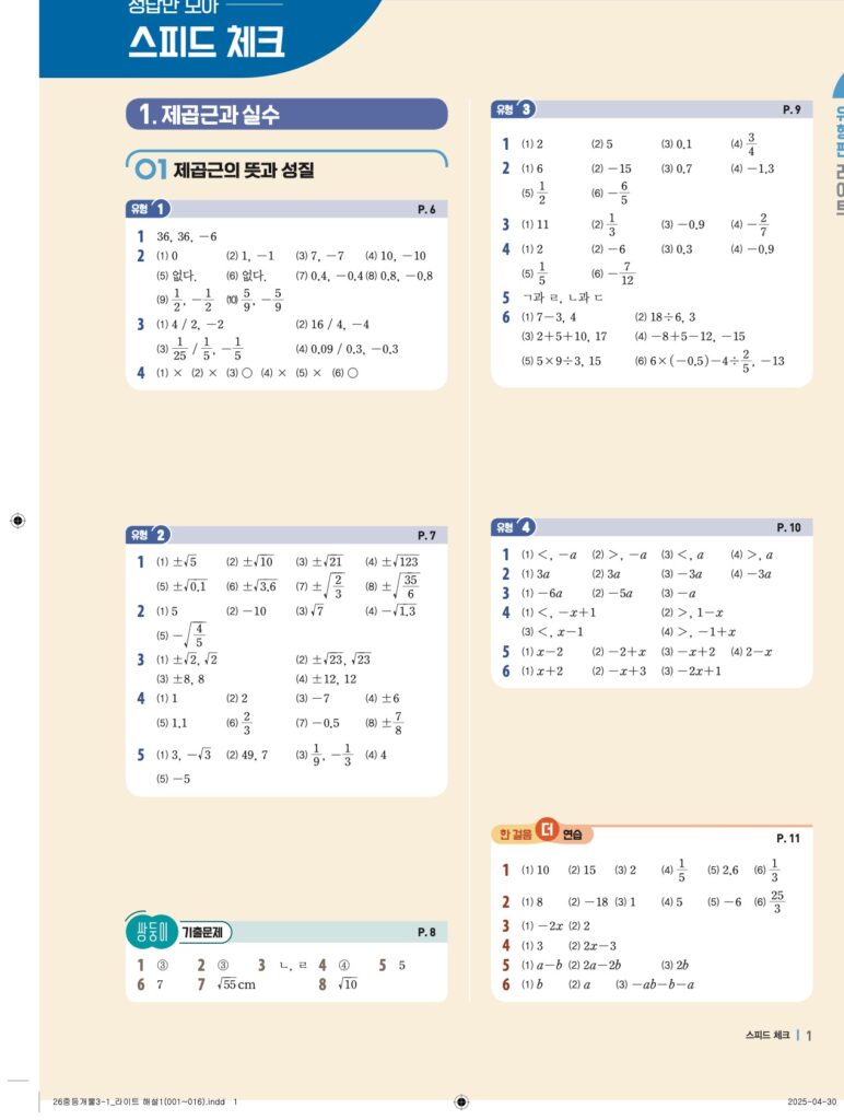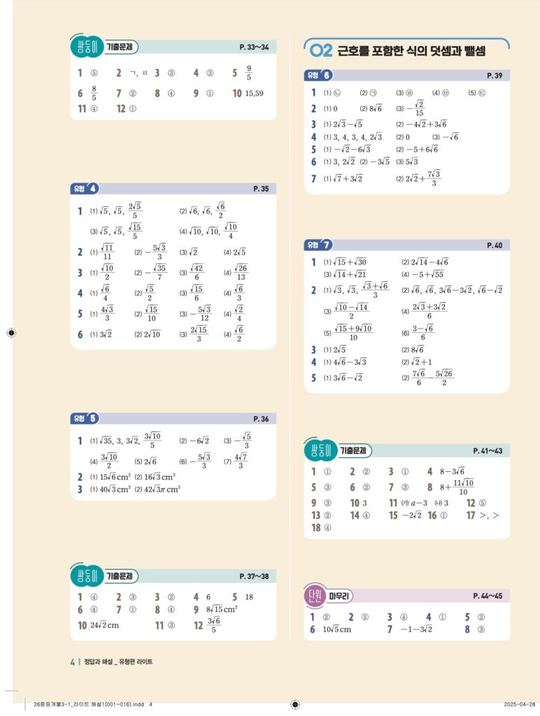 개념플러스유형라이트 중3-1답지 개념편 유형편 해설지 빠른답지