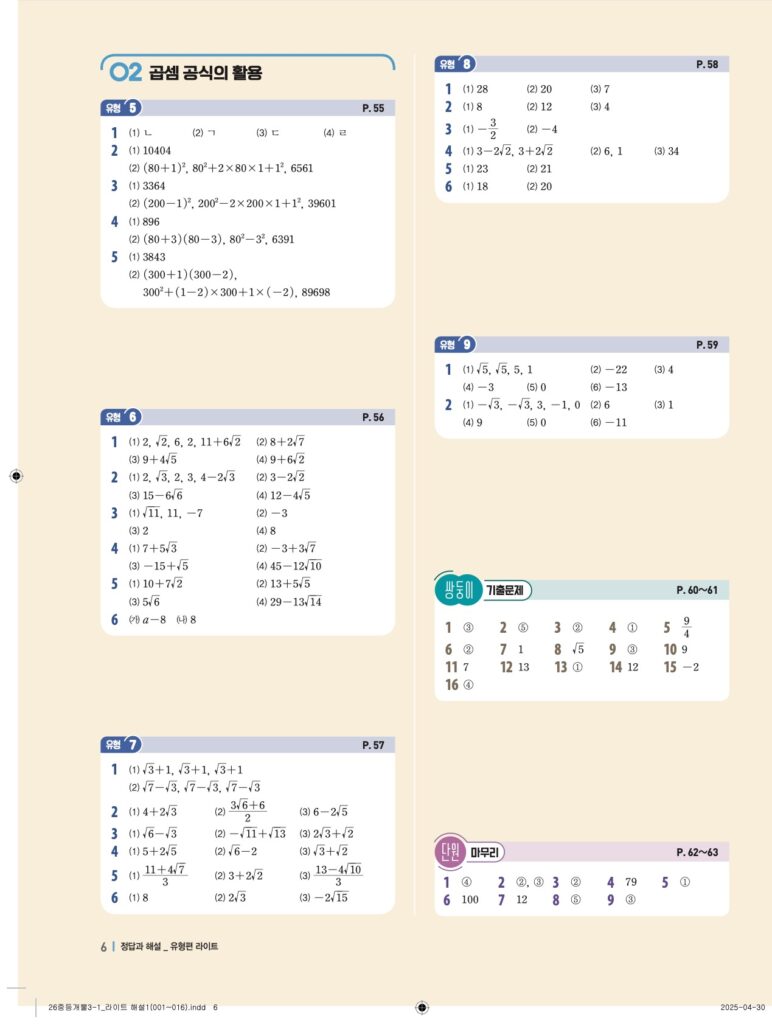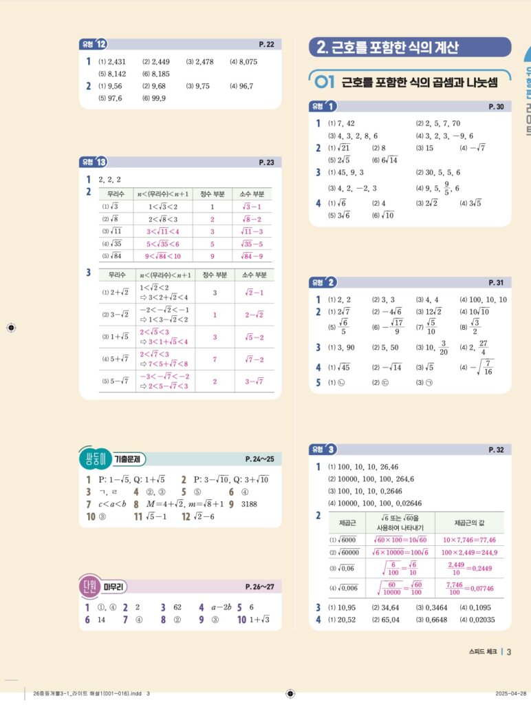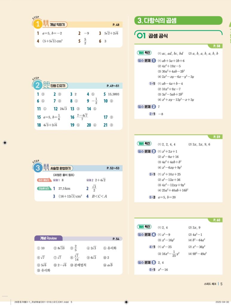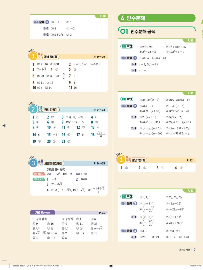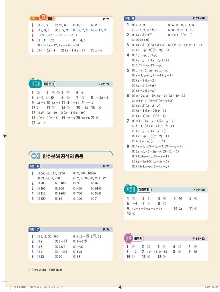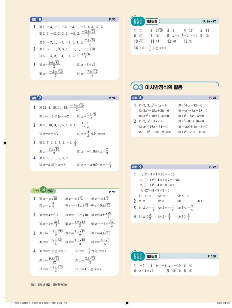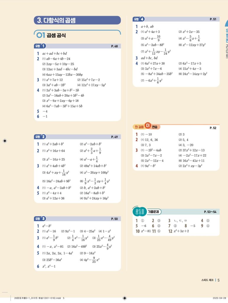 개념플러스유형라이트 중3-1답지 개념편 유형편 해설지 빠른답지
