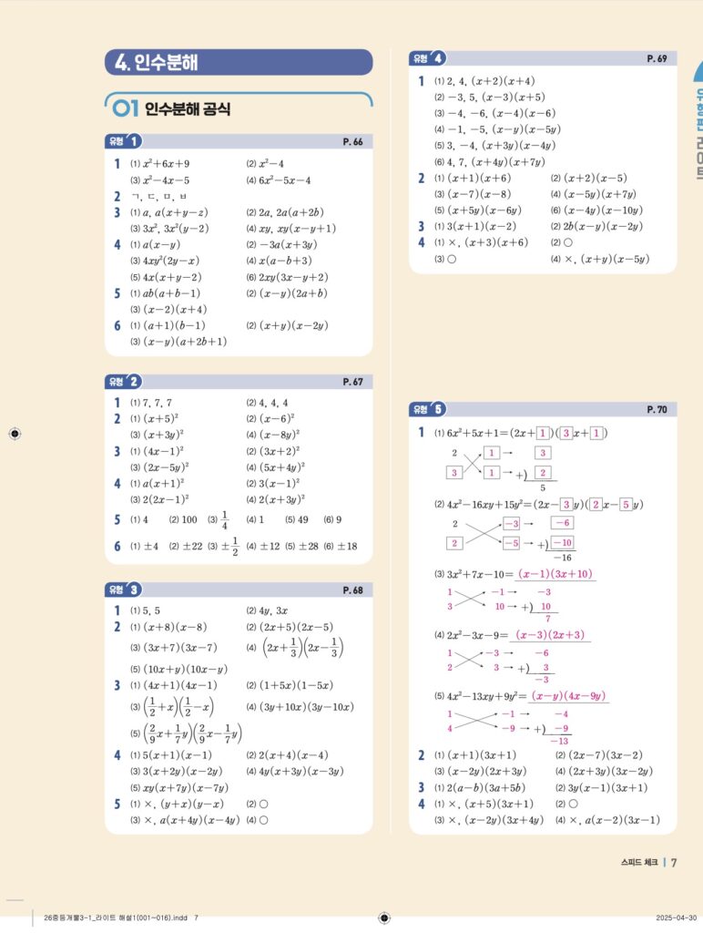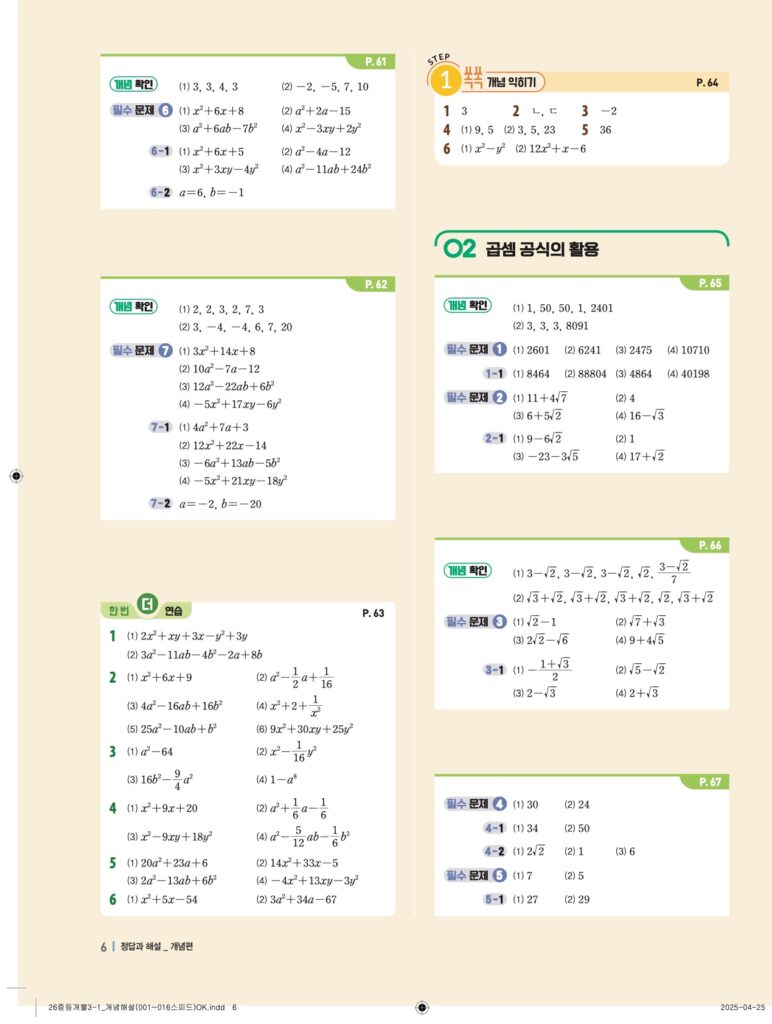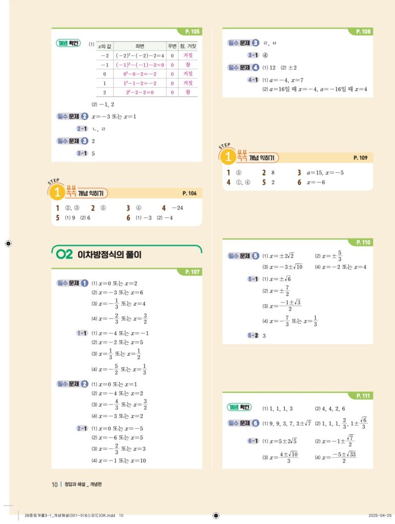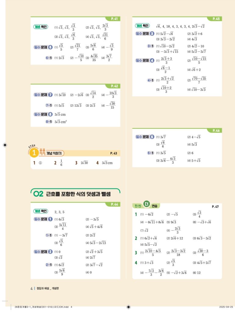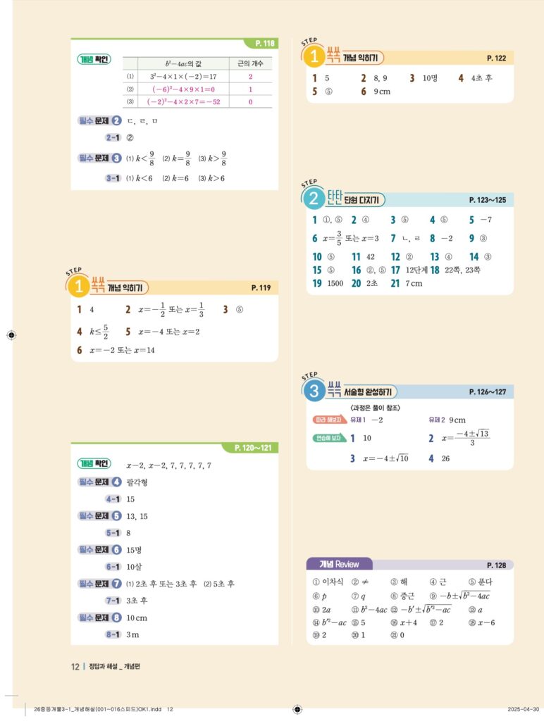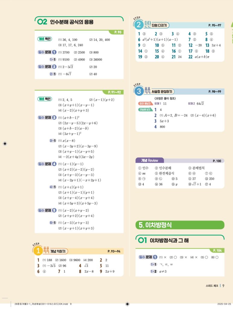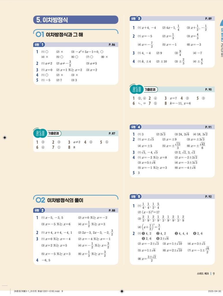 개념플러스유형라이트 중3-1답지 개념편 유형편 해설지 빠른답지