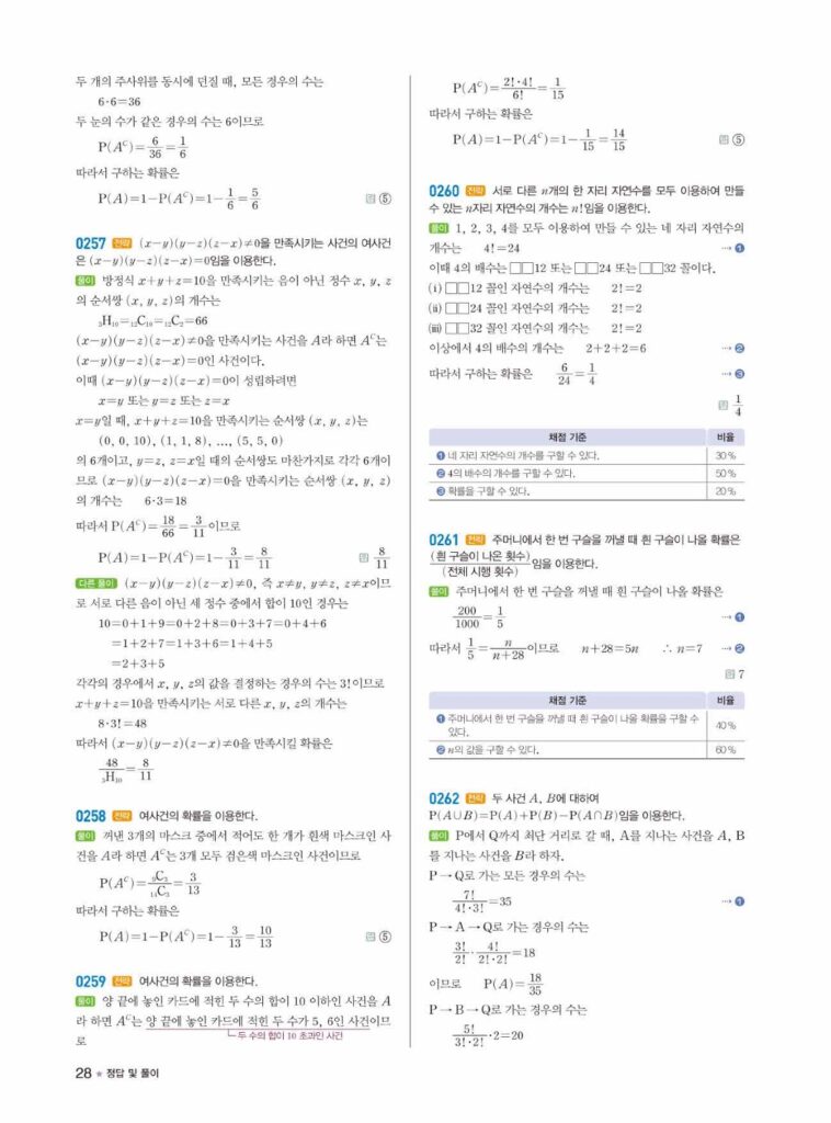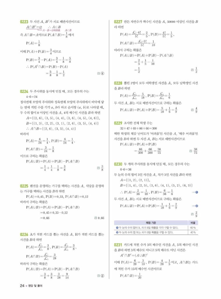 라이트쎈확률과통계답지 03 확률의뜻과활용