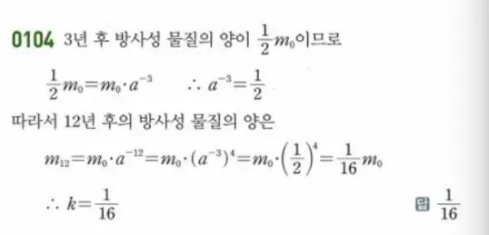 [쎈 대수] 0104번 완벽 해설: 방사성 물질과 지수 법칙, ‘덩어리’로 치환해서 해결하기! (영상 포함)