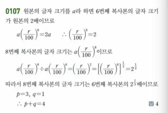 [쎈 대수] 0107번 완벽 해설: 복사본의 글자 크기와 지수 법칙 (공식, 꿀팁, 영상)