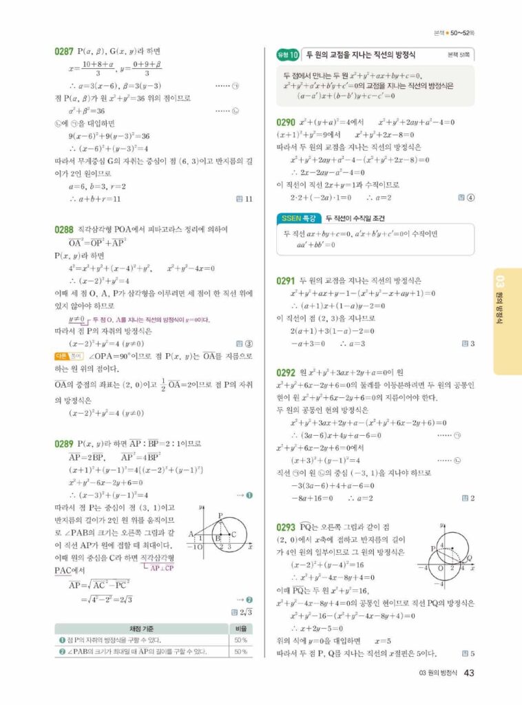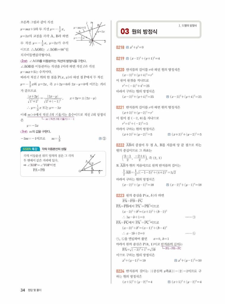 쎈 공통수학 2 답지 03 원의 방정식 (정답 및 해설)