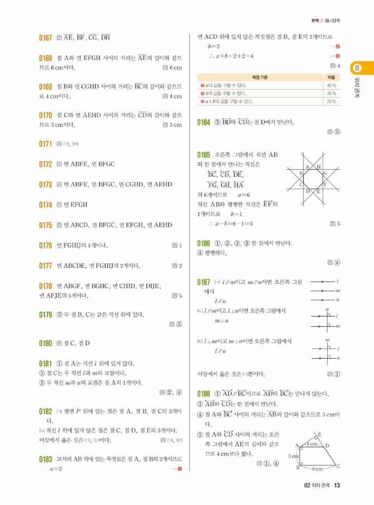 쎈 수학 중1-2 답지 02 위치 관계 (1학년 2학기)