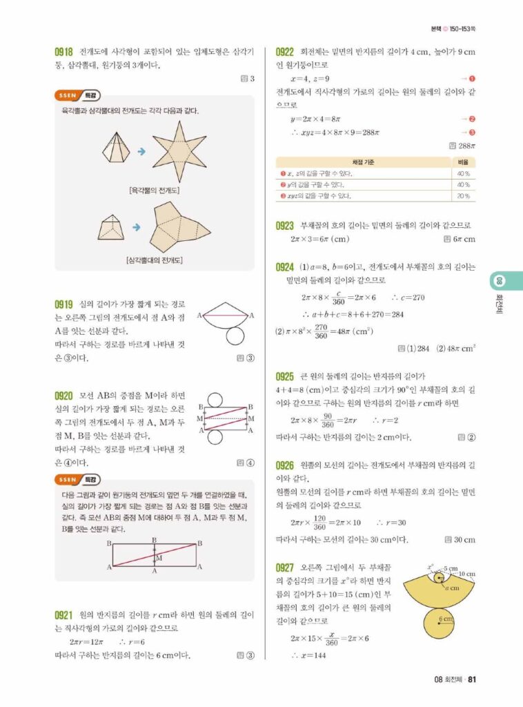 쎈 수학 중1-2 08 회전체 답지 3페이지