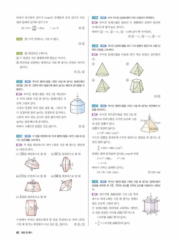 쎈 수학 중1-2 08 회전체 답지 2페이지