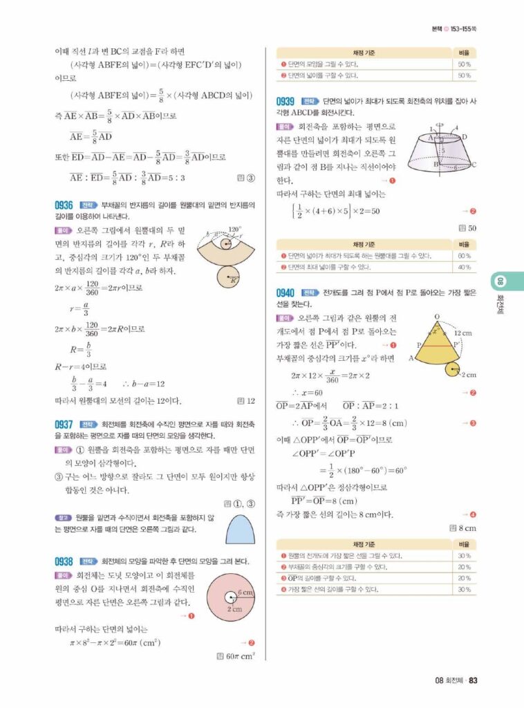 쎈 수학 중1-2 답지 08 회전체 (1학년 2학기)