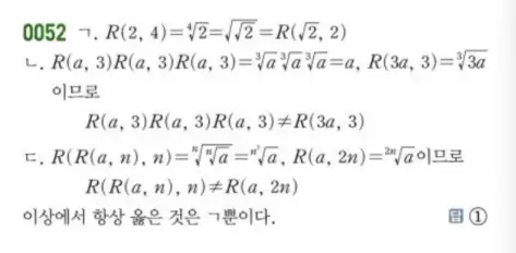 즉, “오른쪽 숫자($n$) 제곱근 왼쪽 숫자($a$)”라는 뜻입니다. 이제 보기 ㄱ, ㄴ, ㄷ을 하나씩 검증해볼까요?