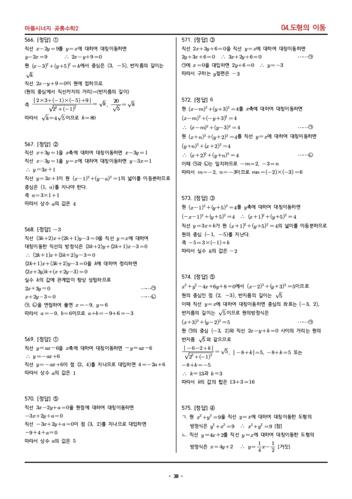 📚 마플시너지 공통수학2 (04. 도형의 이동) 답지 PDF