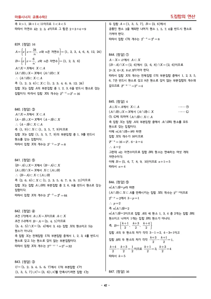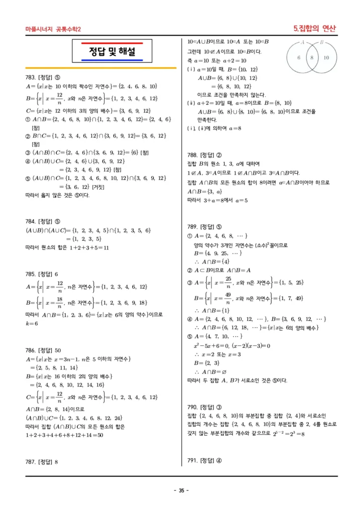 📚 마플시너지 공통수학2 (06. 집합의 연산) 답지 PDF
