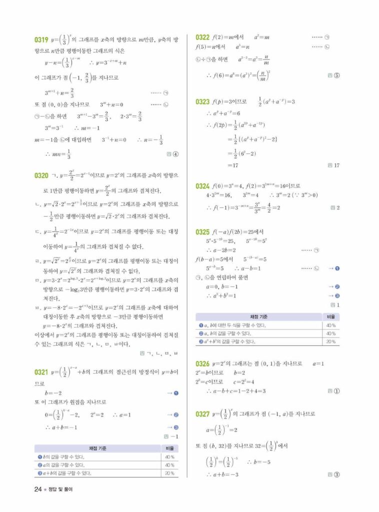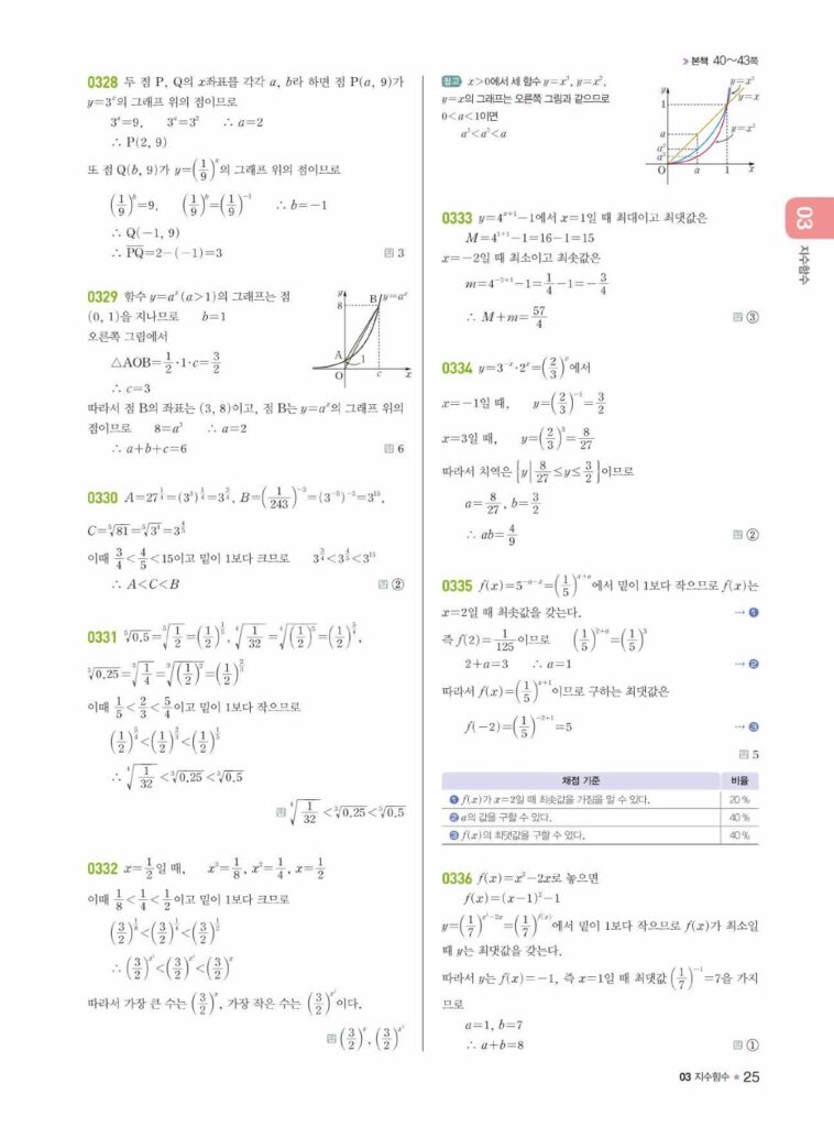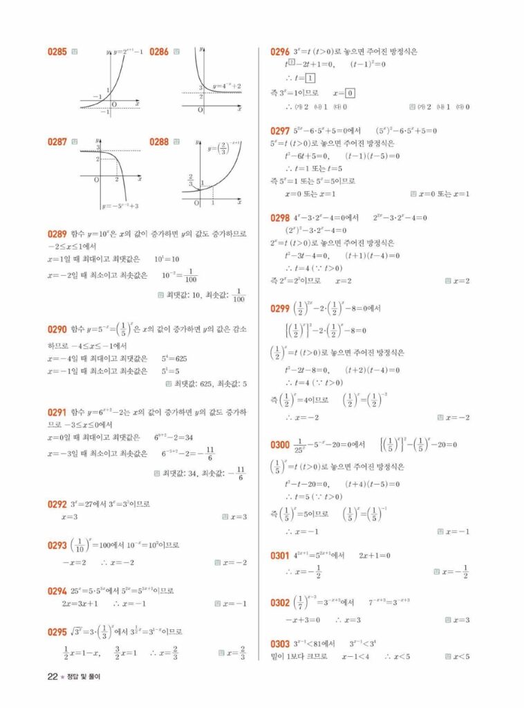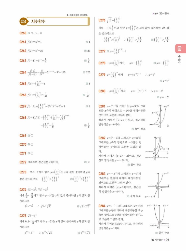 안녕하세요. 라이트쎈 대수(Algebra) 03단원 지수함수 정답 및 해설입니다.