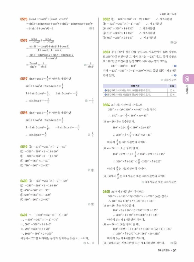 안녕하세요. 라이트쎈 대수(Algebra) 05단원 삼각함수 정답 및 해설입니다.