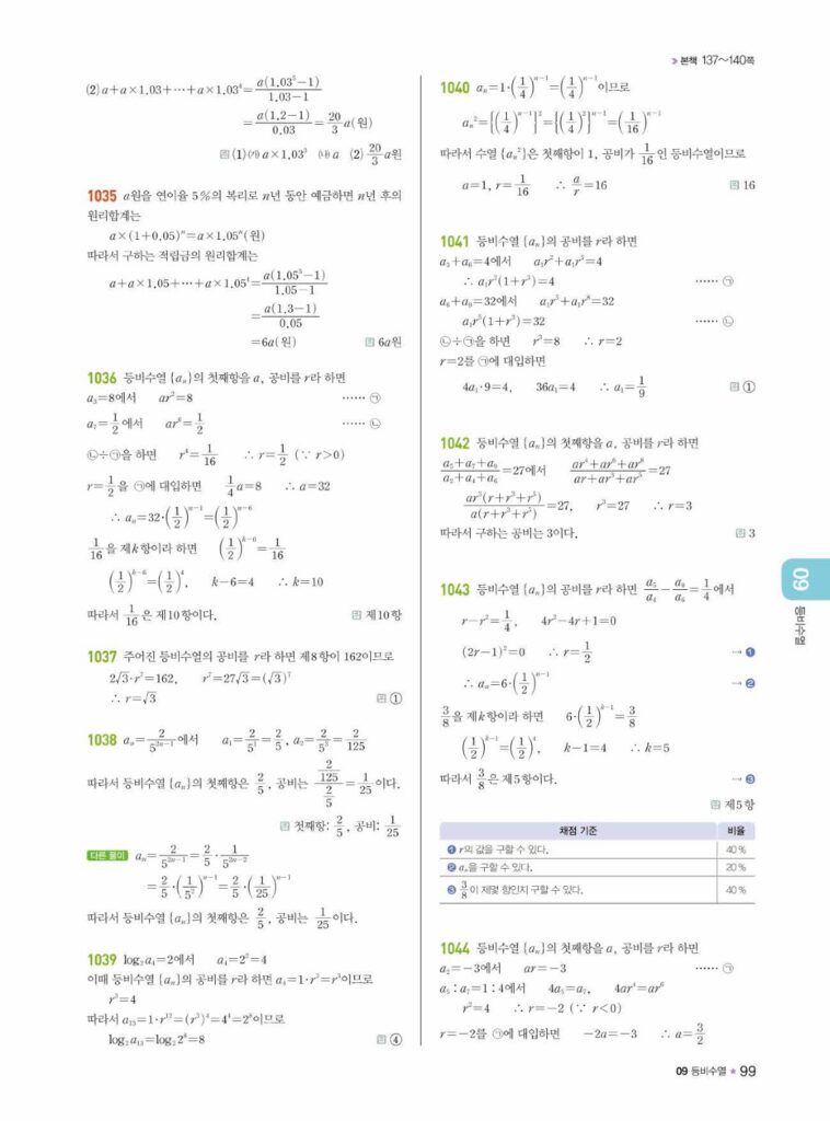 안녕하세요. 라이트쎈 대수(Algebra) 09단원 등비수열 정답 및 해설입니다.