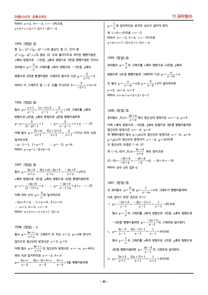 📚 마플시너지 공통수학2 (11. 유리함수) 답지 PDF