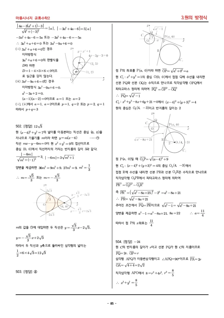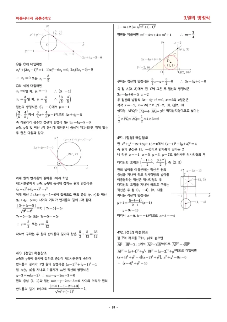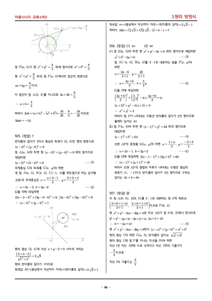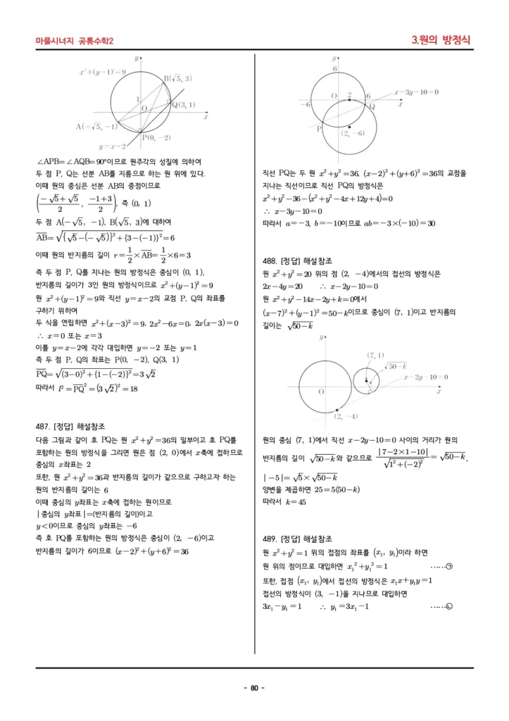 마플시너지 공통수학2 03.원의 방정식(5) 답지