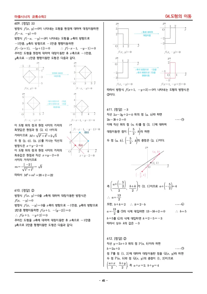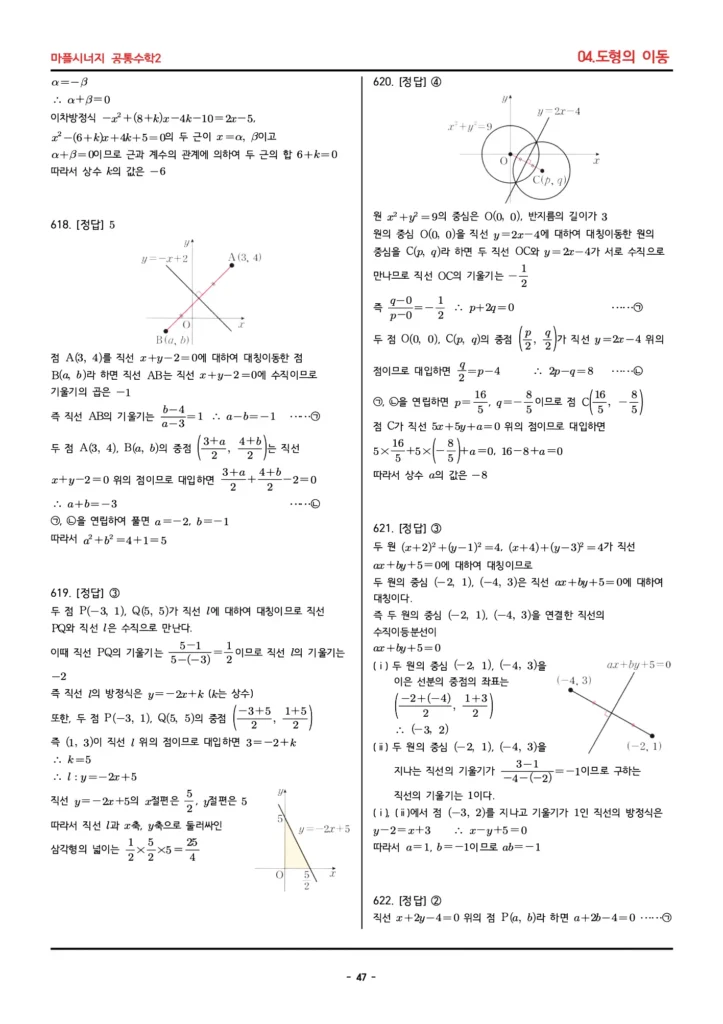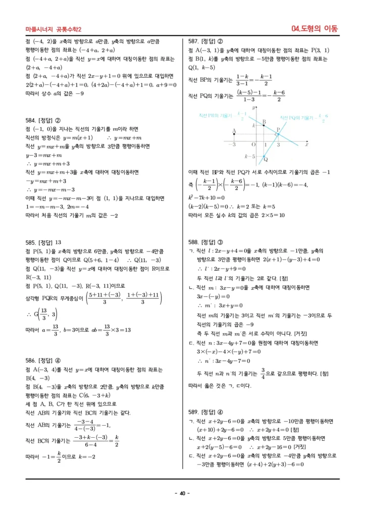 안녕하세요. 마플시너지 공통수학2 문제집의 04단원 도형의 이동 두 번째 파트(2/4) 정답 및 해설입니다.