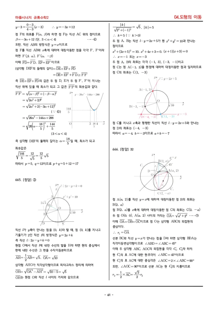 마플시너지 공통수학2 04.도형의 이동(4) 답지