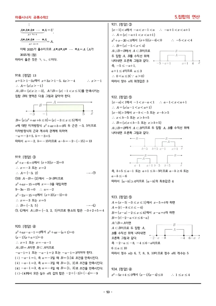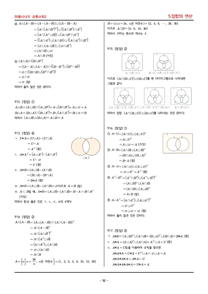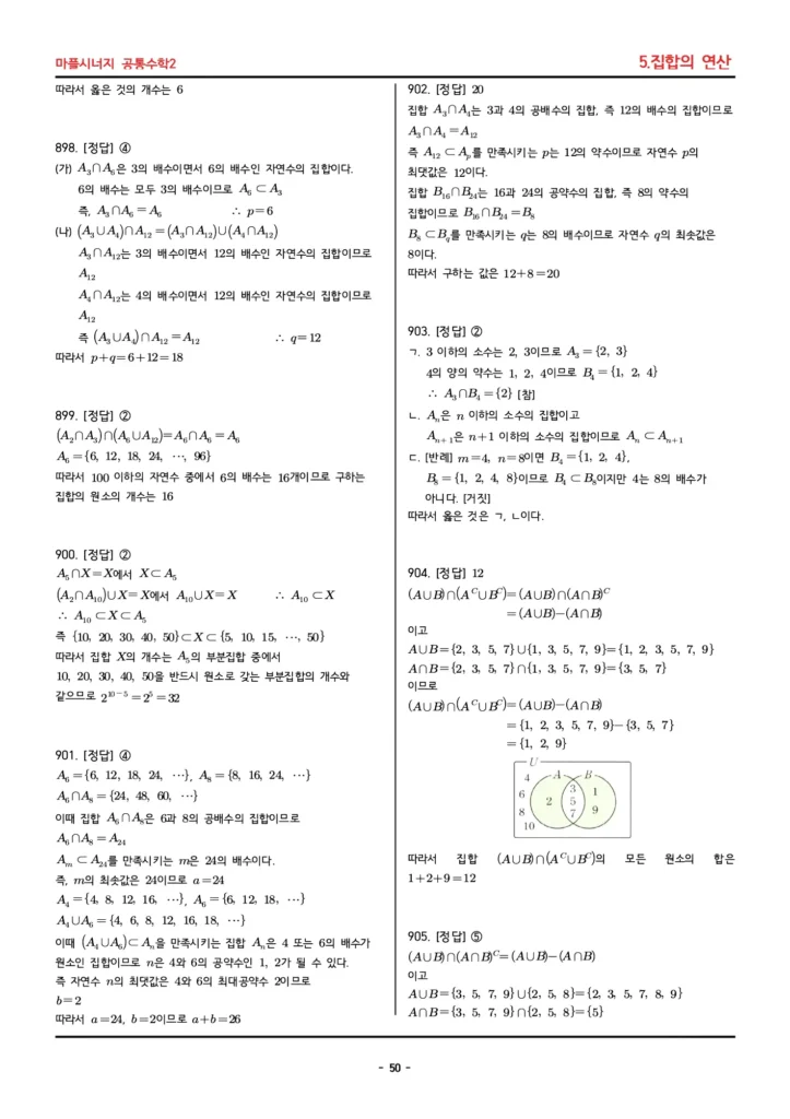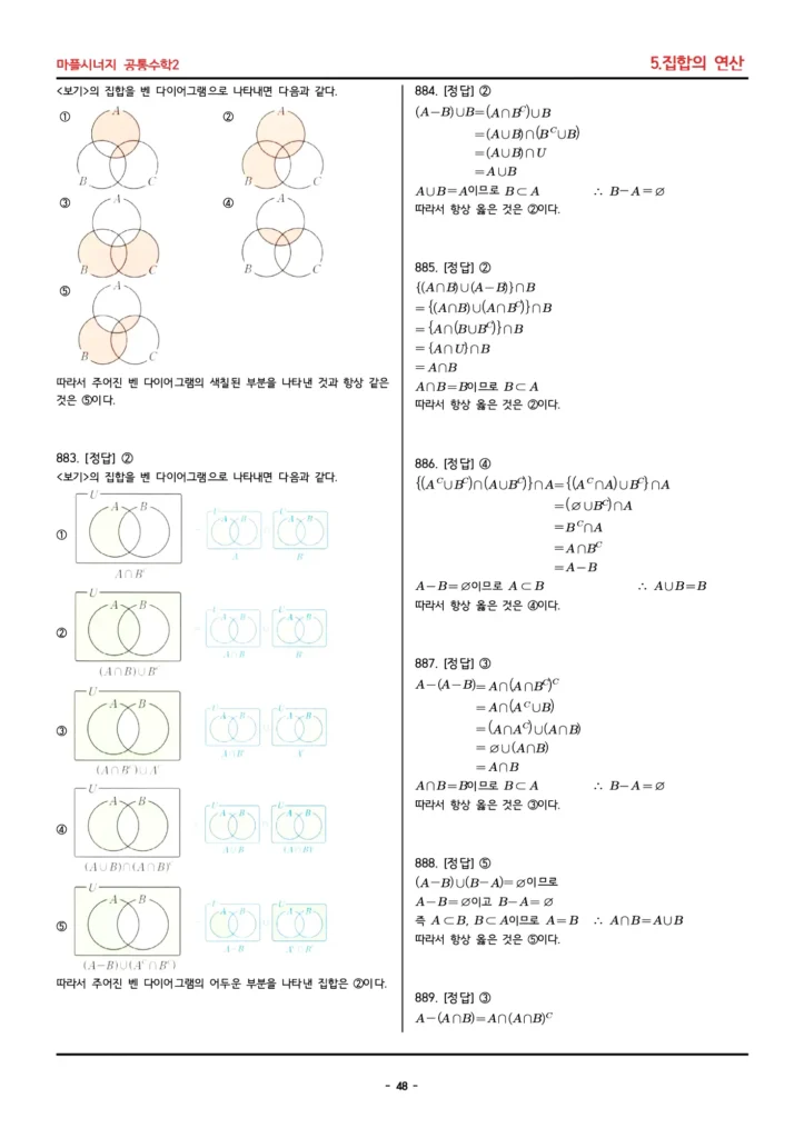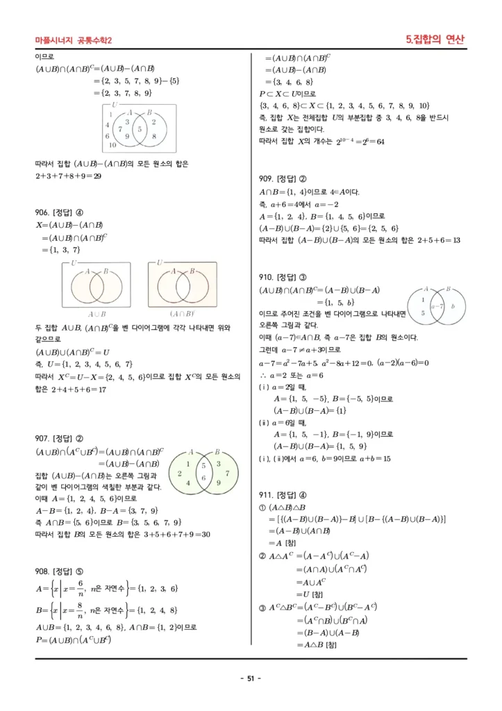 안녕하세요. 마플시너지 공통수학2 문제집의 06단원 집합의 연산 두 번째 파트(2/3) 정답 및 해설입니다.