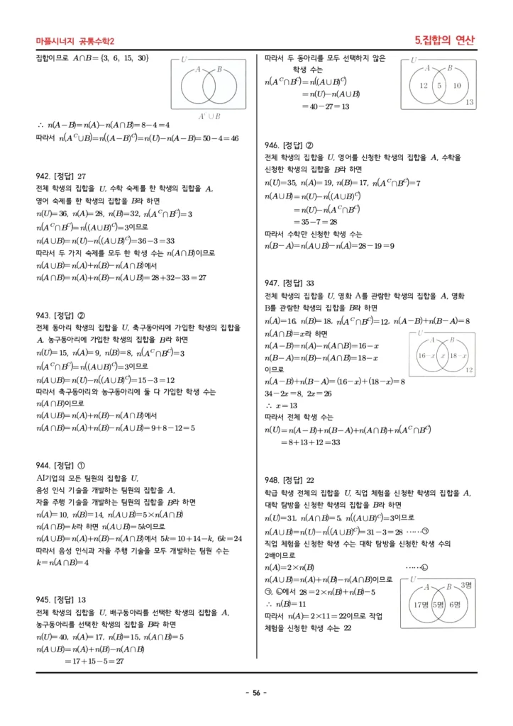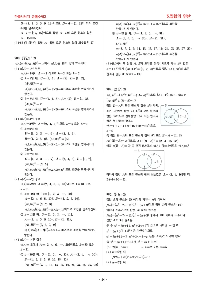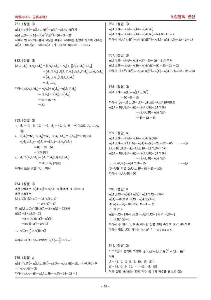 마플시너지 공통수학2 06.집합의 연산(3) 답지