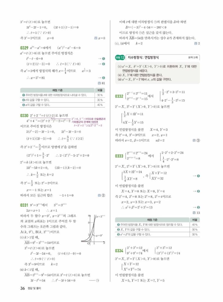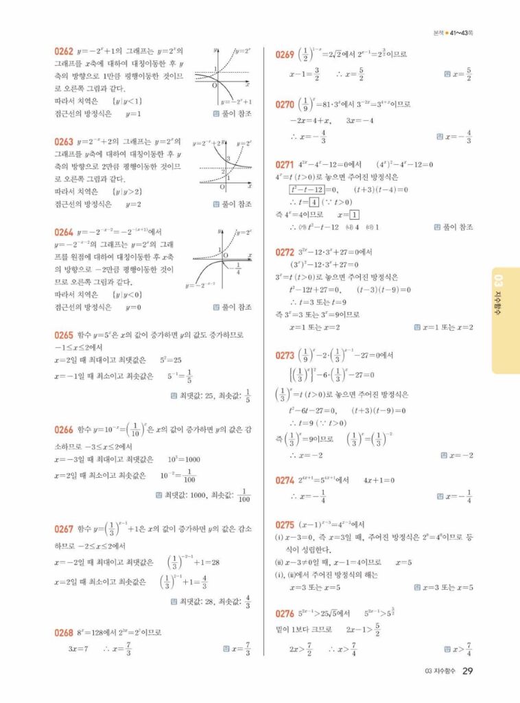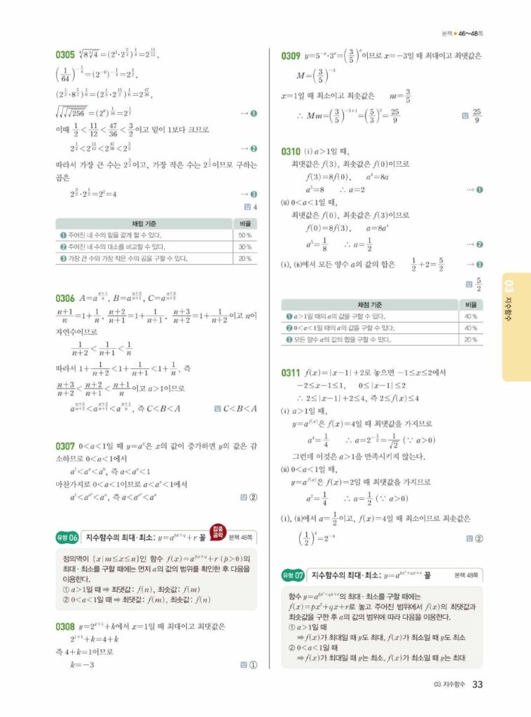안녕하세요. 쎈 대수(Algebra)의 세 번째 단원인 03단원 지수함수 정답 및 해설입니다.
