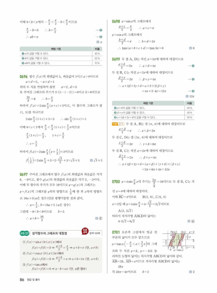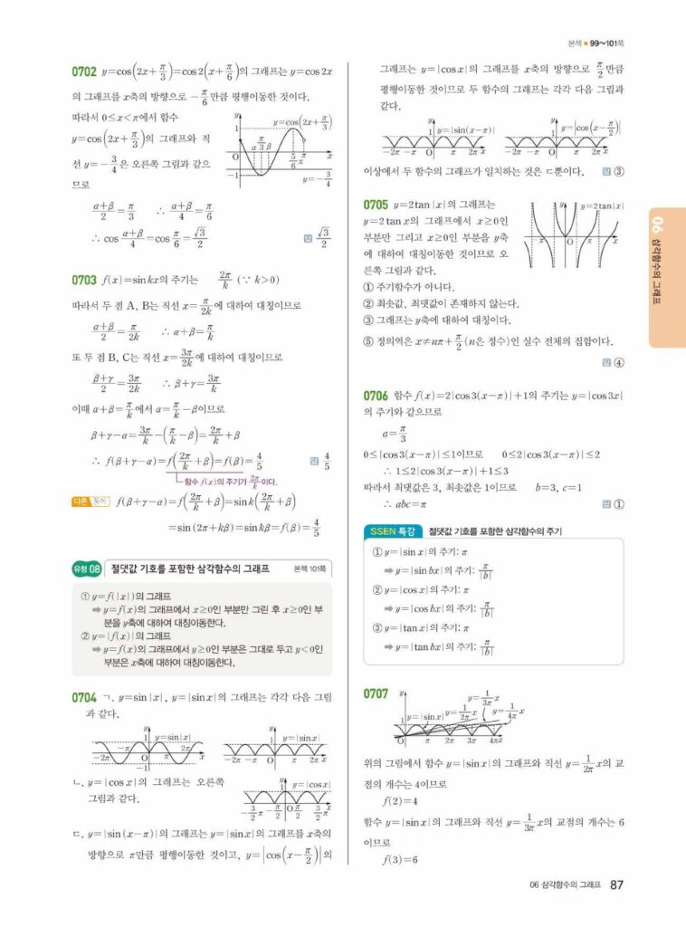 안녕하세요. 쎈 대수(Algebra) 06단원 삼각함수의 그래프 정답 및 해설입니다.