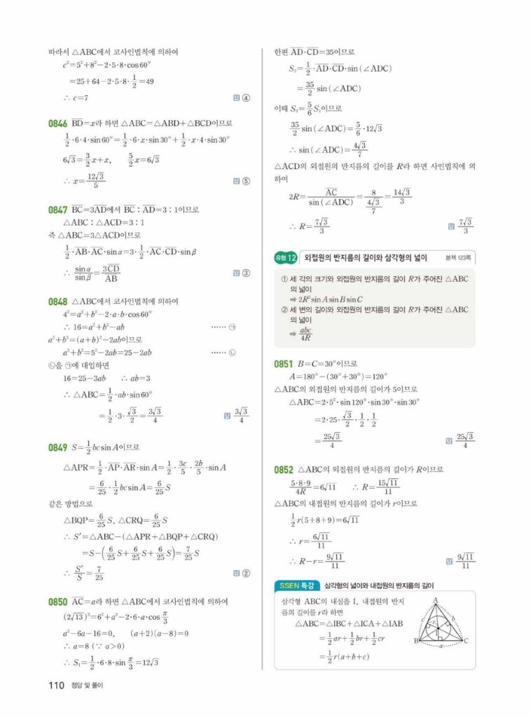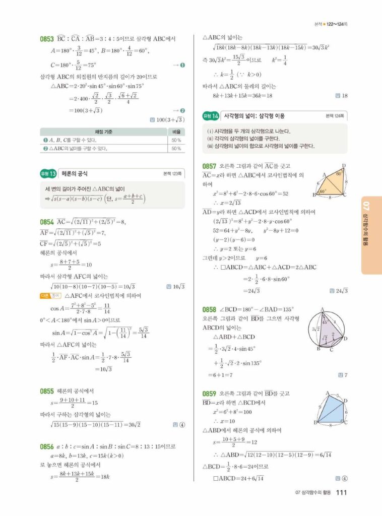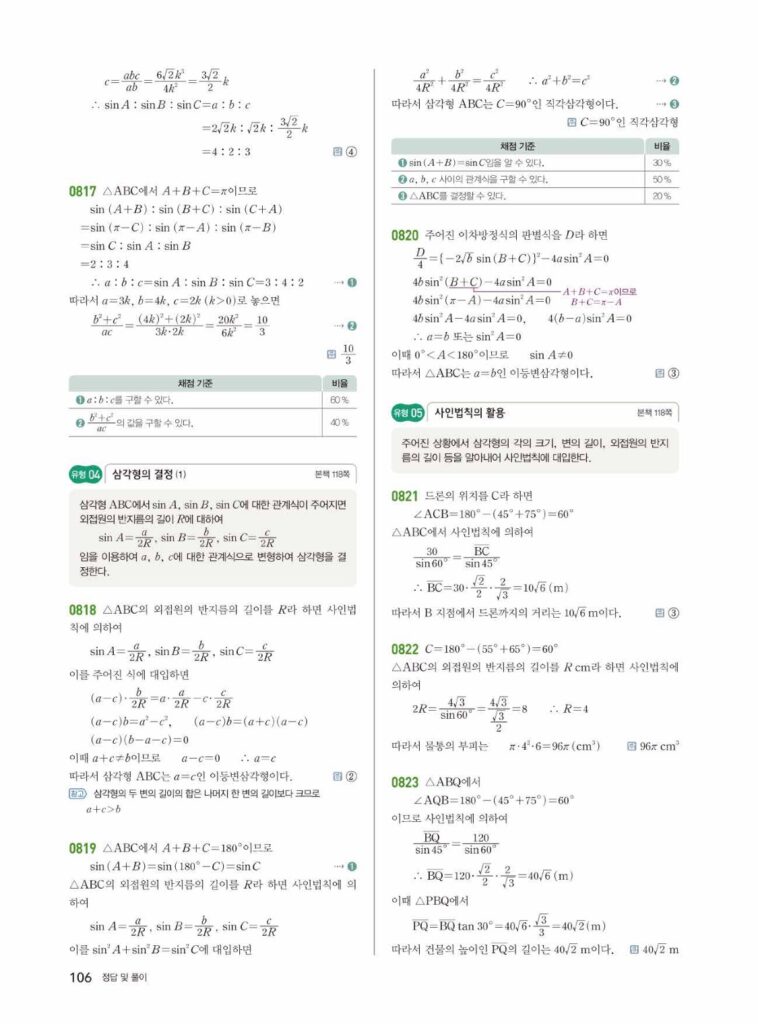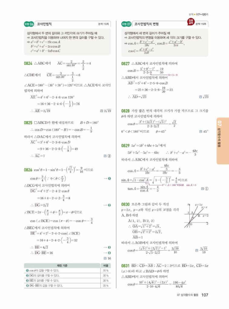 안녕하세요. 쎈 대수(Algebra) 07단원 삼각함수의 활용 정답 및 해설입니다.