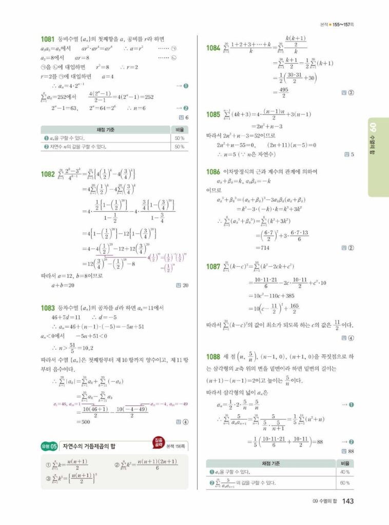 안녕하세요. 쎈 대수(Algebra) 09단원 수열의 합 정답 및 해설입니다.