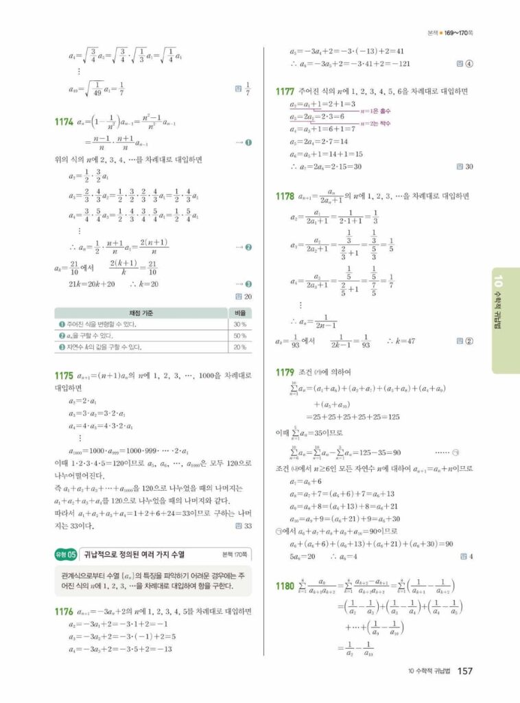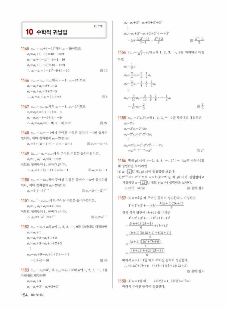쎈 대수 10.수학적 귀납법 답지