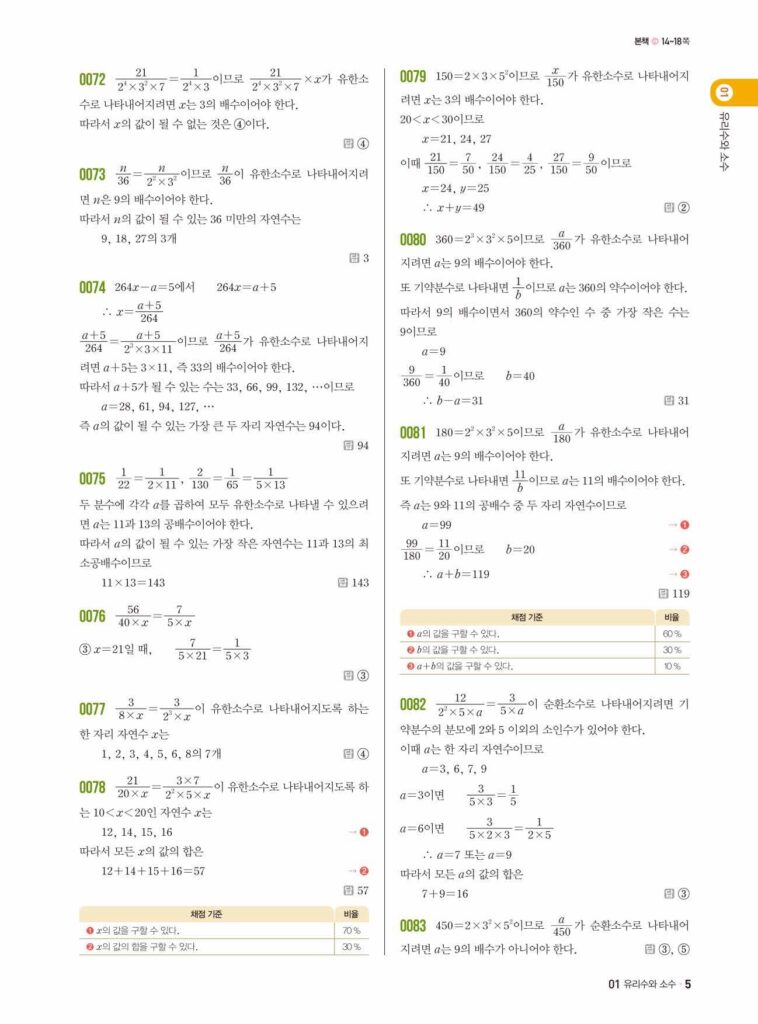 반갑습니다. 쎈 중2-1의 첫 단추인 01단원 유리수와 소수 정답 및 해설입니다.